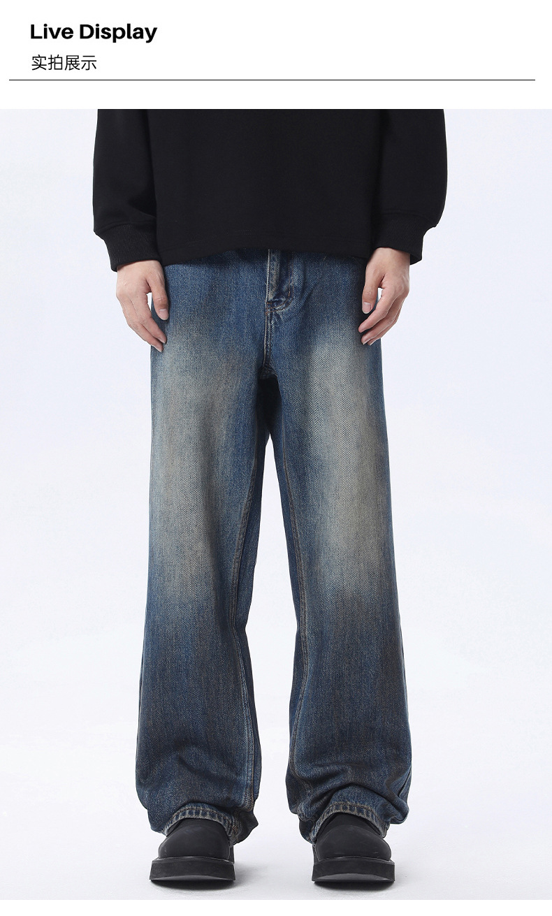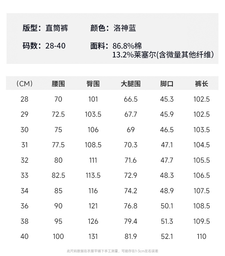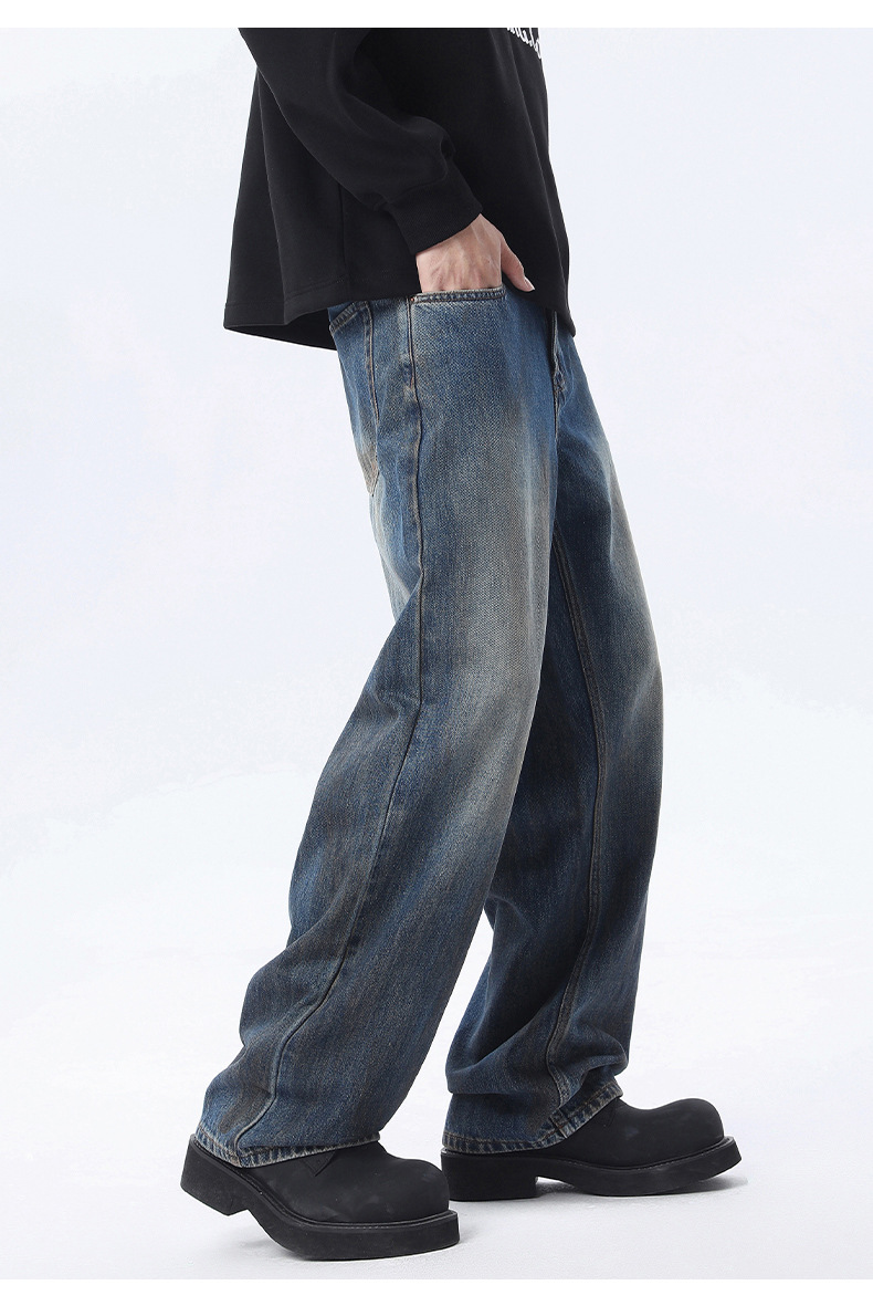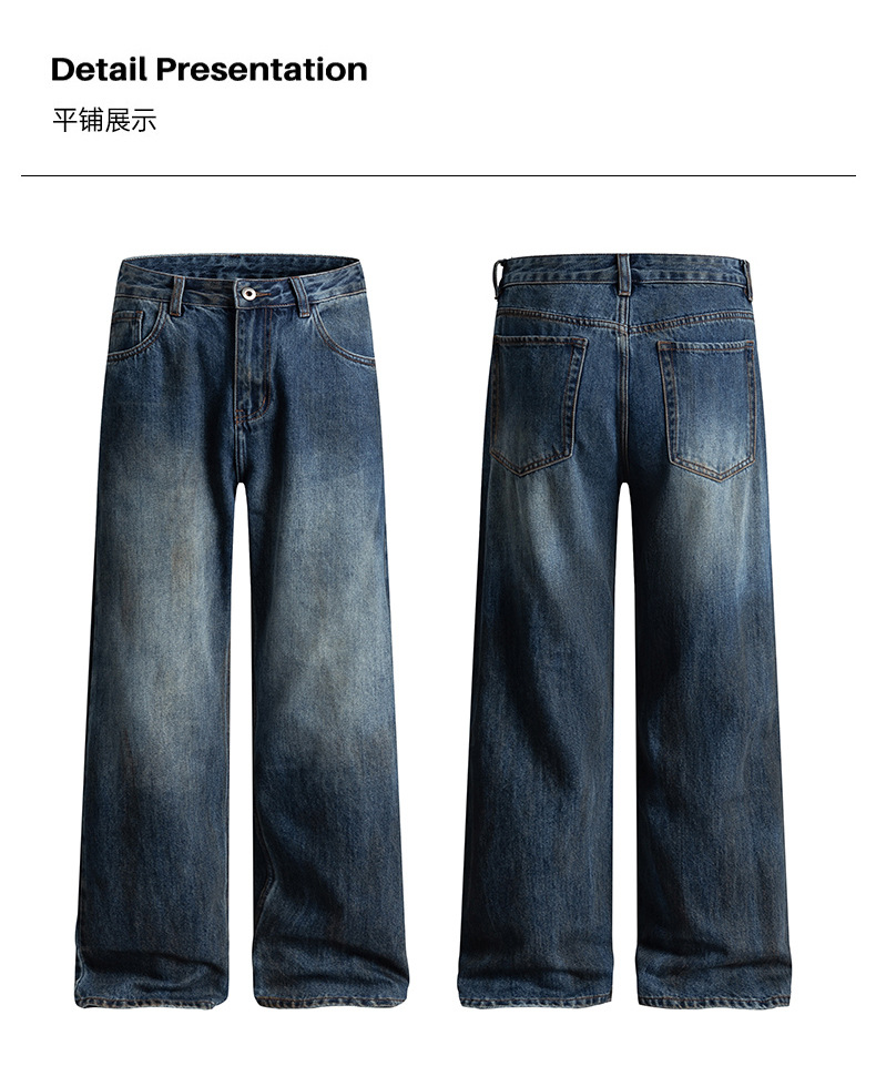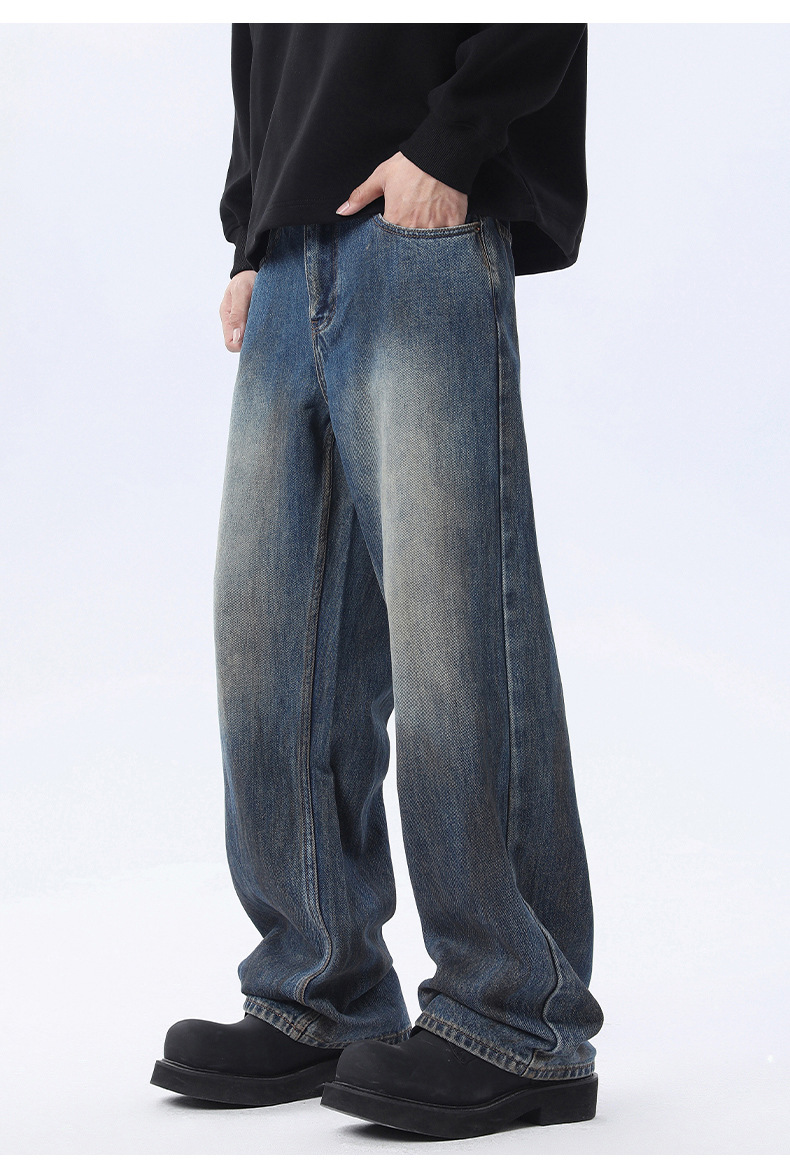 سراويل جينز فضفاضة عالية الجودة بلون لوشن أزرق، تصميم مريح للرجال، مناسب لفصلي الربيع والخريف، 86.8% قطن، تصميم عصري للجنسين.