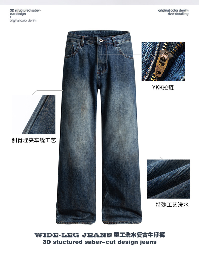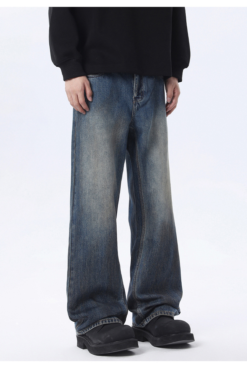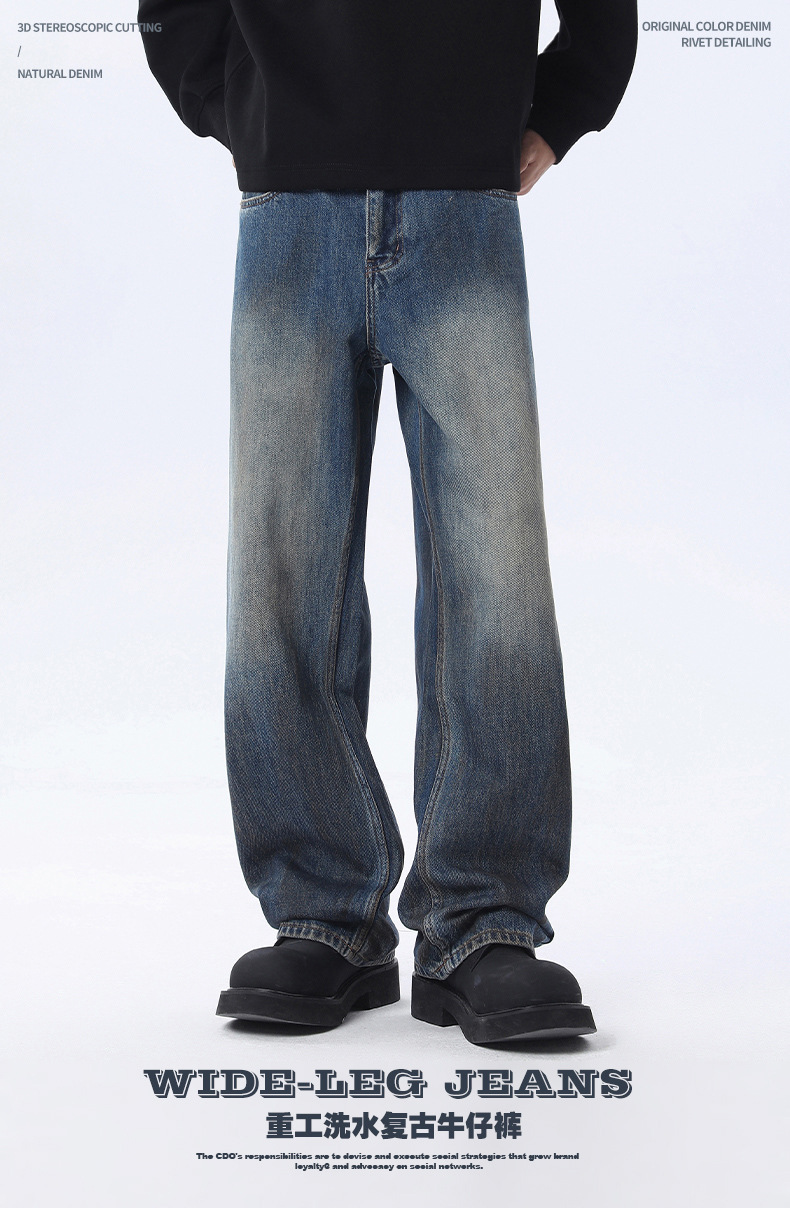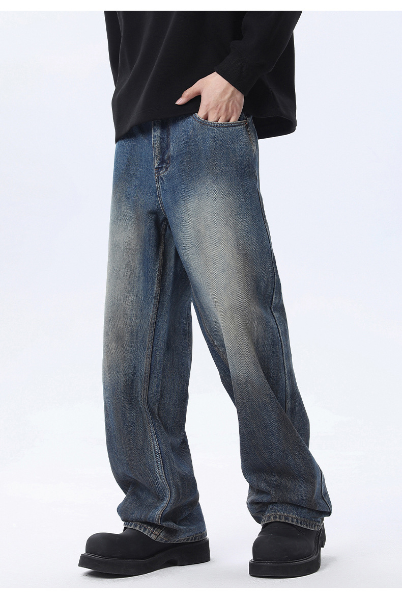 سراويل جينز فضفاضة عالية الجودة بلون لوشن أزرق، تصميم مريح للرجال، مناسب لفصلي الربيع والخريف، 86.8% قطن، تصميم عصري للجنسين.