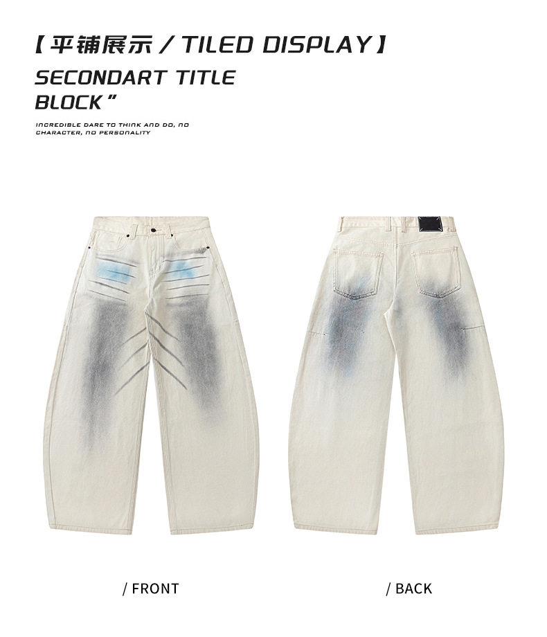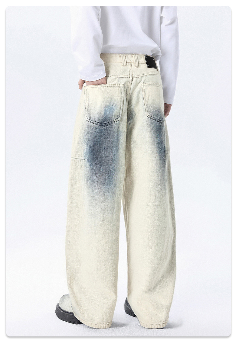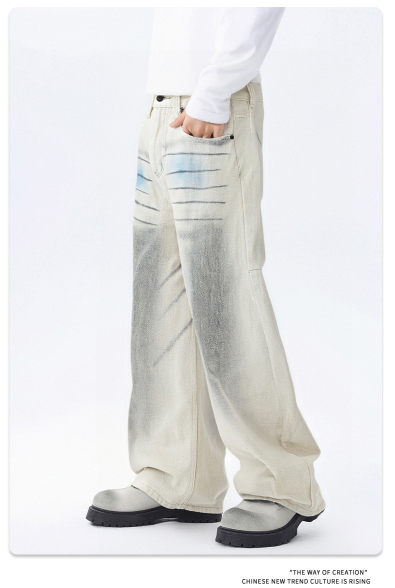 سراويل جينز رسم يدوي مغسولة للرجال مستقيمة، تصميم شبابي عصري، قطن مريح، مناسب لفصلي الربيع والخريف، علامات تجارية: Valkomm