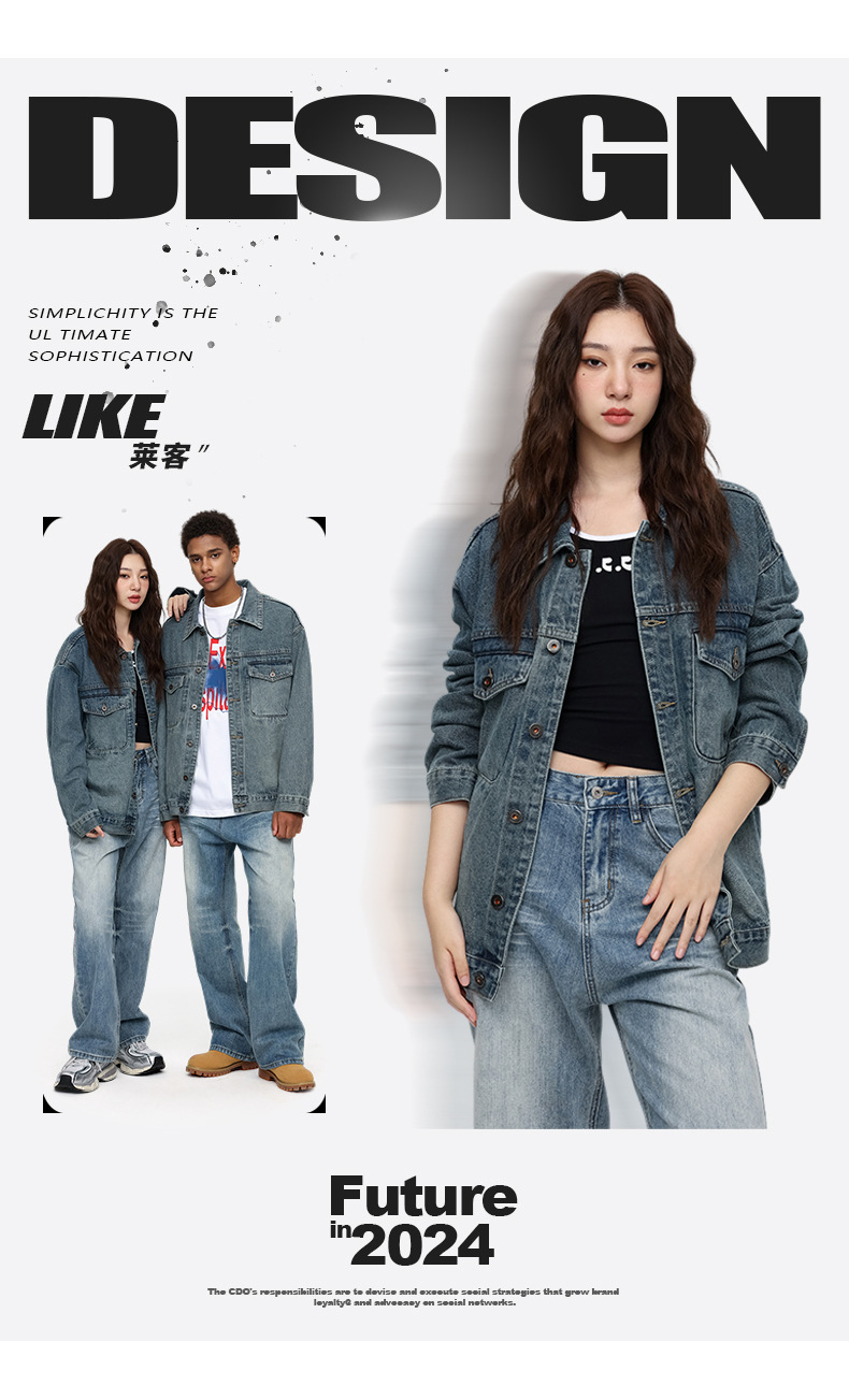 本款潮牌牛仔外套对比正常码数会宽松一些,挑选比自己原码数小一码来穿可能会更加合适哦。