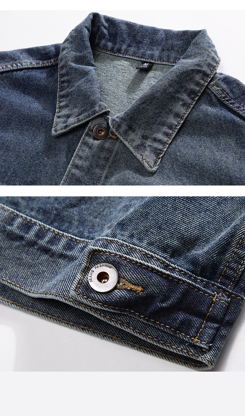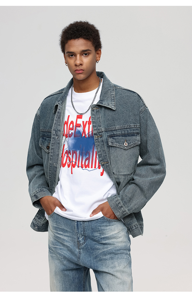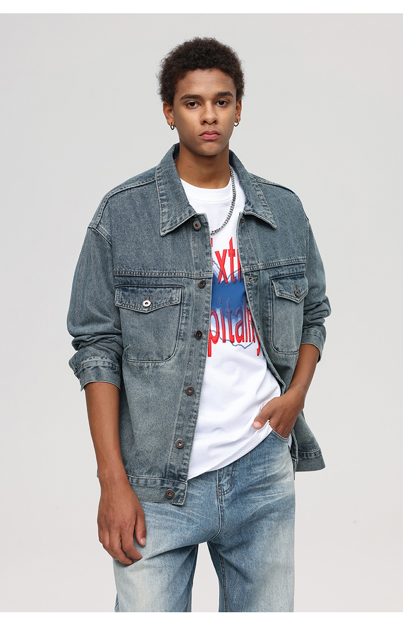 Vintage Men's Loose Fit Denim Jacket with Multi Pocket, Spring/Fall, Easy Care, Trendy Casual Style