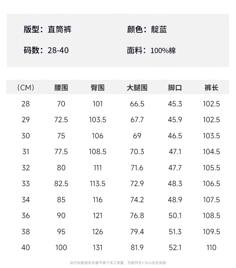 | Size | 28, 29, 30, 31, 32, 33, 34, 36, 38, 40 |