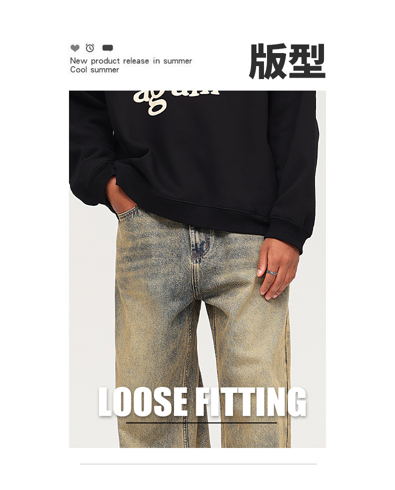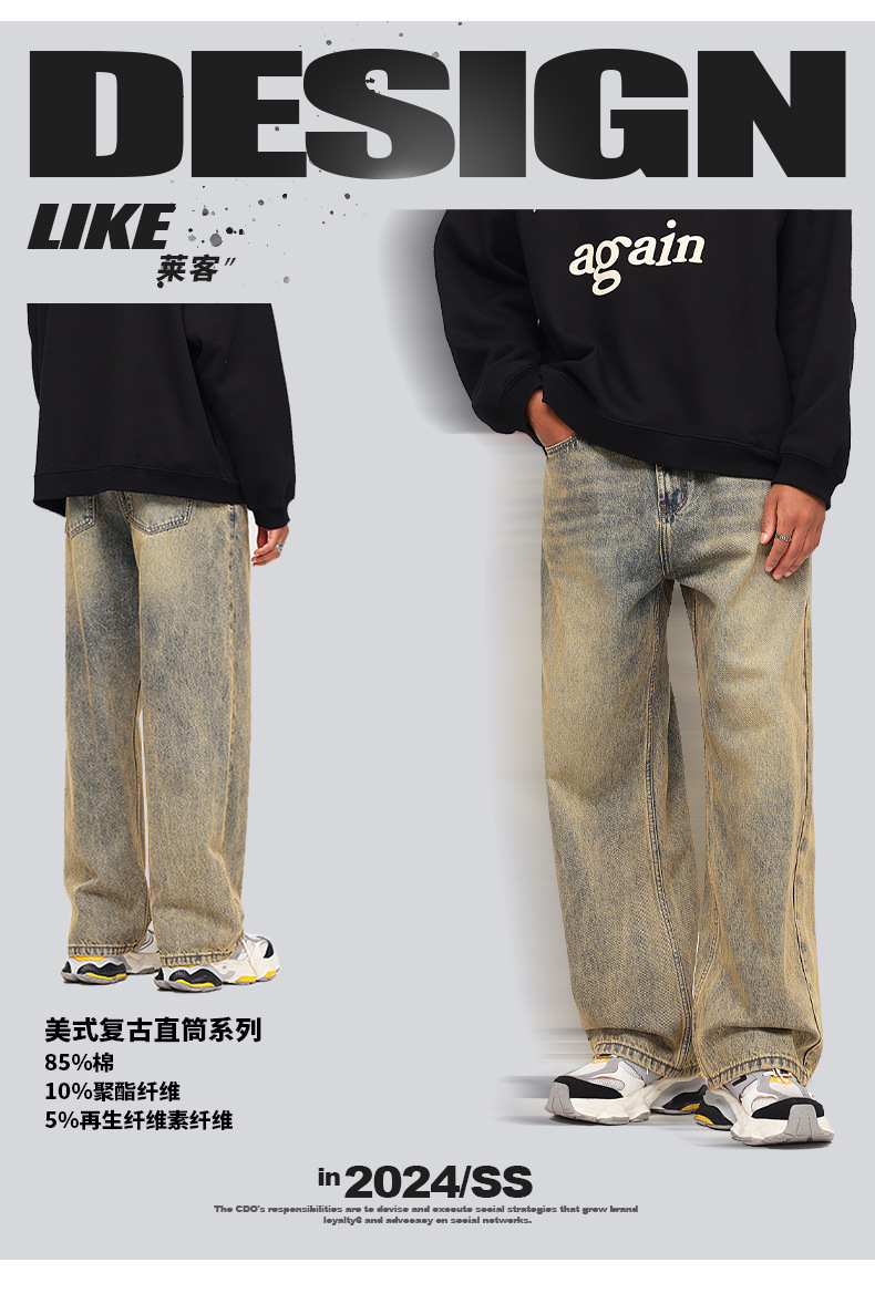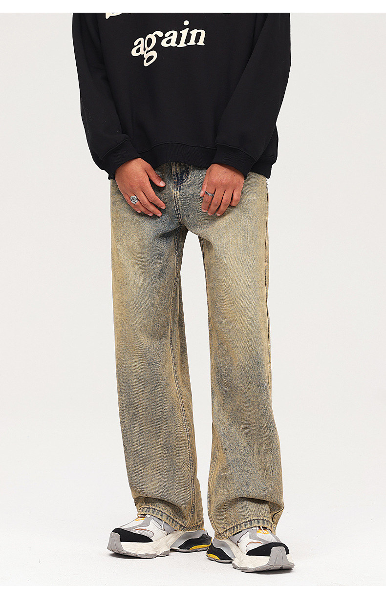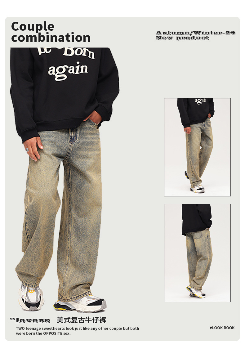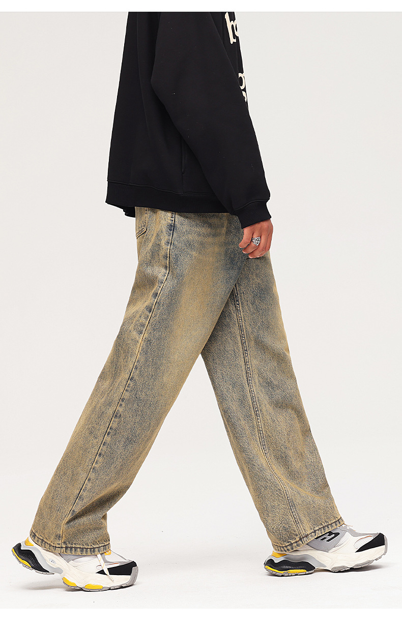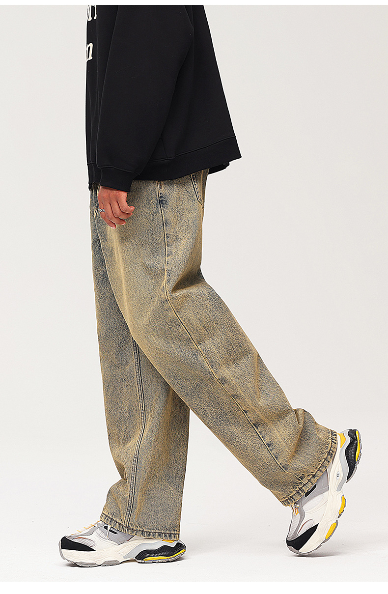 Pantalones vaqueros para joven de estilo vintage, holgados, de algodón, lavado claro, para otoño, 2025, OEM