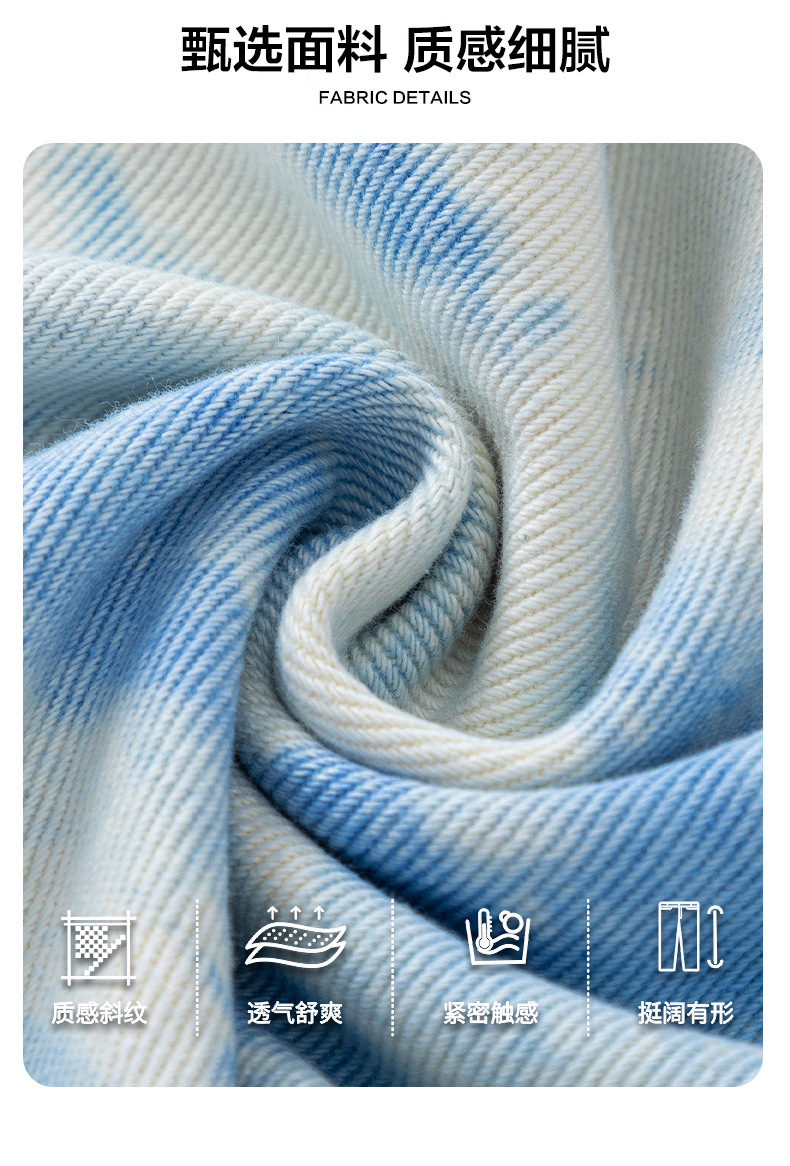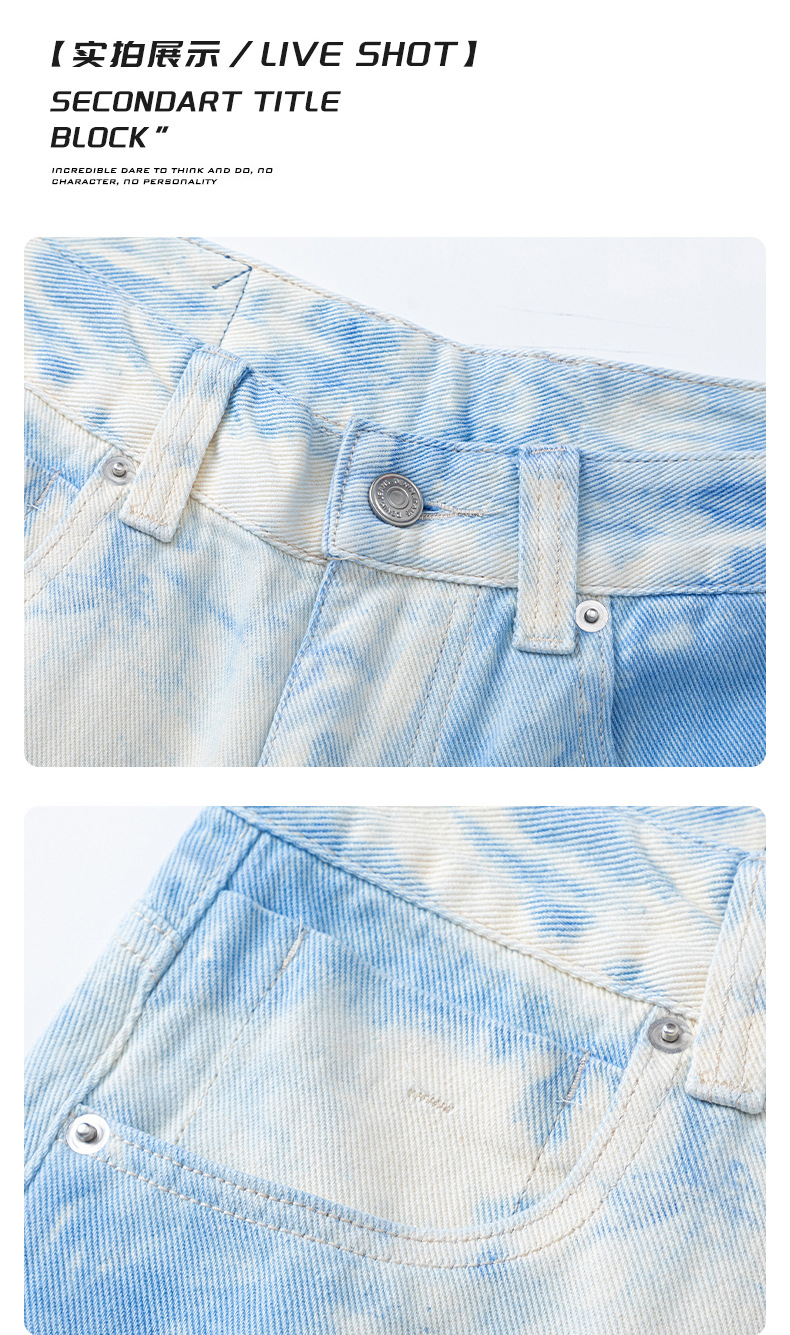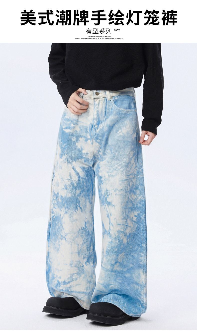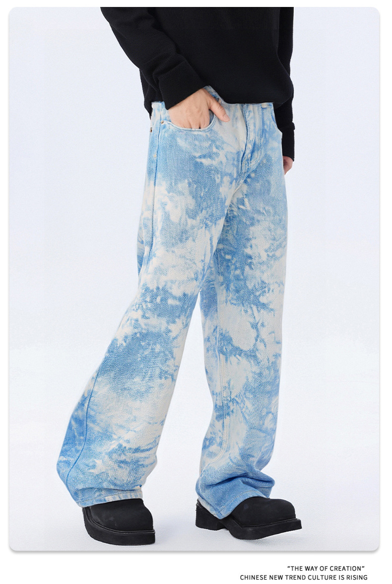 Pantalones vaqueros de hombre holgados de teñido anudado, estilo casual, diseño con estampado y lavado a piedra, temporada primavera otoño, 2025, OEM.