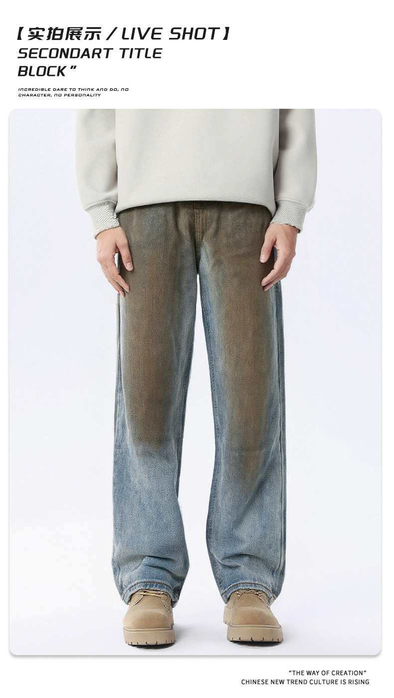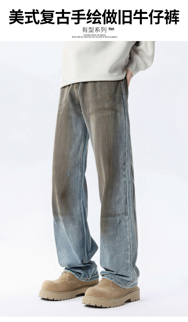 Pantalones vaqueros para hombre, estilo casual, rectos, con diseño de graffiti y lavado a la piedra, 2025, OEM