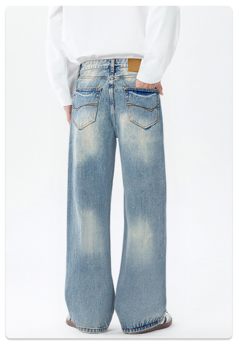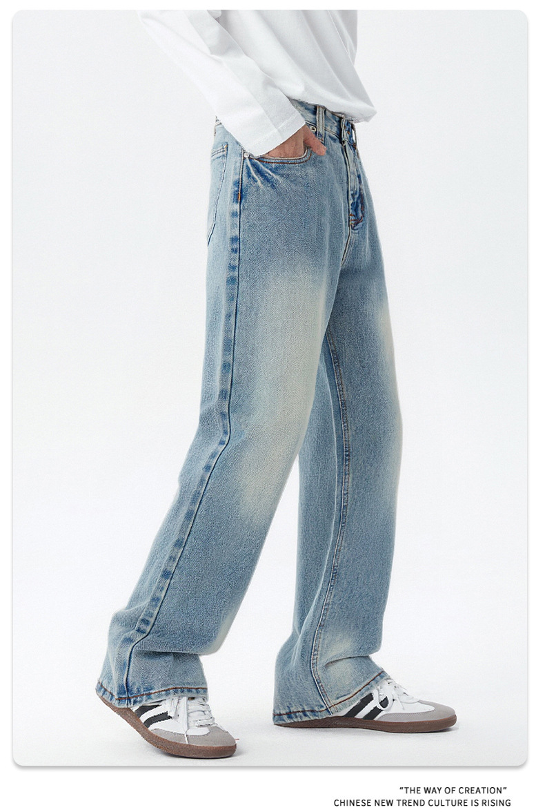 Pantalones vaqueros para hombre holgados de algodón con lavado claro y diseño sencillo, estilo casual para primavera y otoño, tendencias 2025, OEM.