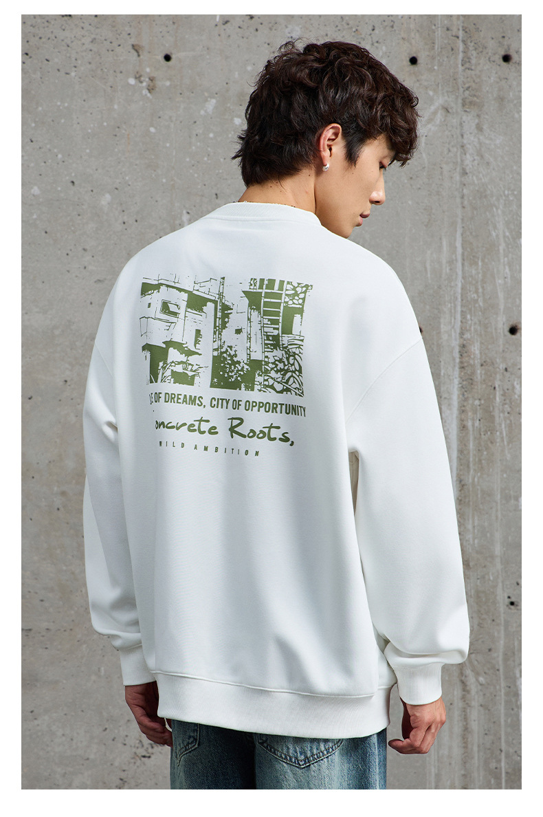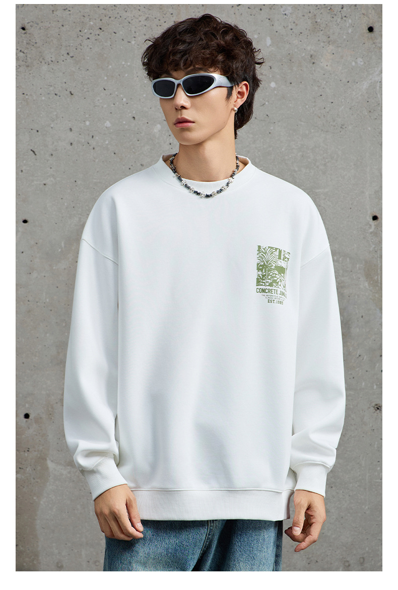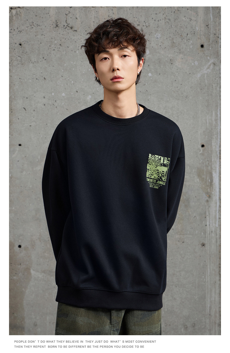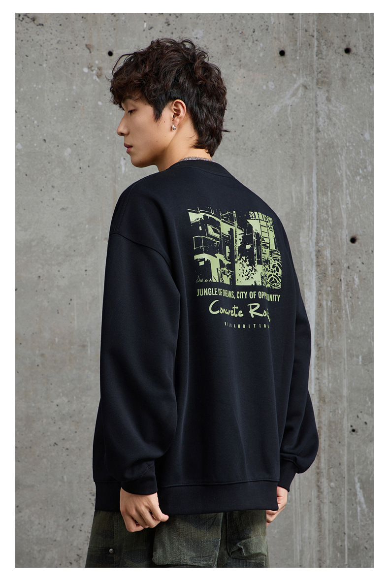 Veste en denim streetwear imprimée, coupe loose, coloris kaki, noir et blanc, en coton, confortable pour le printemps et l'automne.