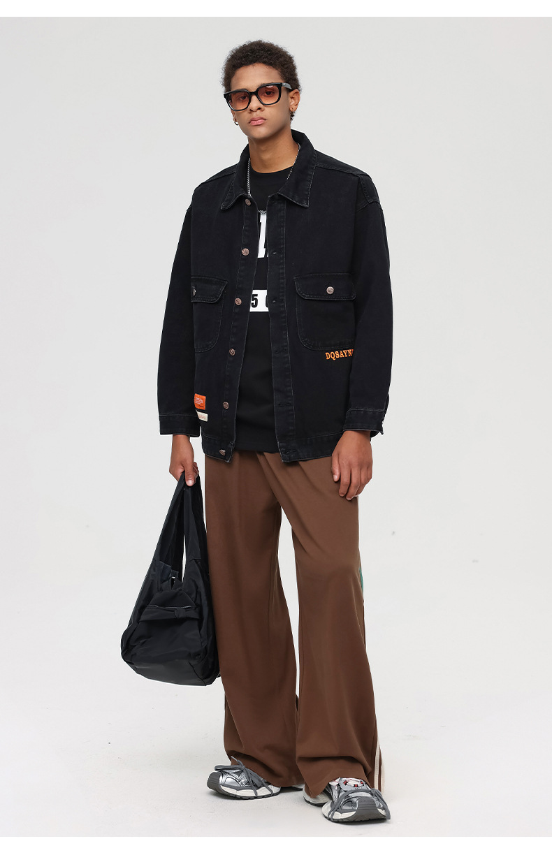 Jaqueta jeans para homens, wide leg, lavagem casual, algodão, uso diário, pronta entrega