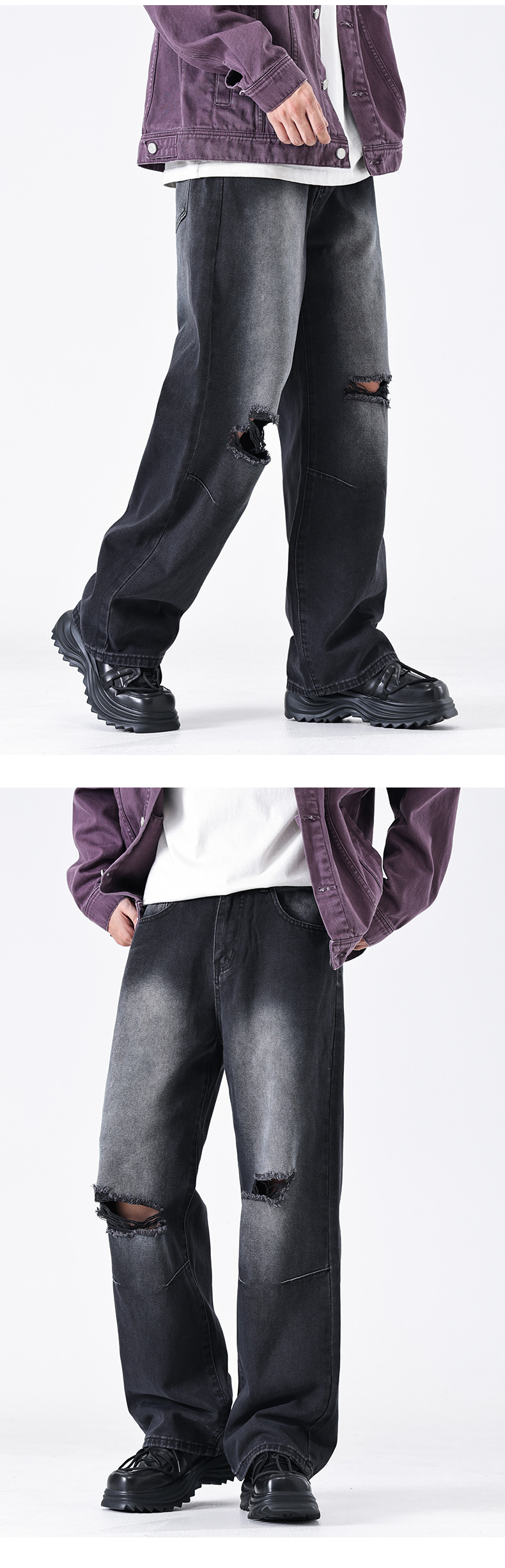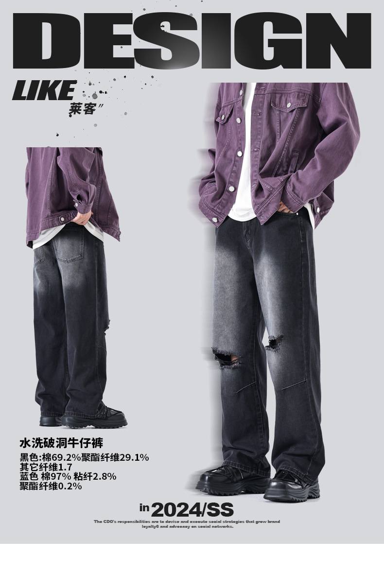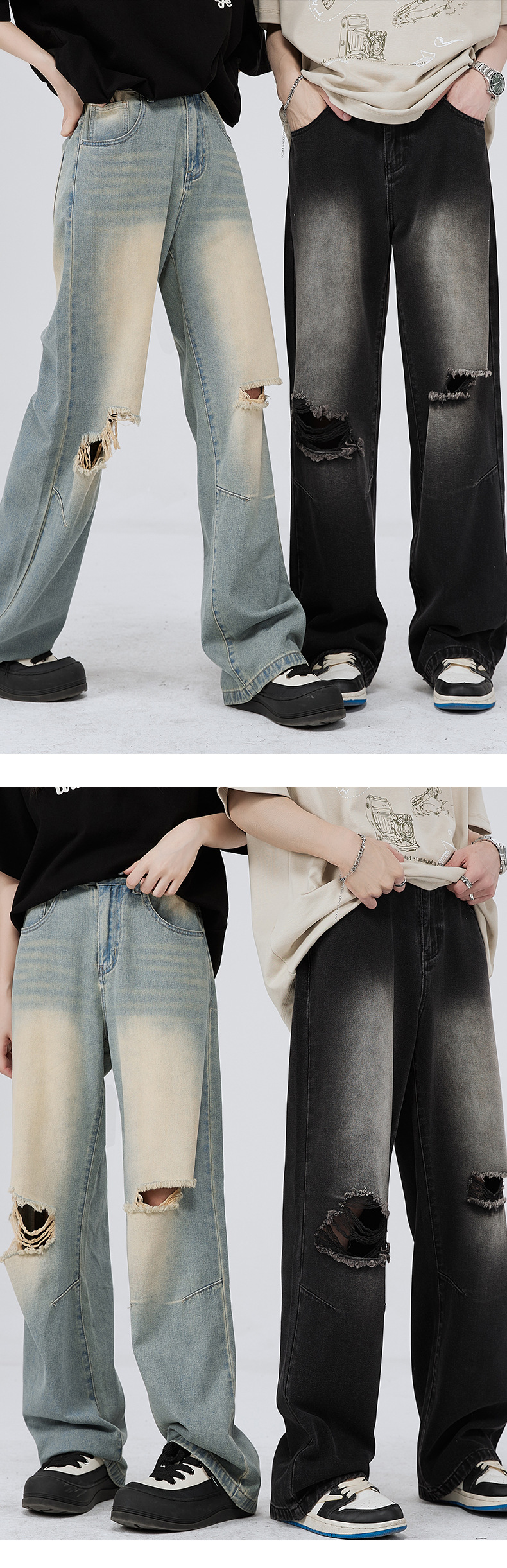 Calças jeans masculinas wide leg vintage com lavagem desgastada para uso diário em denim, pronta entrega