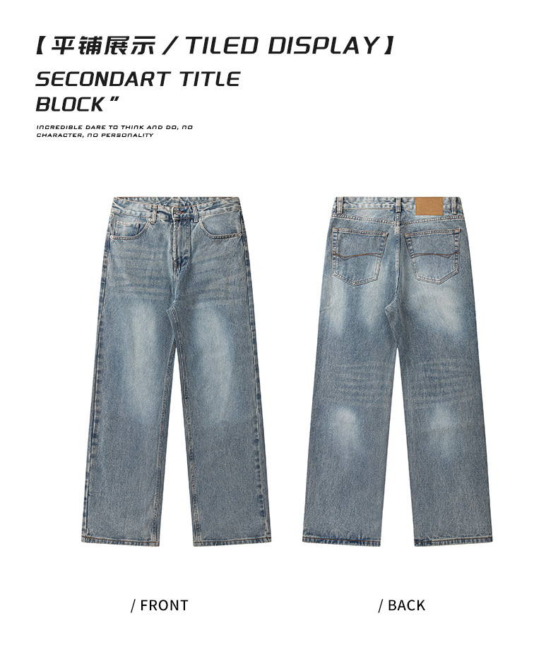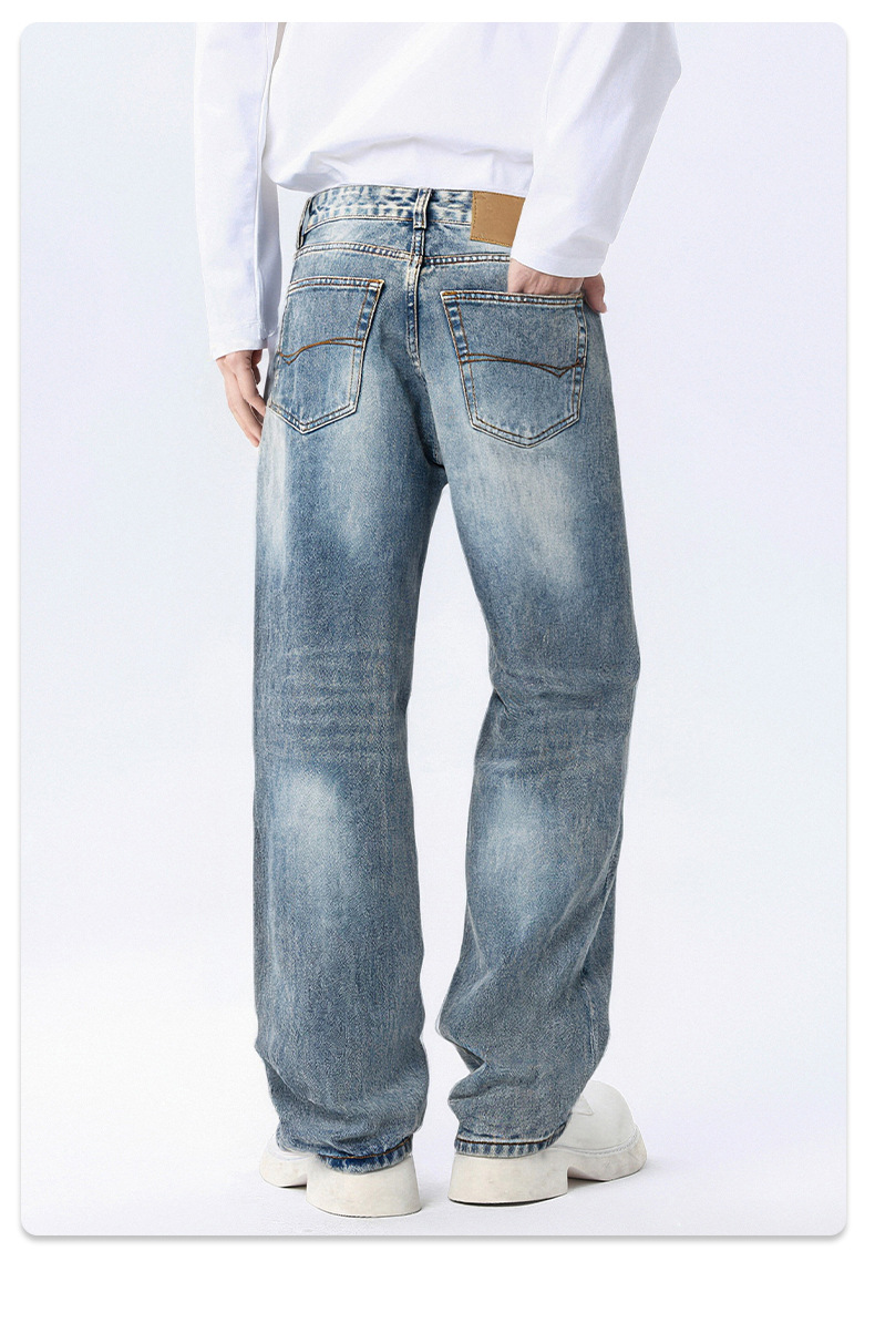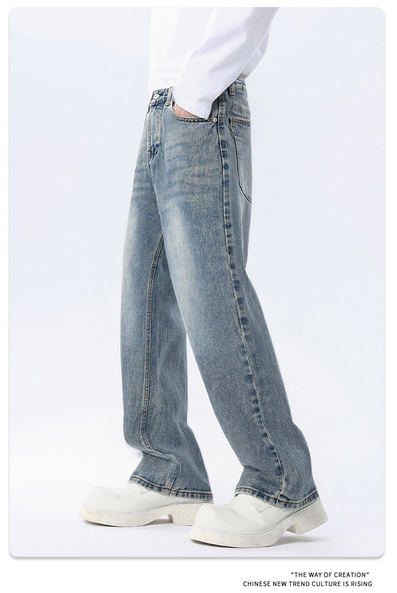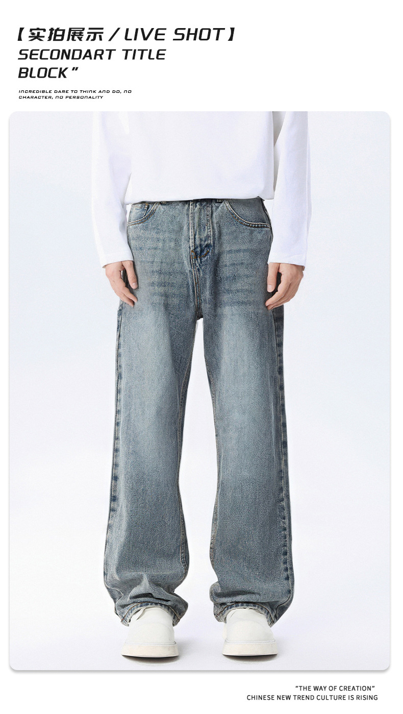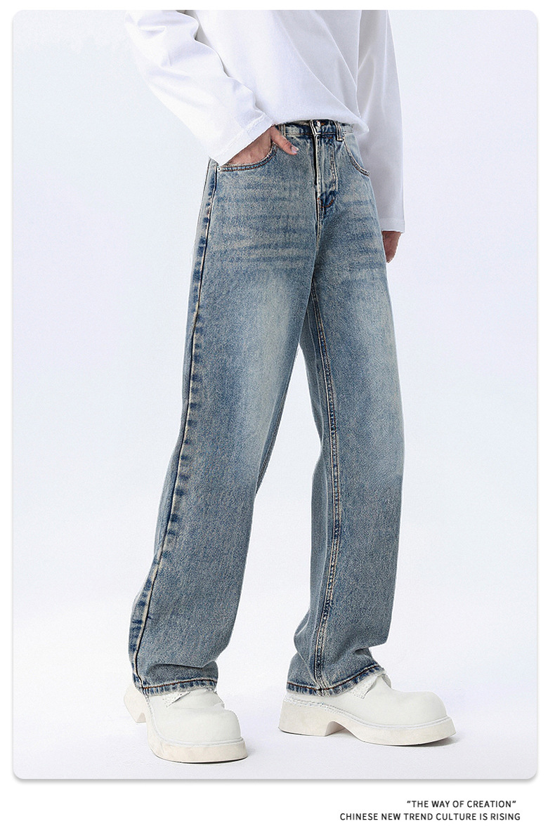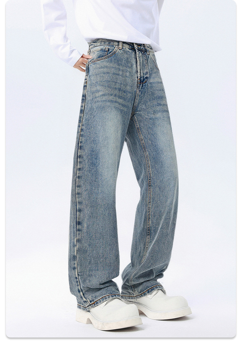 Calças jeans para homens wide leg lavagem azul clara, tecido de algodão, uso diário, pronta entrega
