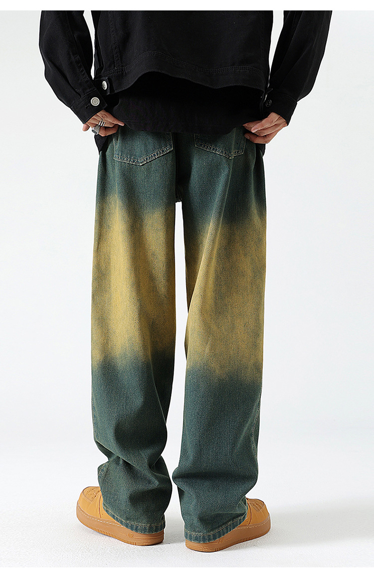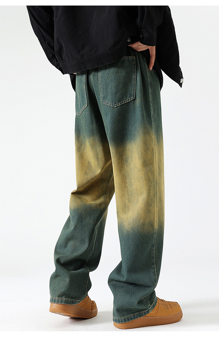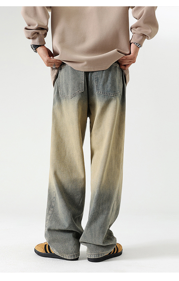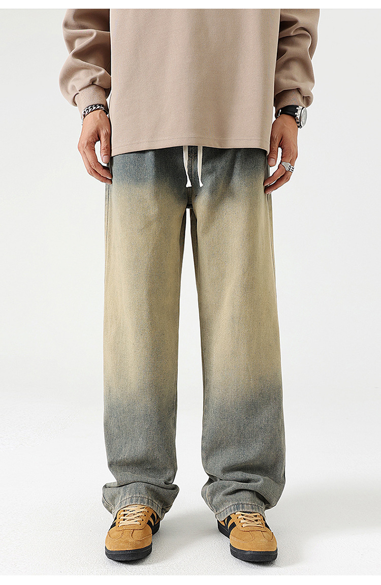 Джинсы прямого кроя复古 в грязно-желтом цвете из хлопка для повседневного ношения, все сезоны, мужские, модель 310-3