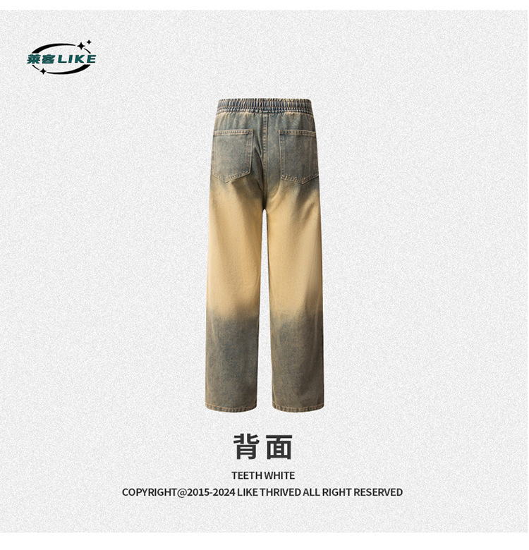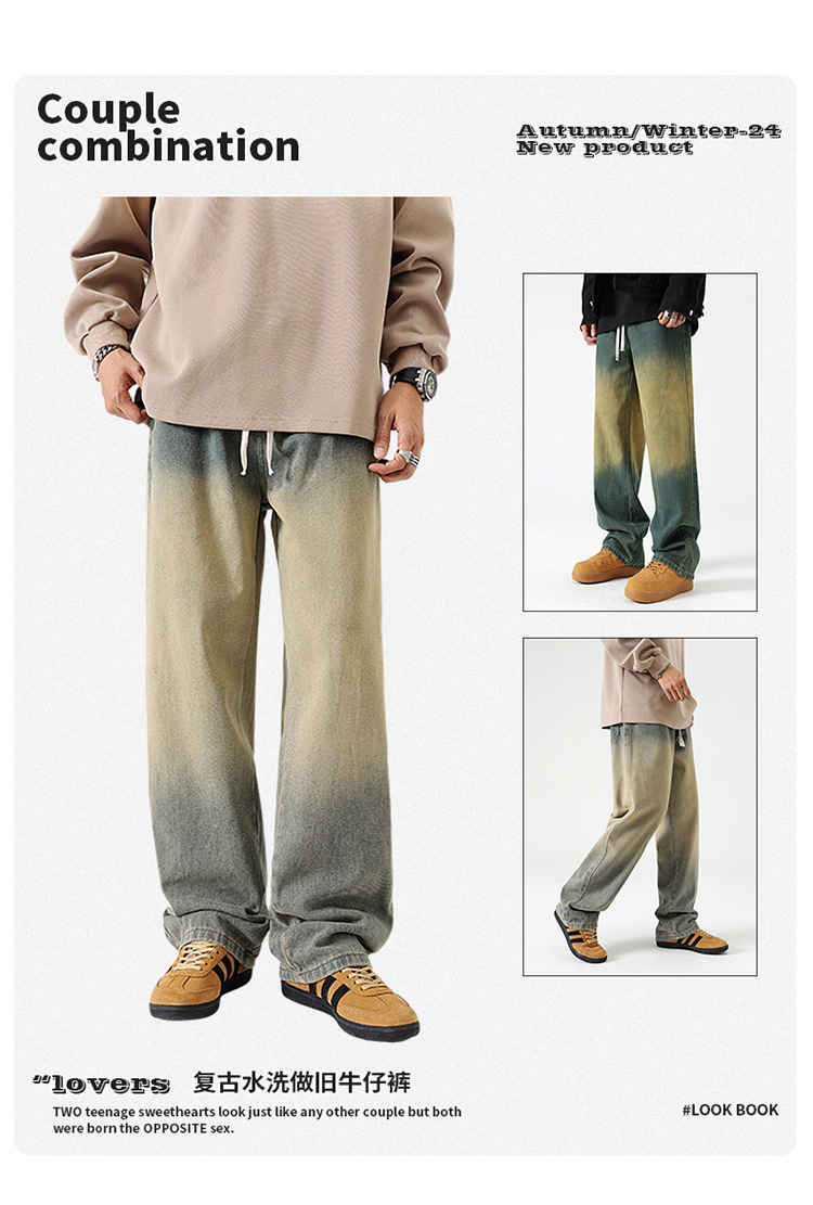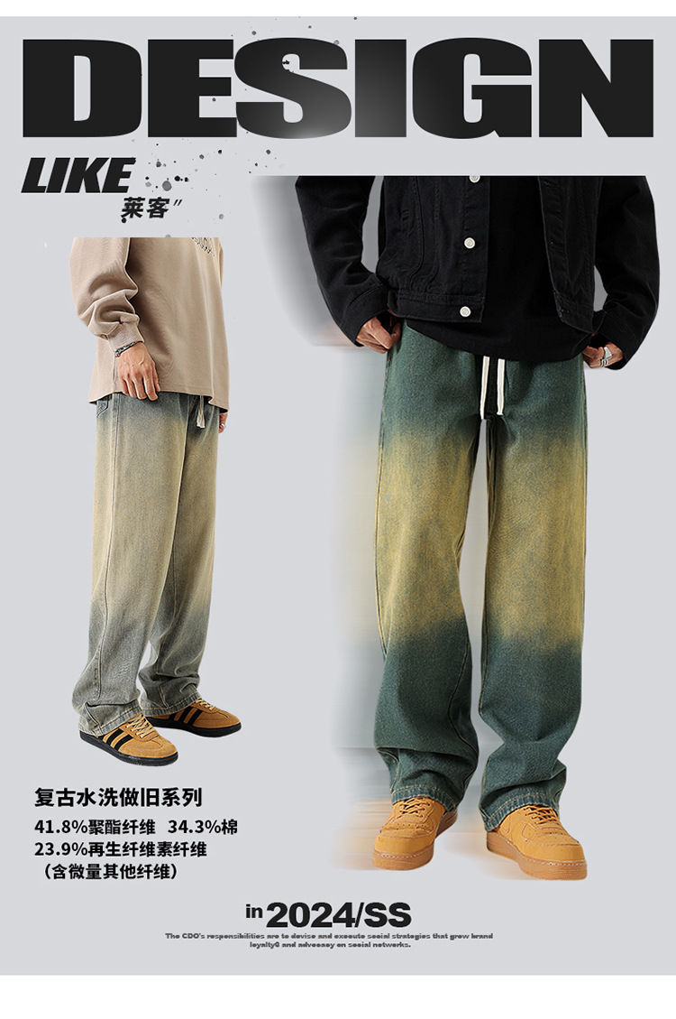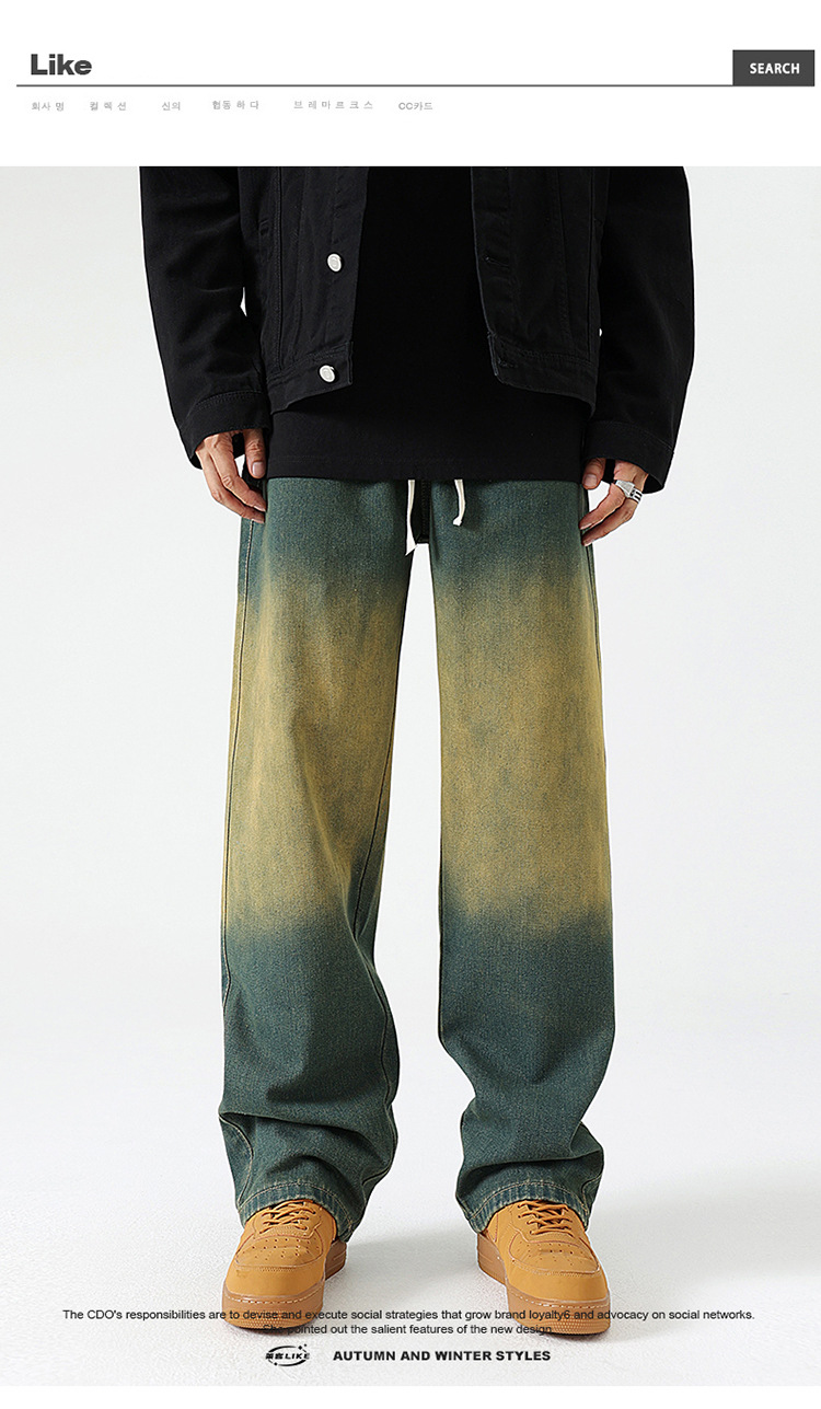 Джинсы прямого кроя复古 в грязно-желтом цвете из хлопка для повседневного ношения, все сезоны, мужские, модель 310-3