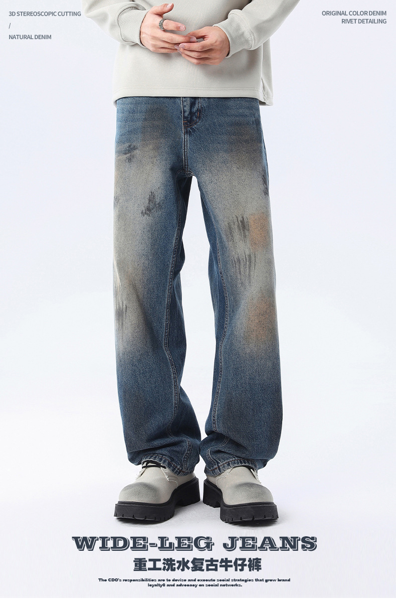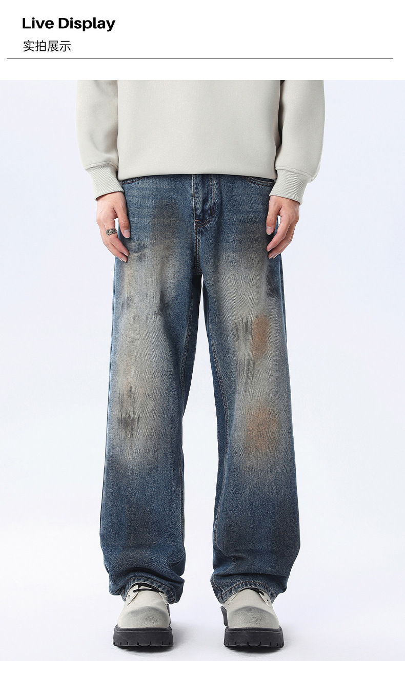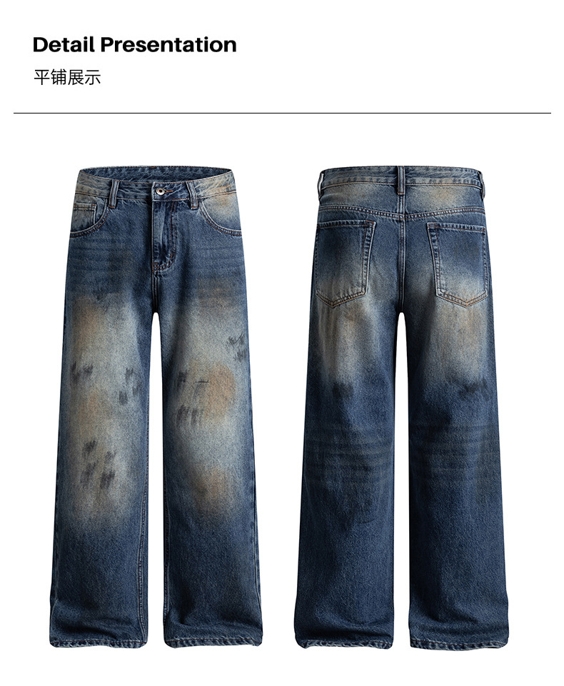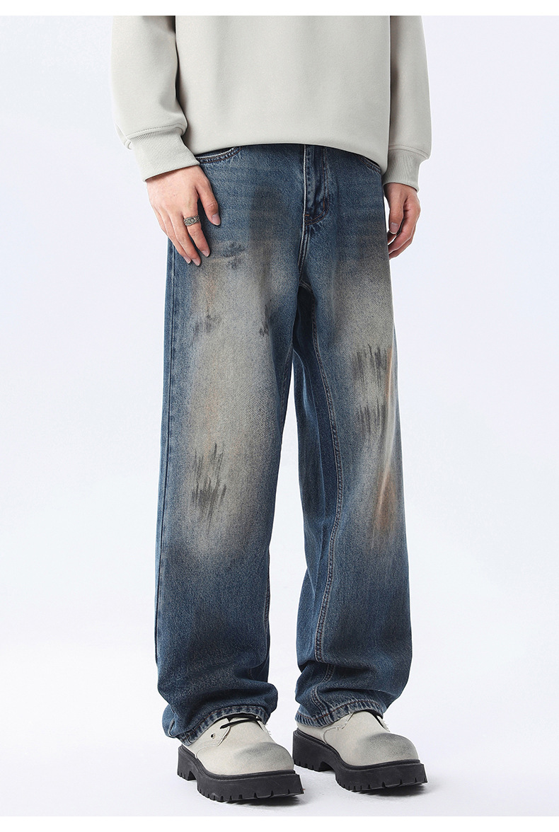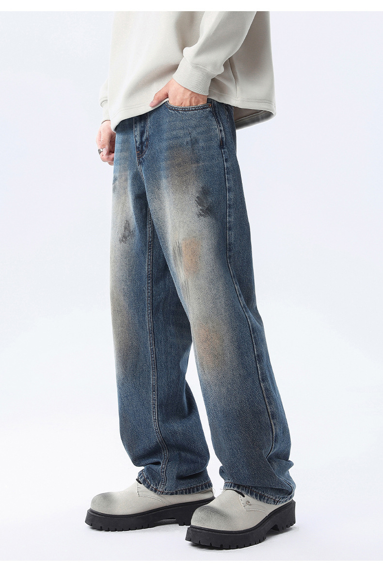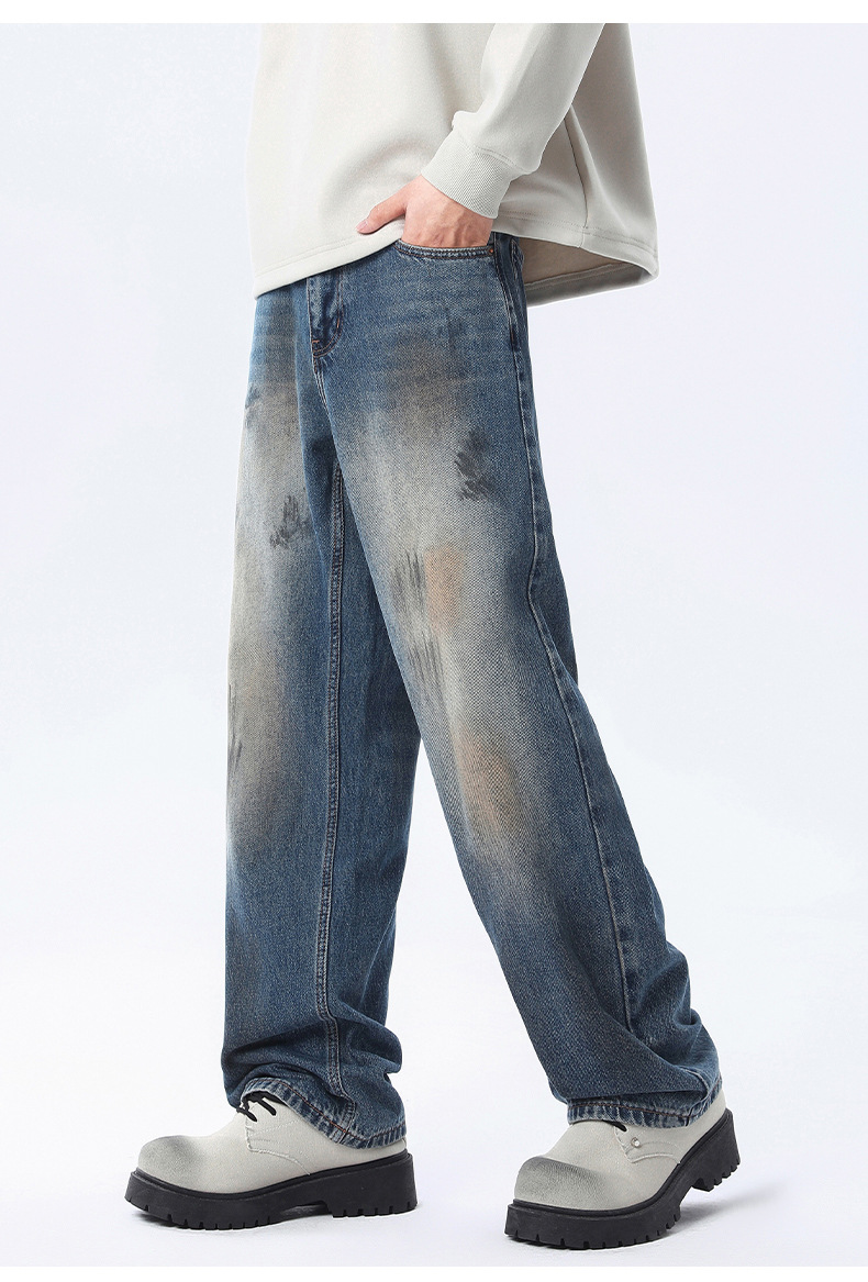 Джинсы baggy с ручной стиркой и граффити, светло-синие, из хлопка, для повседневного ношения в осенний период, модель от бренда Laike.