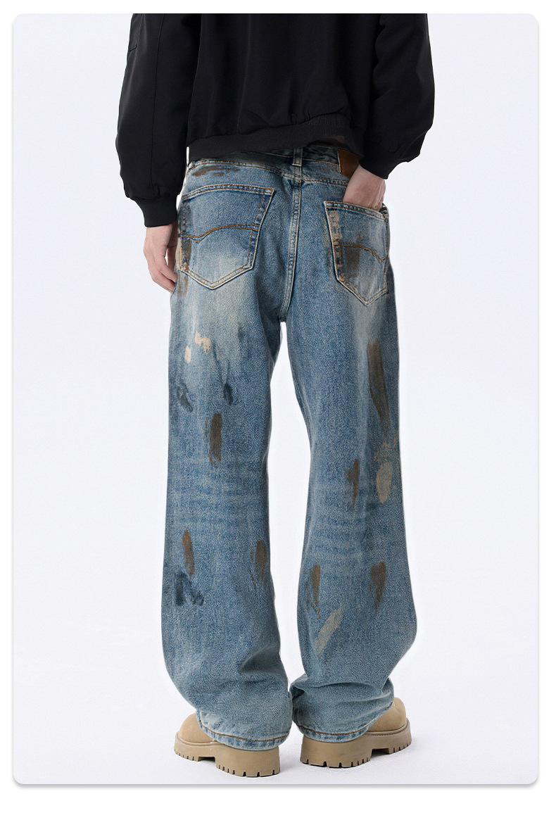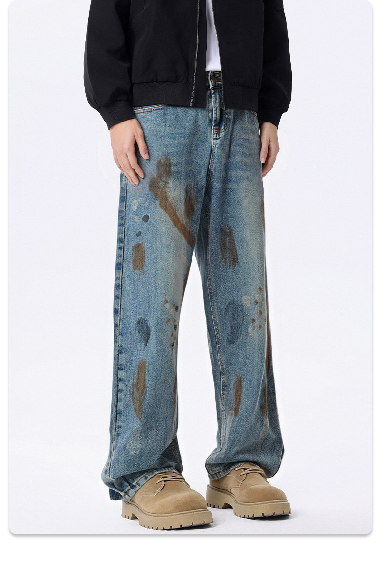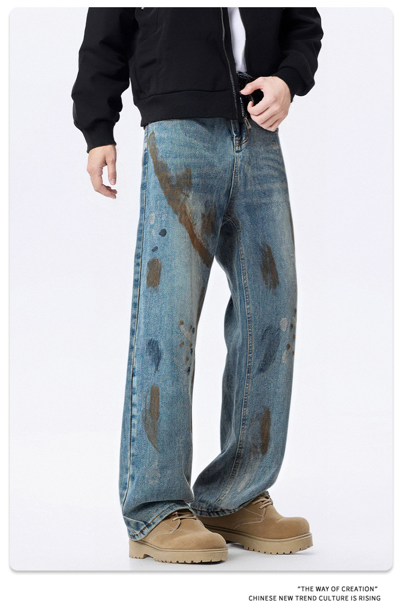 Мужские широкие джинсы baggy с ручной росписью и стиркой, синий деним, повседневные, для весны и осени, бренд Valkomm