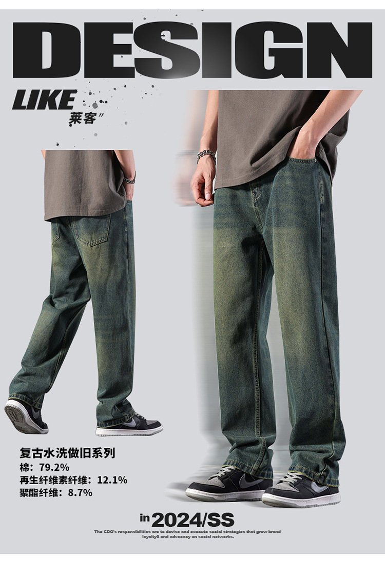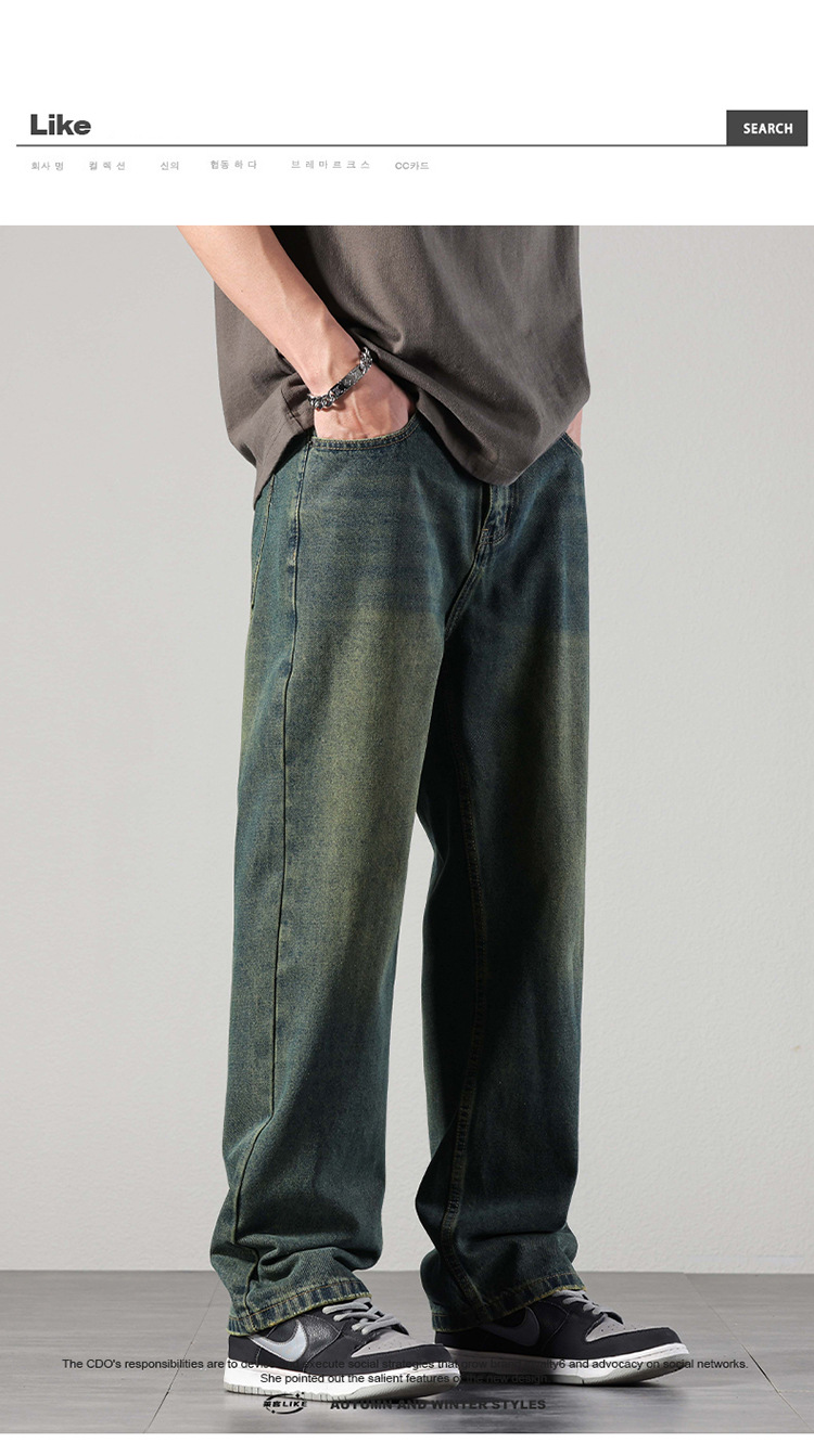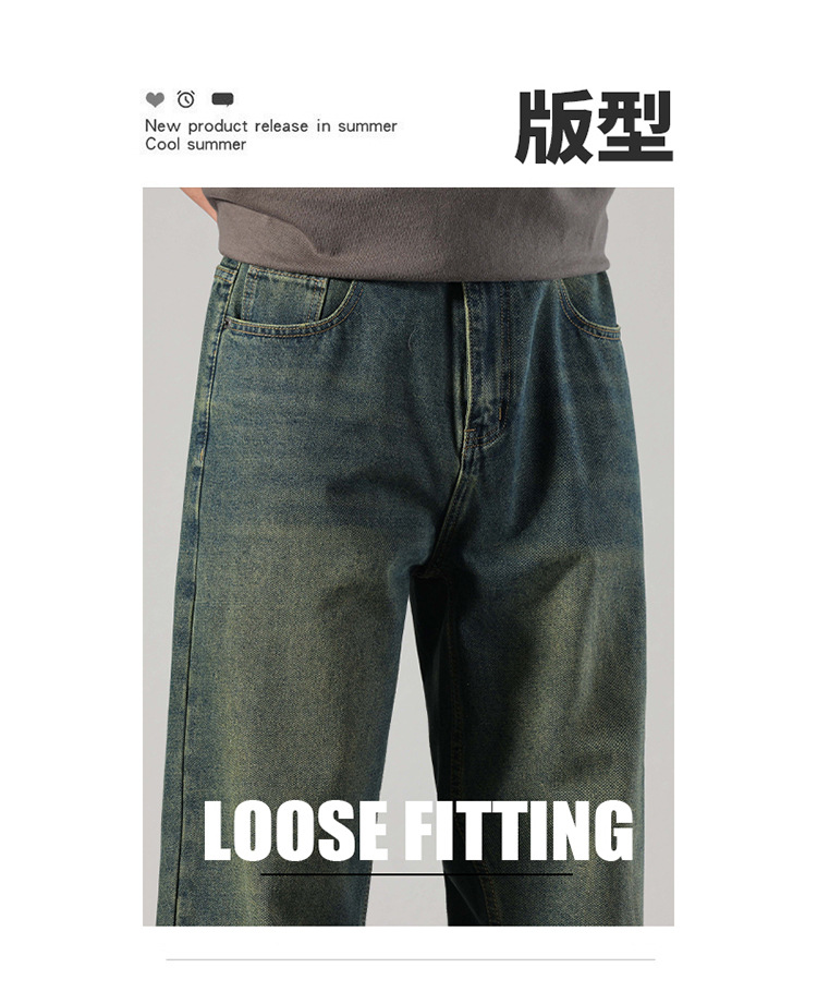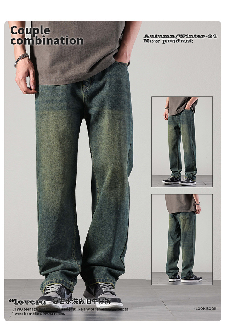 厂家直销男士复古宽松直筒牛仔裤,2025秋季新款,高品质水洗长裤,休闲风格,适合青年
