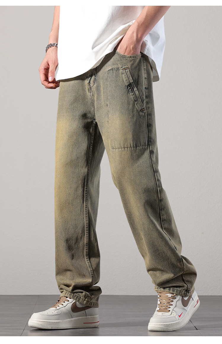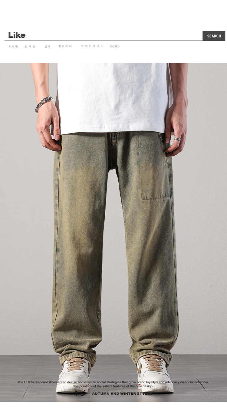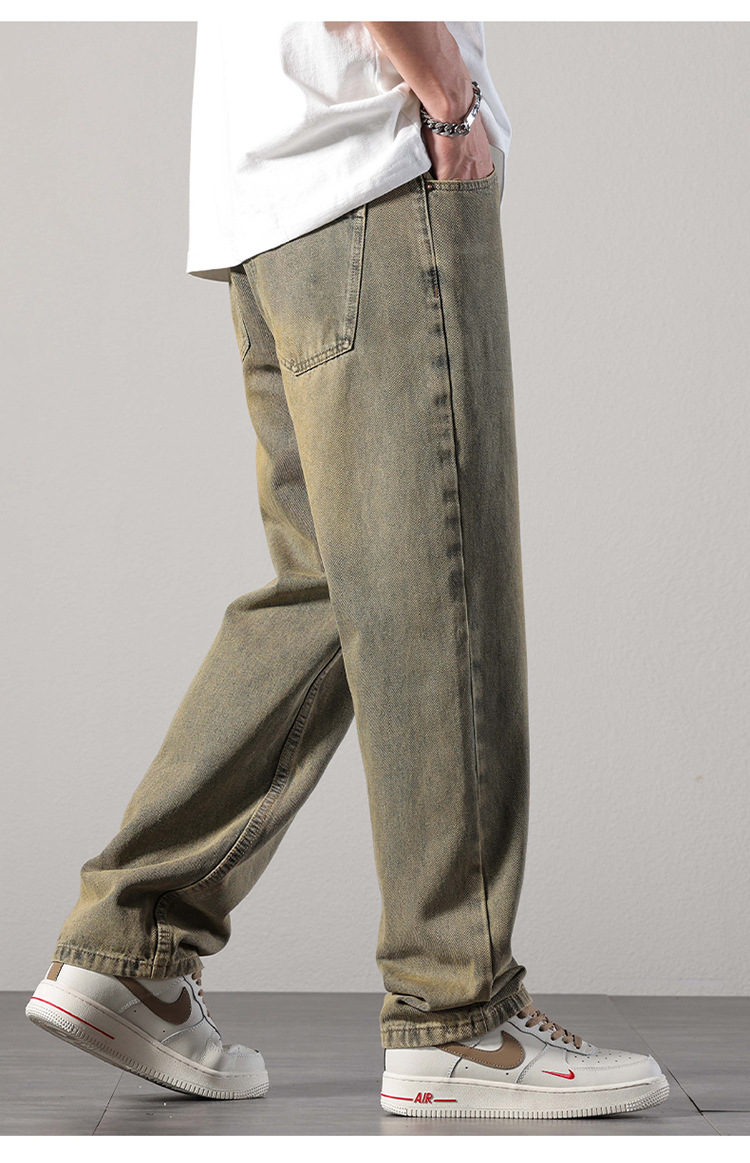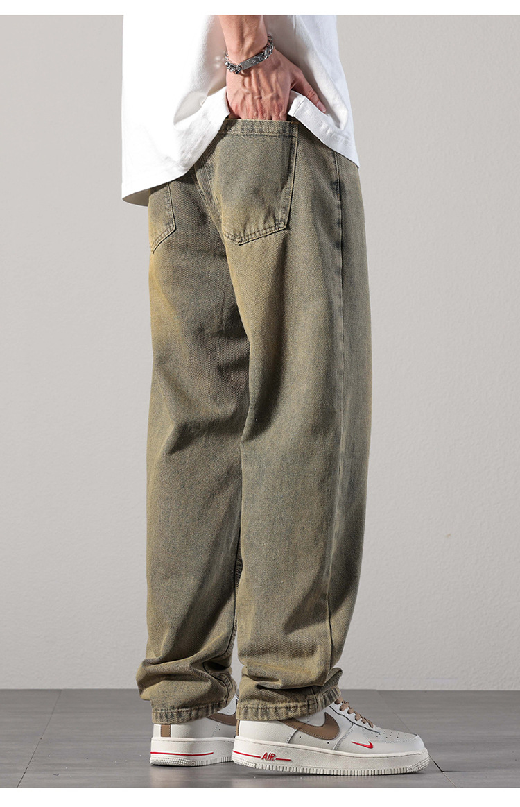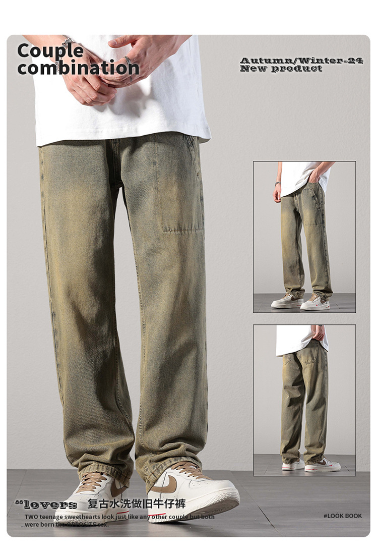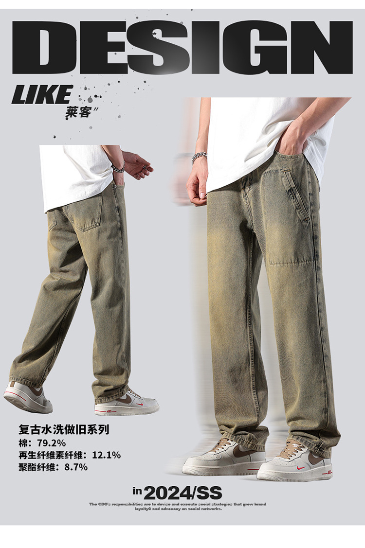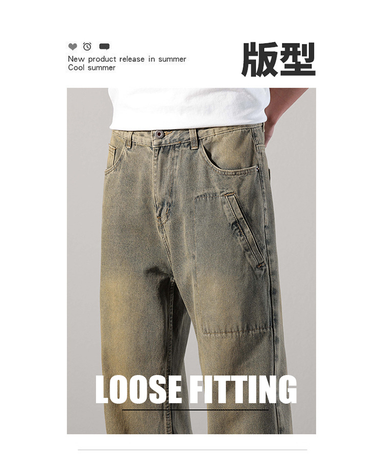 厂家直销男士复古水洗牛仔裤宽松直筒裤,夏季休闲风格,适合青春时尚潮流