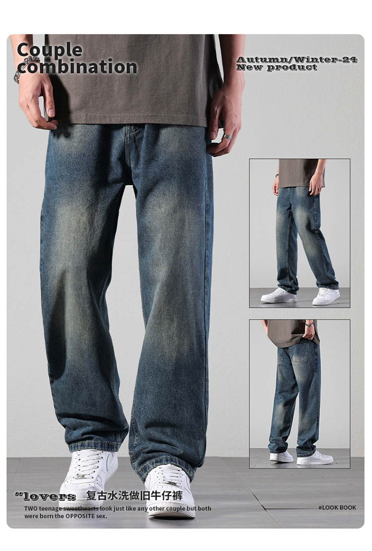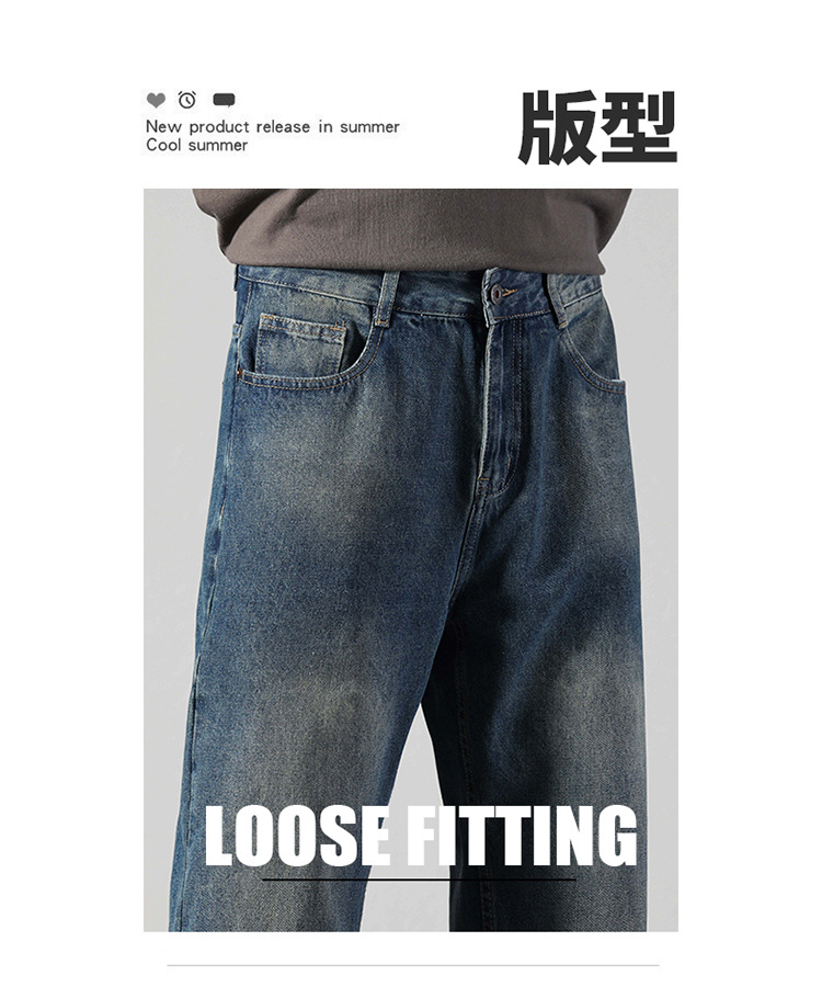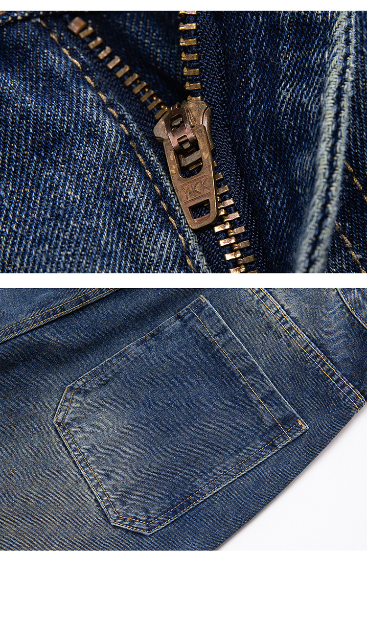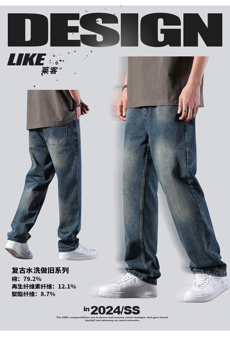 厂家直销男士修身水洗阔腿牛仔裤,秋季休闲高街风格,长裤多口袋设计