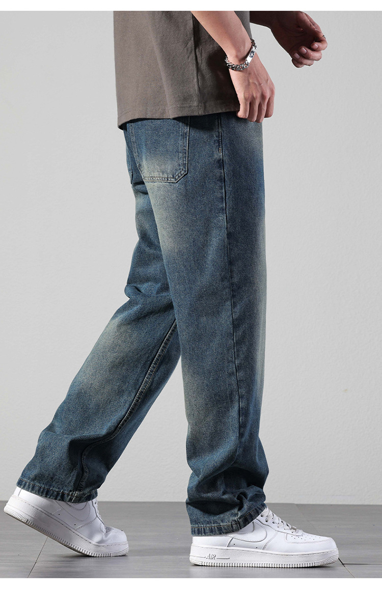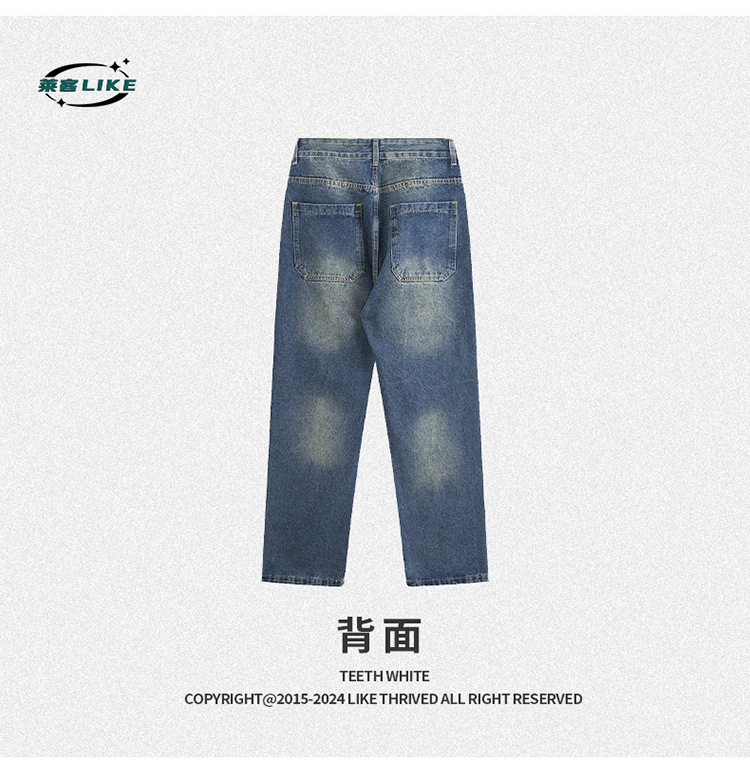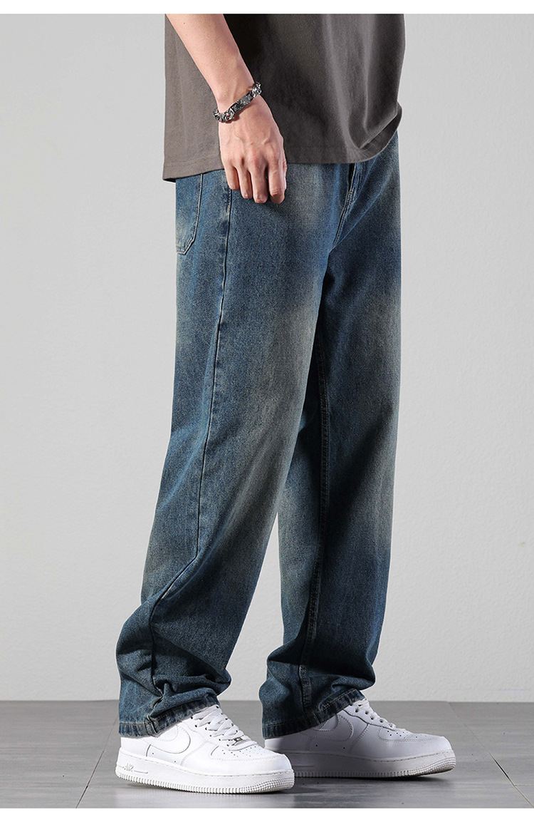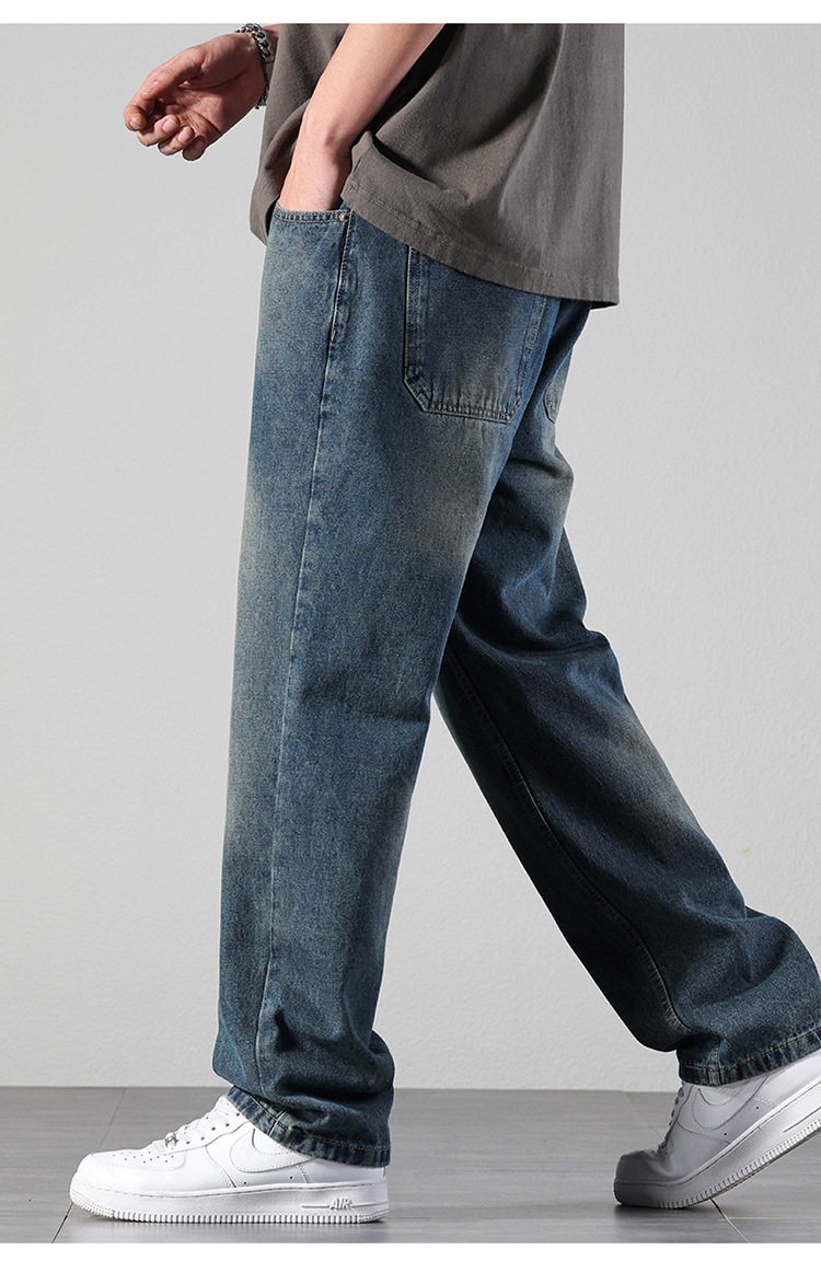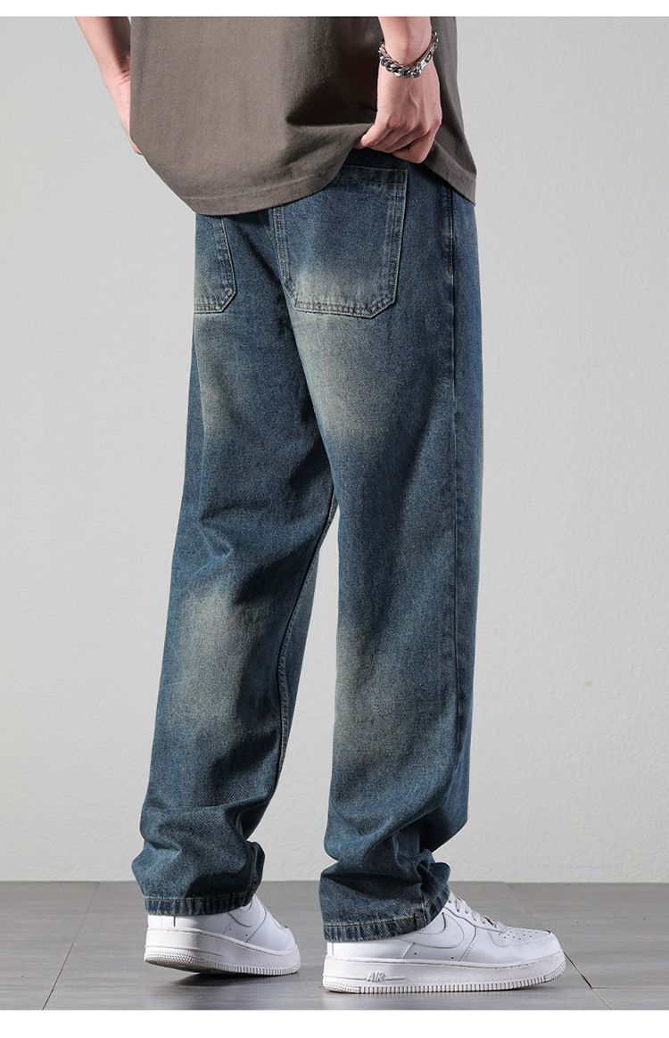 厂家直销男士修身水洗阔腿牛仔裤,秋季休闲高街风格,长裤多口袋设计