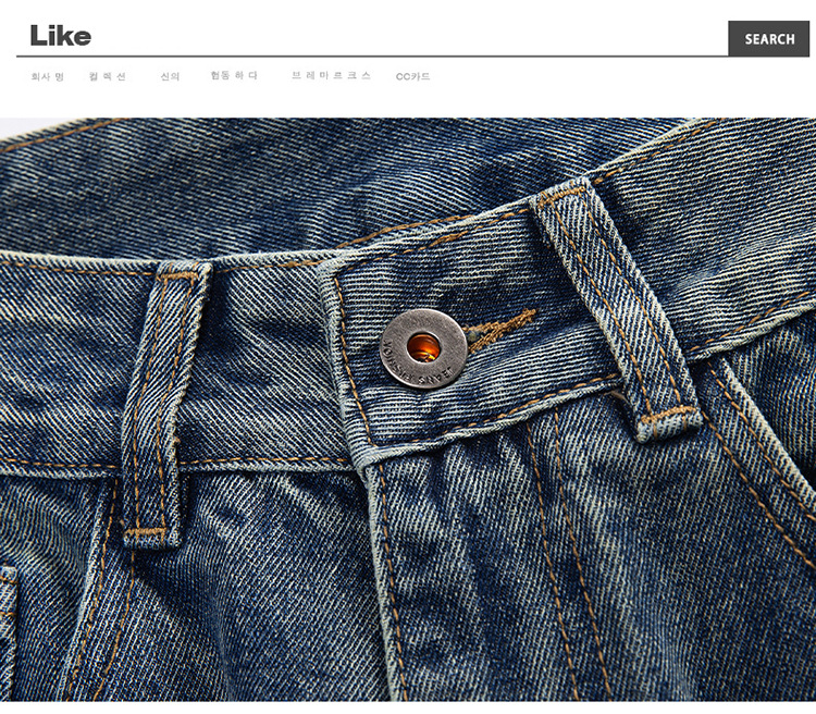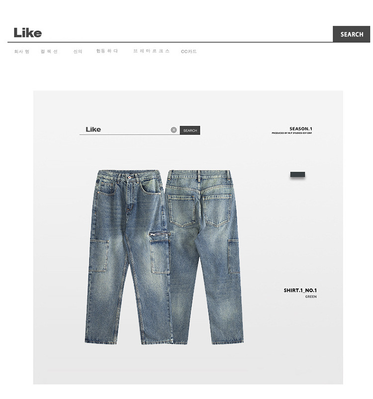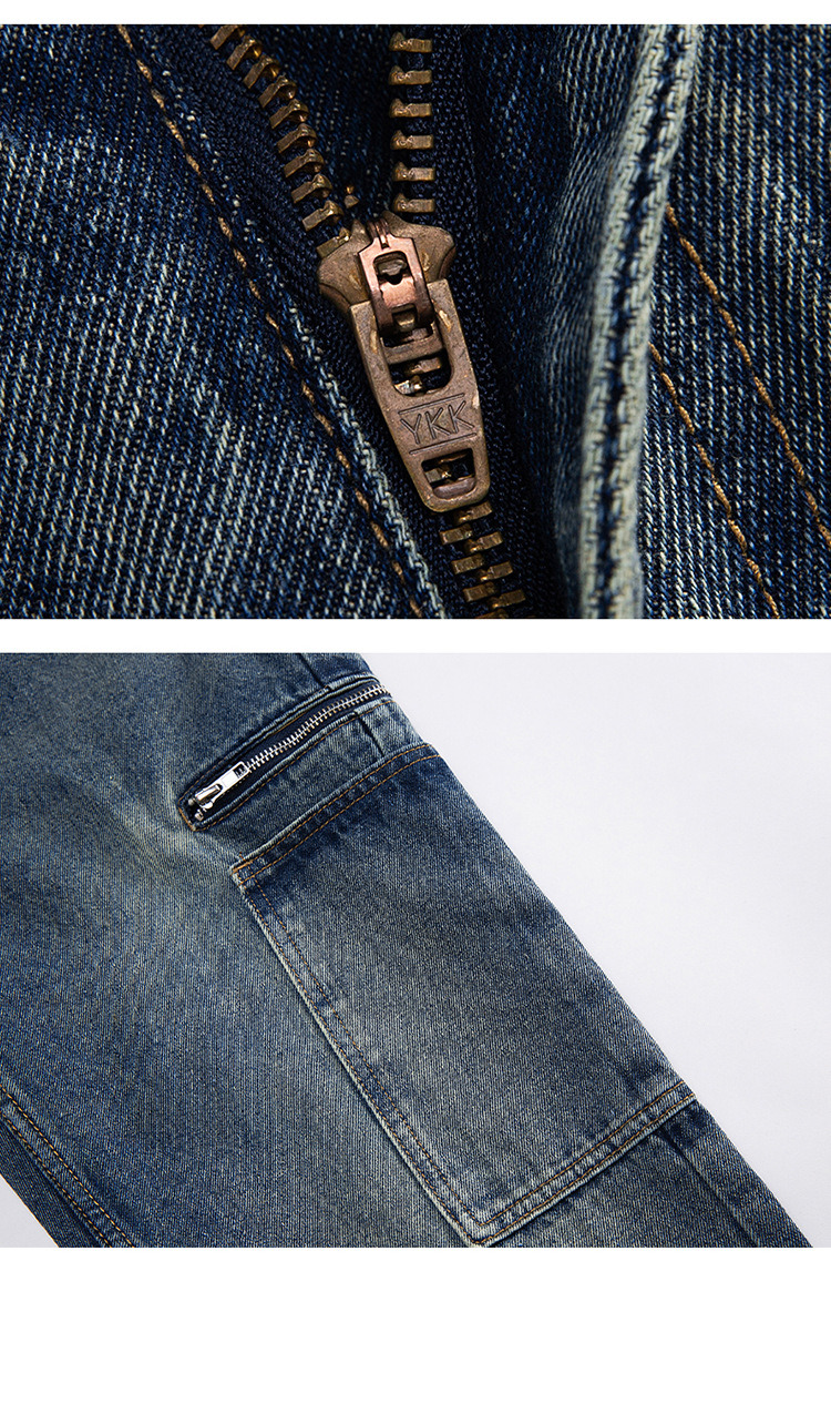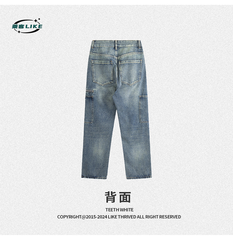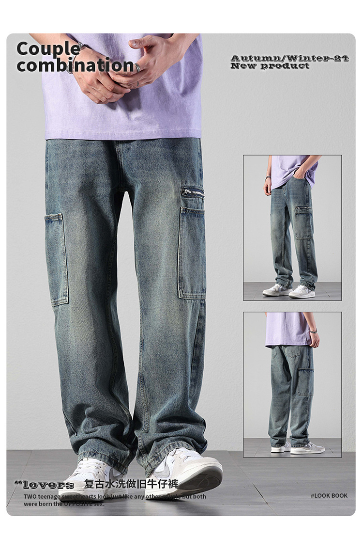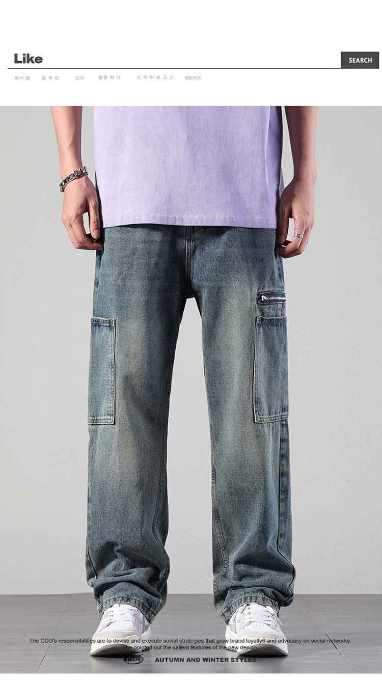 厂家直销男士宽松直筒休闲牛仔裤,夏季高街风格,多口袋水洗设计