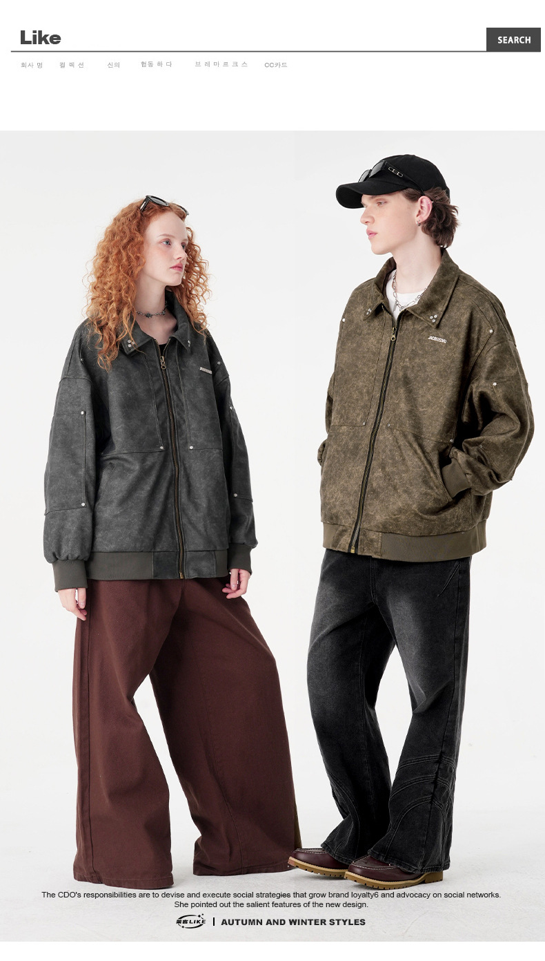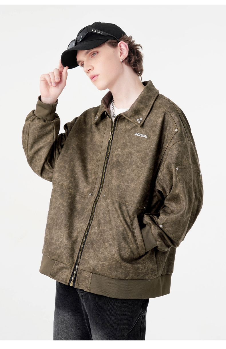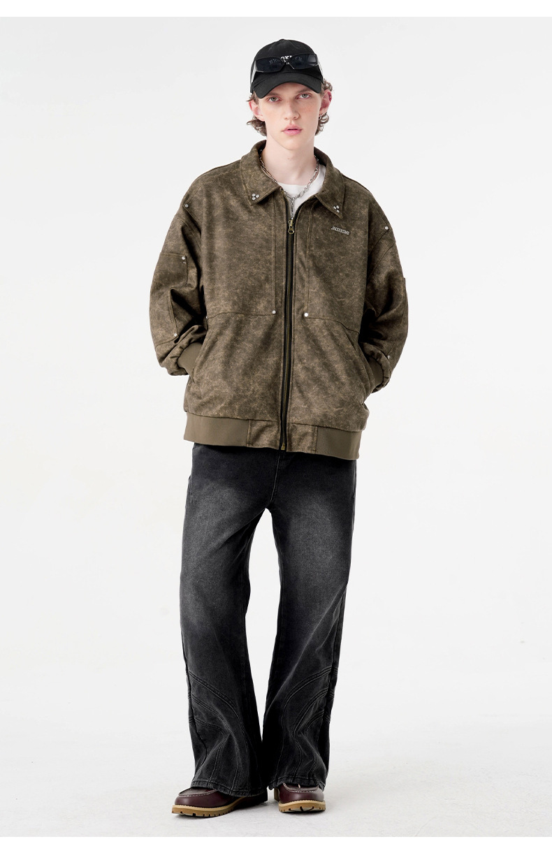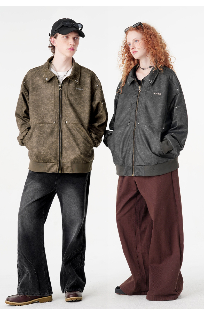 厂家直销青年男士复古铆钉长袖牛仔外套,宽松版型,春秋休闲多口袋设计
