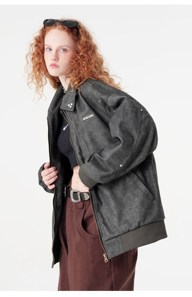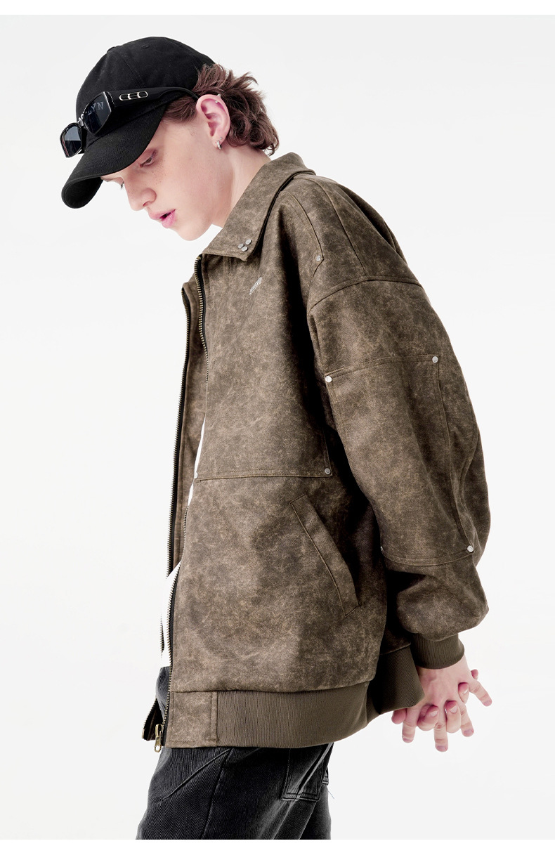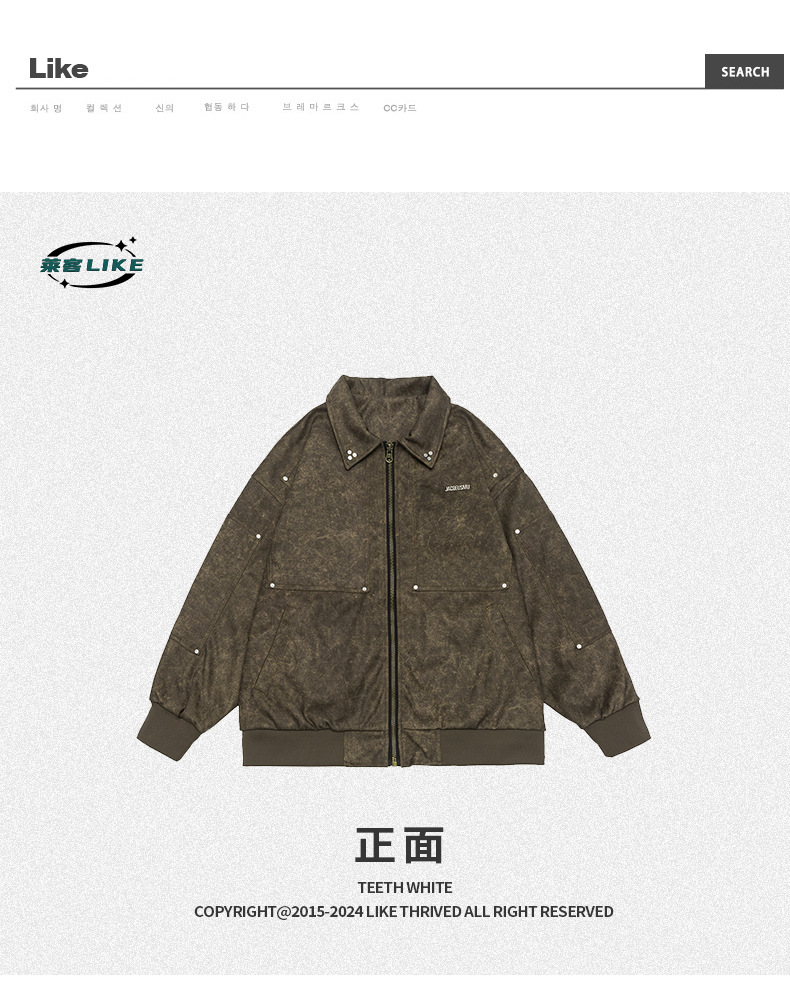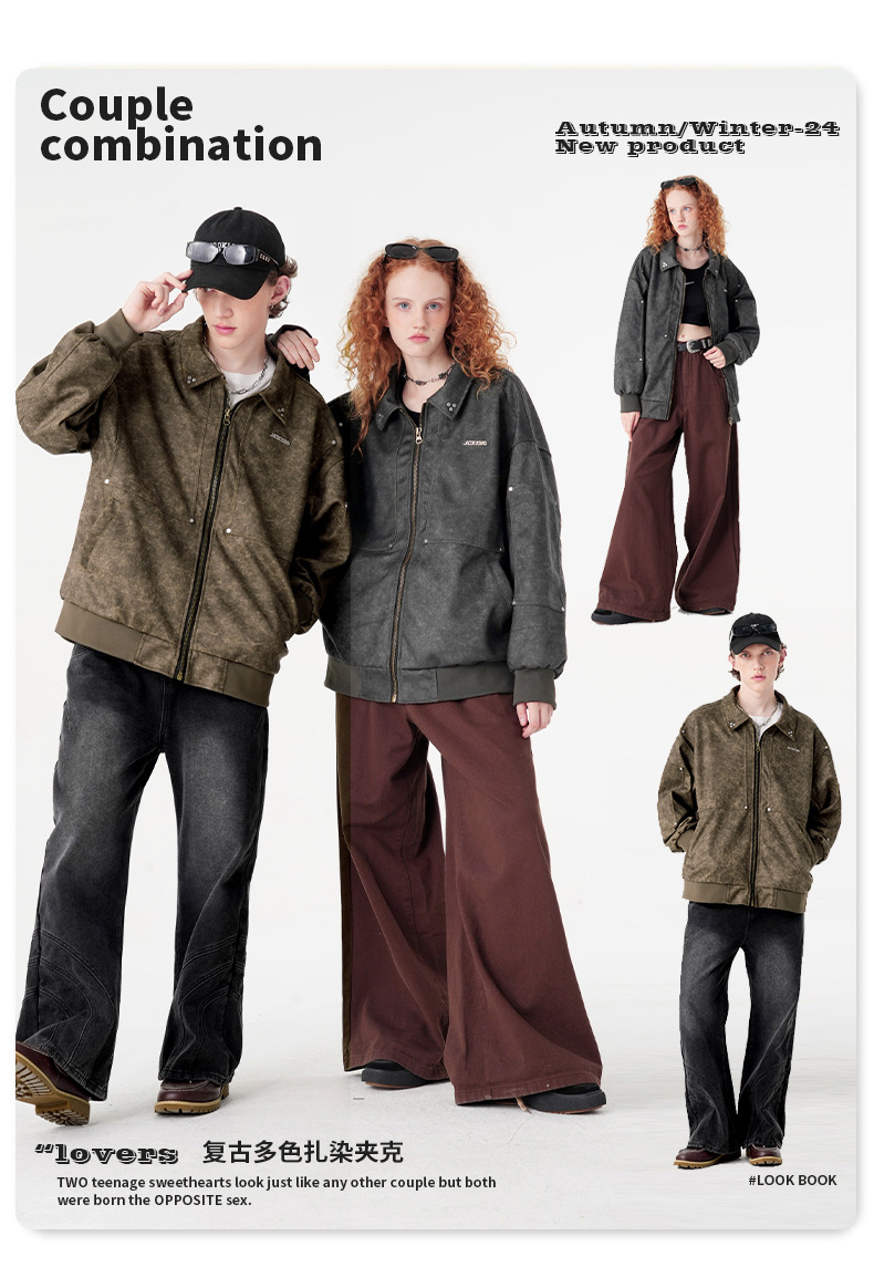 厂家直销青年男士复古铆钉长袖牛仔外套,宽松版型,春秋休闲多口袋设计