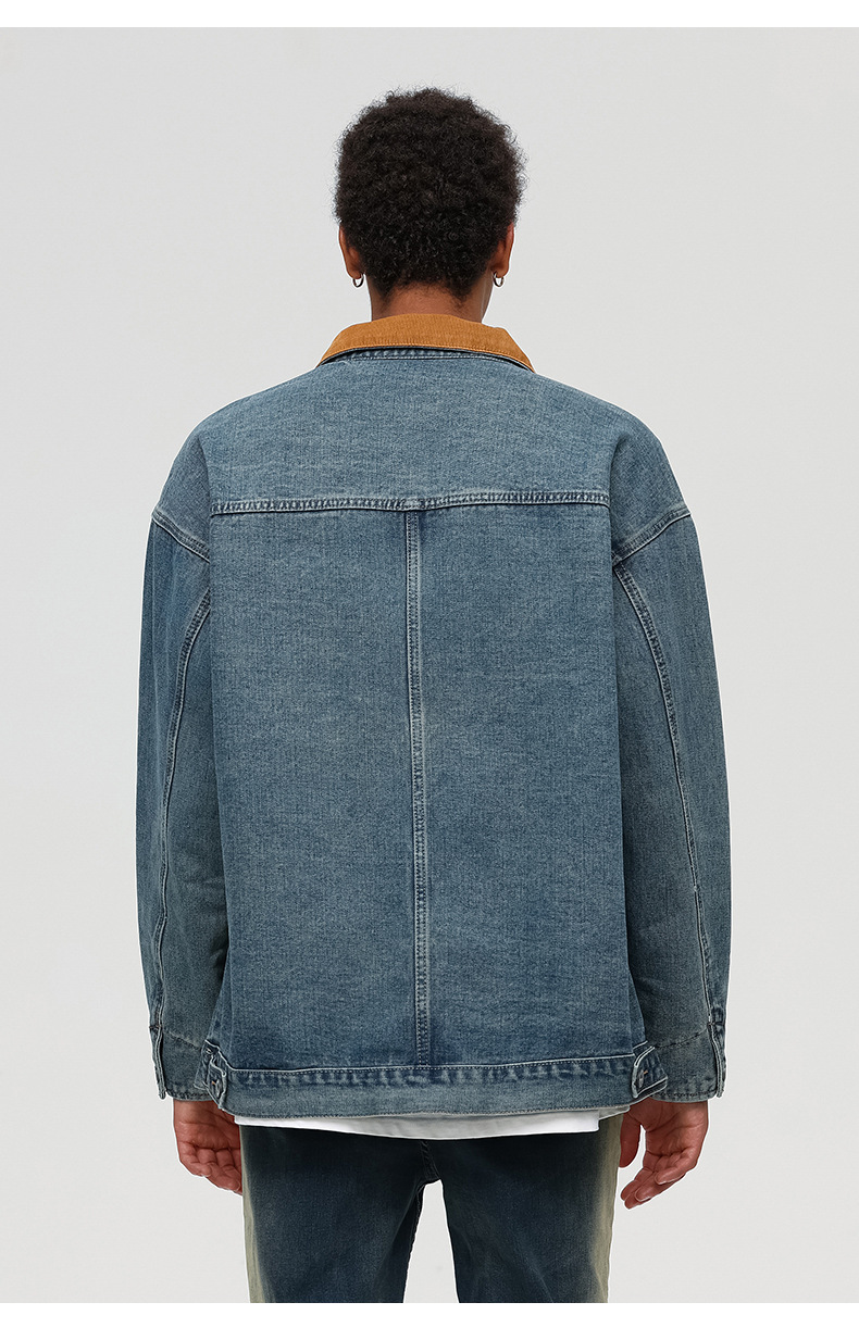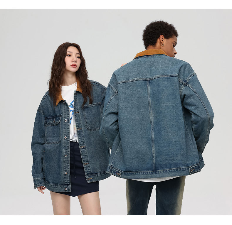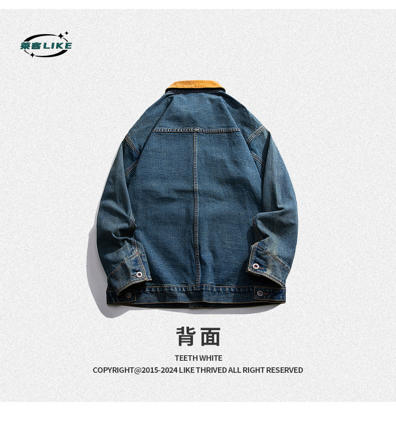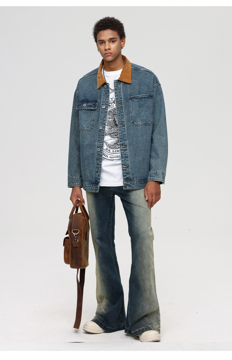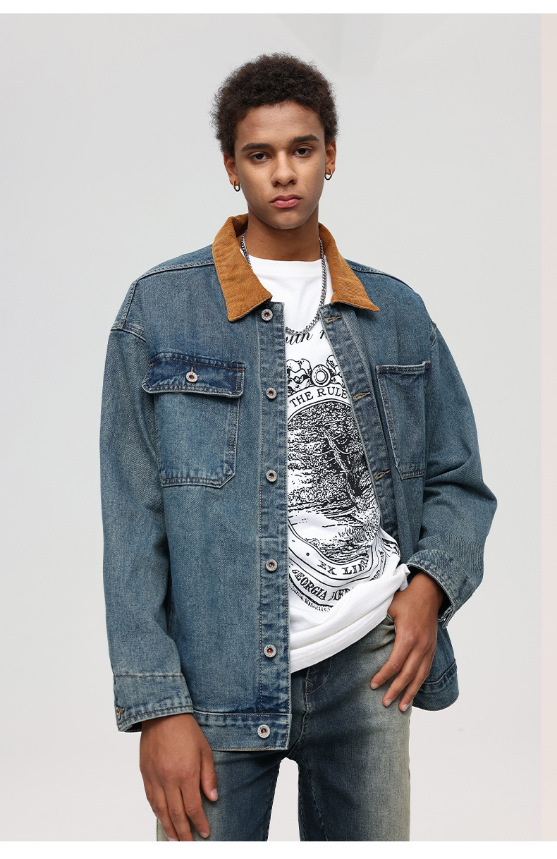 厂家直销男士宽松复古蓝牛仔外套,时尚简约设计,春秋休闲,免烫处理多口袋夹克