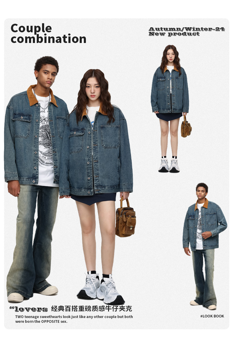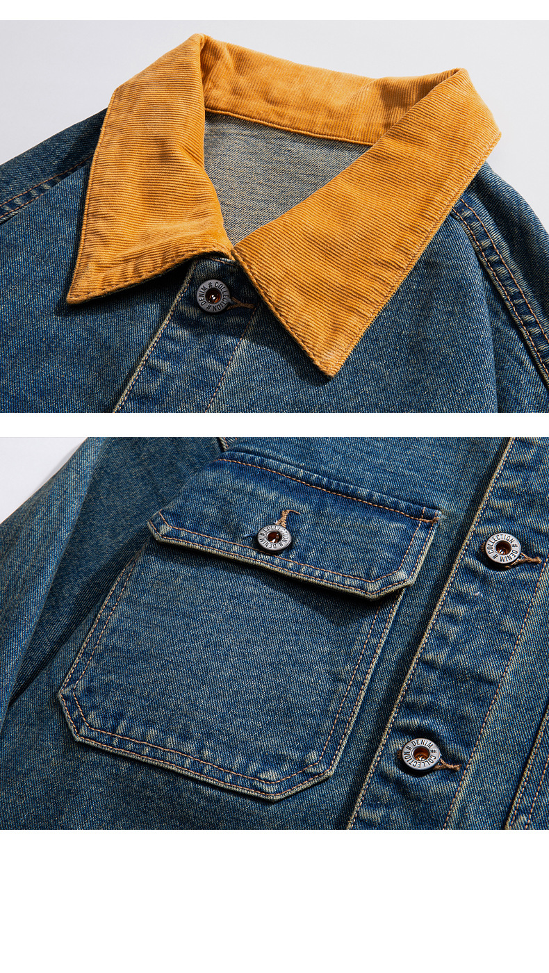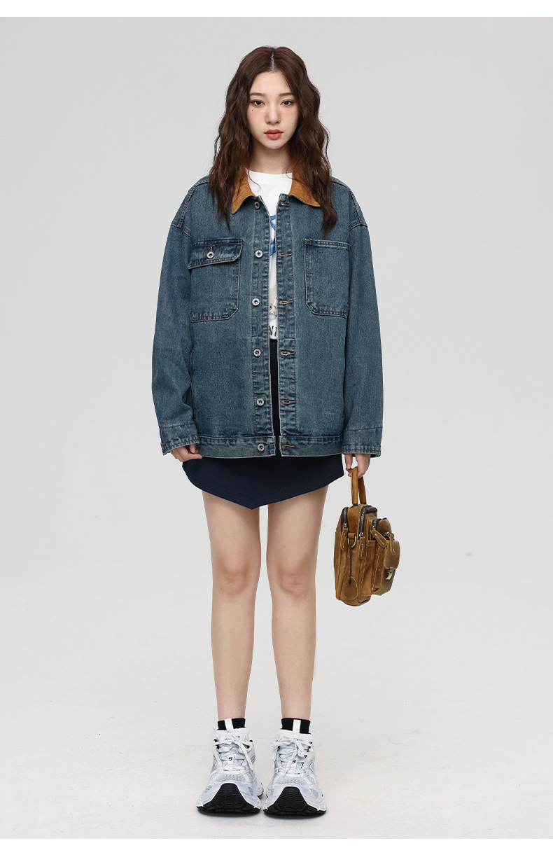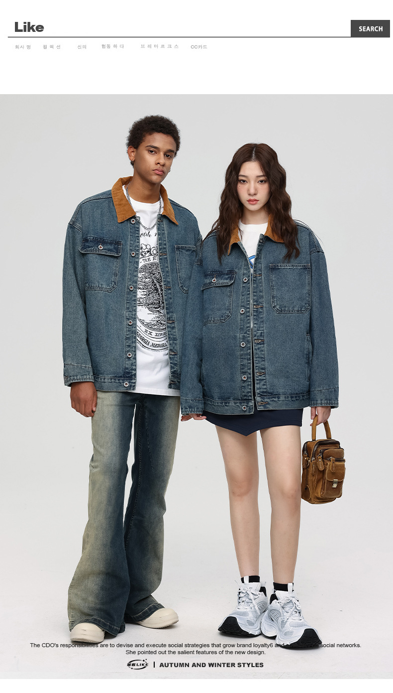 厂家直销男士宽松复古蓝牛仔外套,时尚简约设计,春秋休闲,免烫处理多口袋夹克