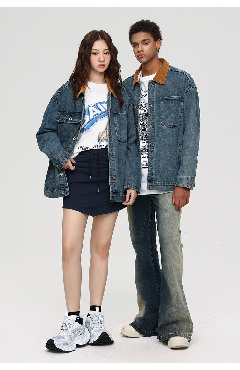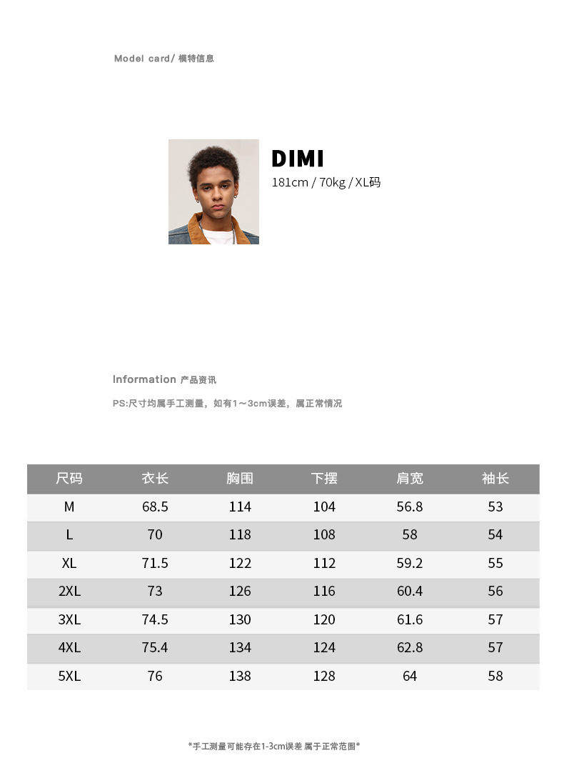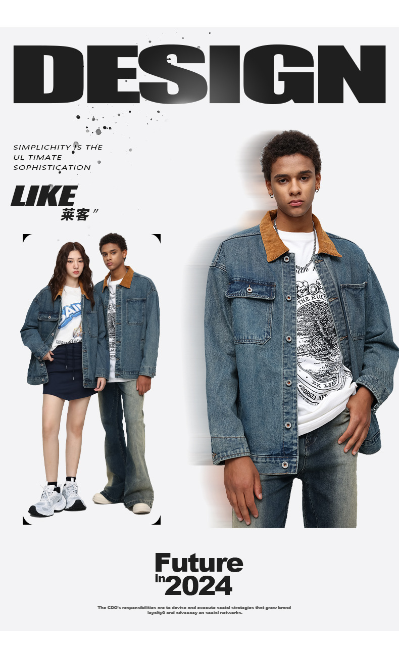 本款潮牌牛仔外套对比正常码数会宽松一些,挑选比自己原码数小一码来穿可能会更加合适哦。
