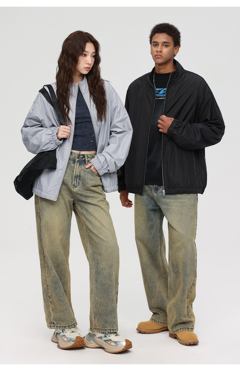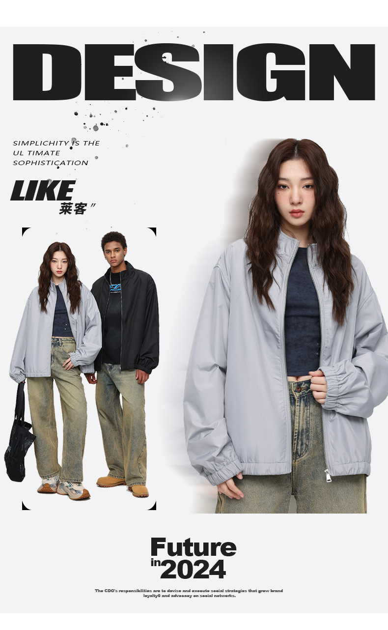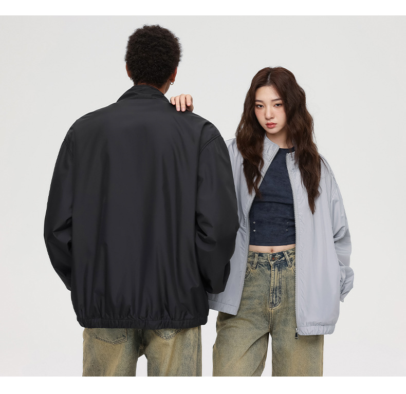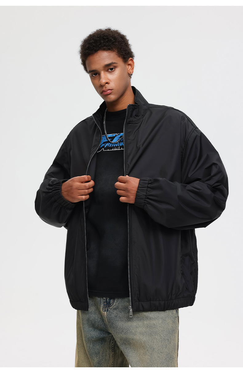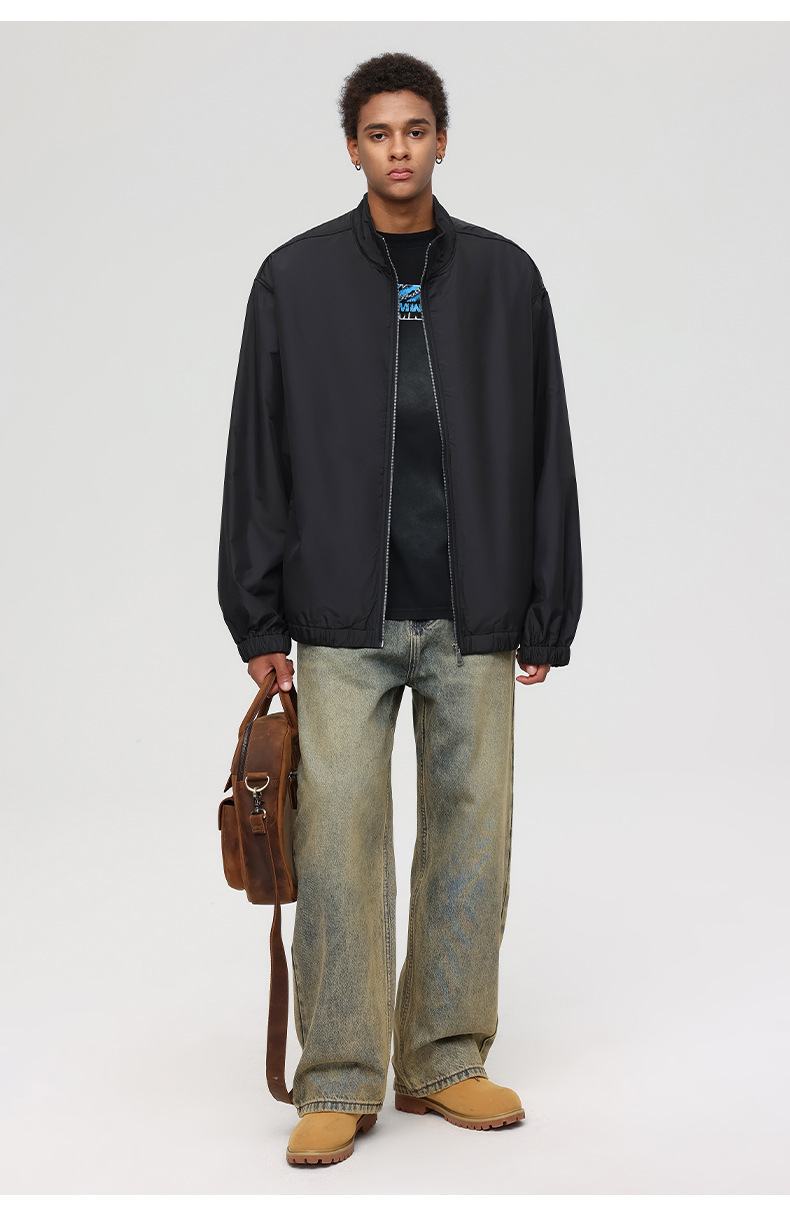 厂家直销男士宽松春秋夹克,简约潮牌运动外套,休闲风格,免烫处理,多口袋设计