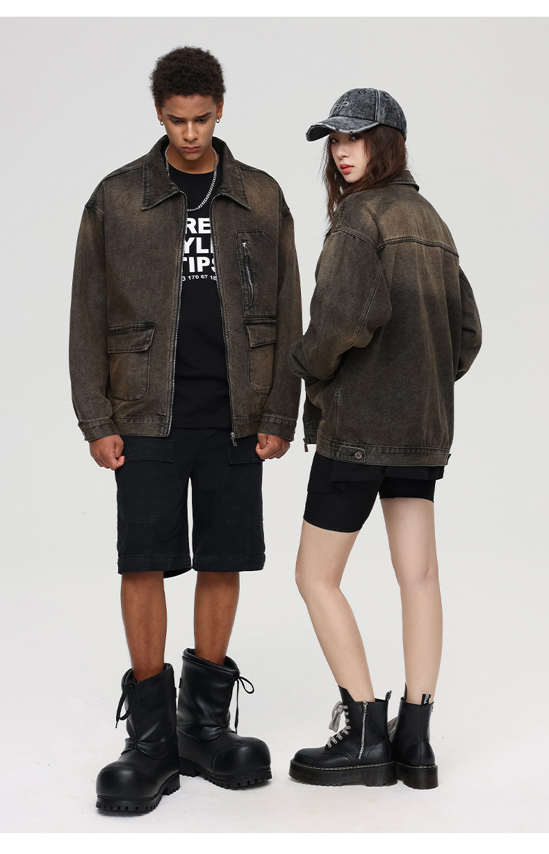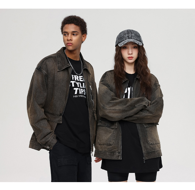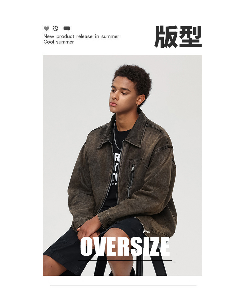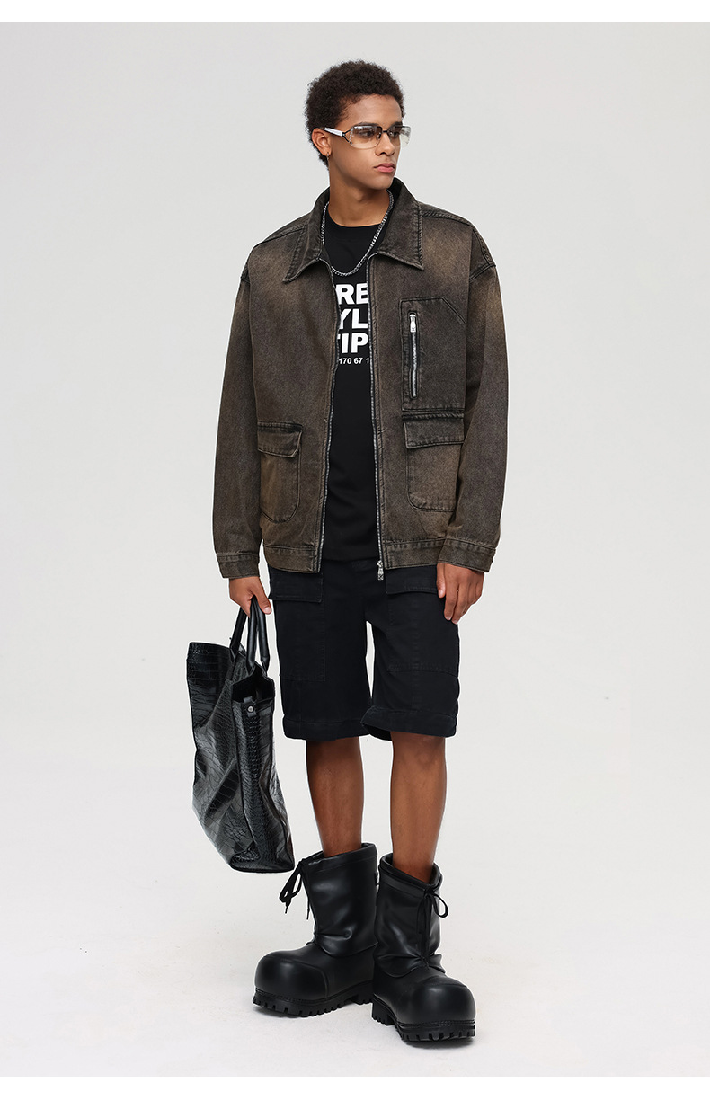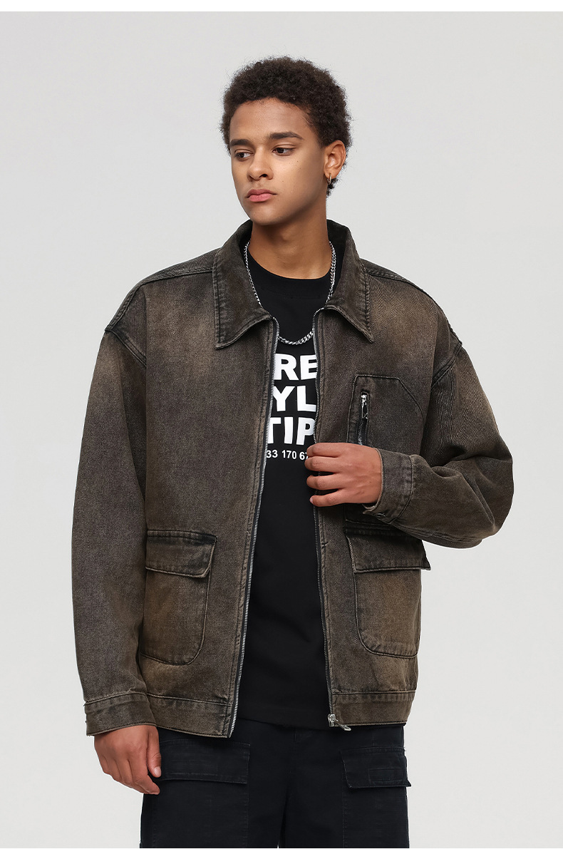 厂家直销男士宽松修身牛仔外套,春秋季美式复古风工装夹克,日常穿搭,免烫处理多口袋设计