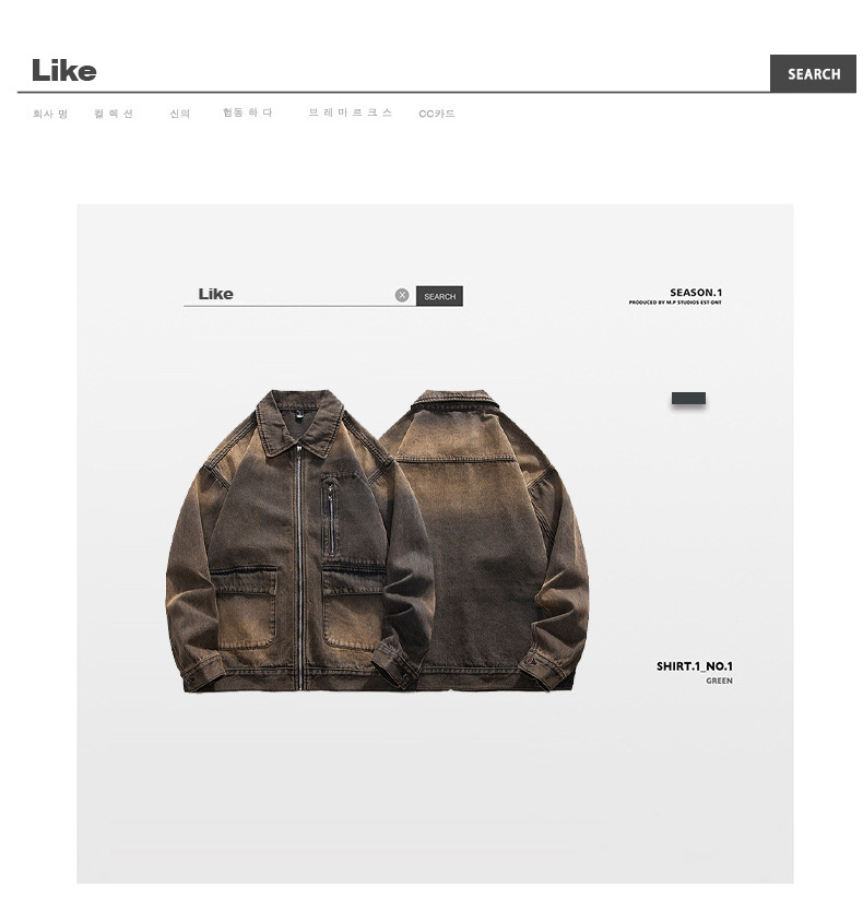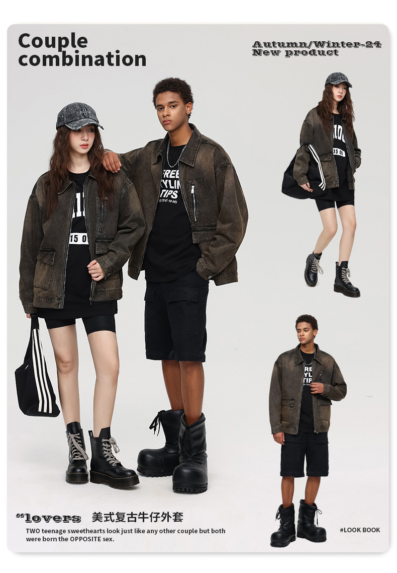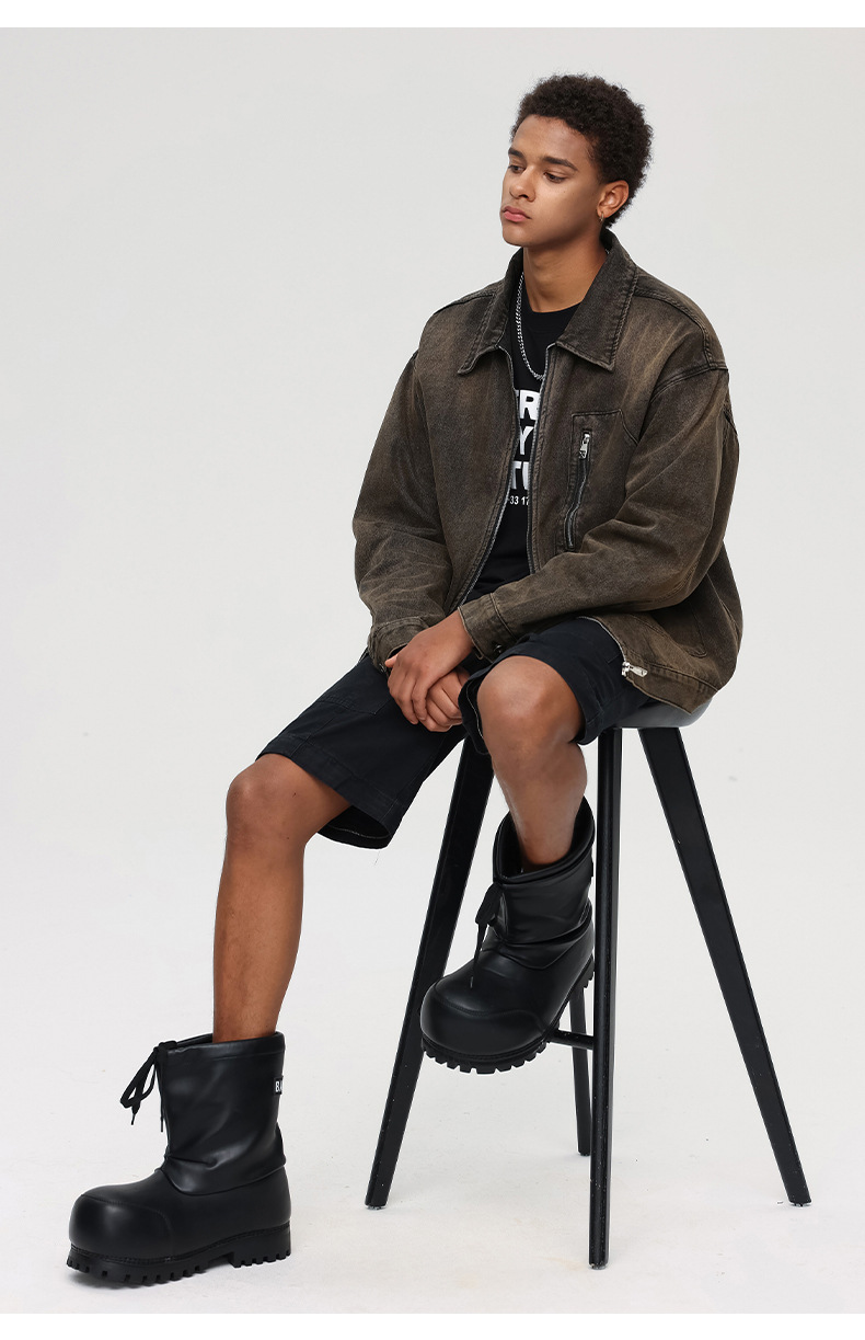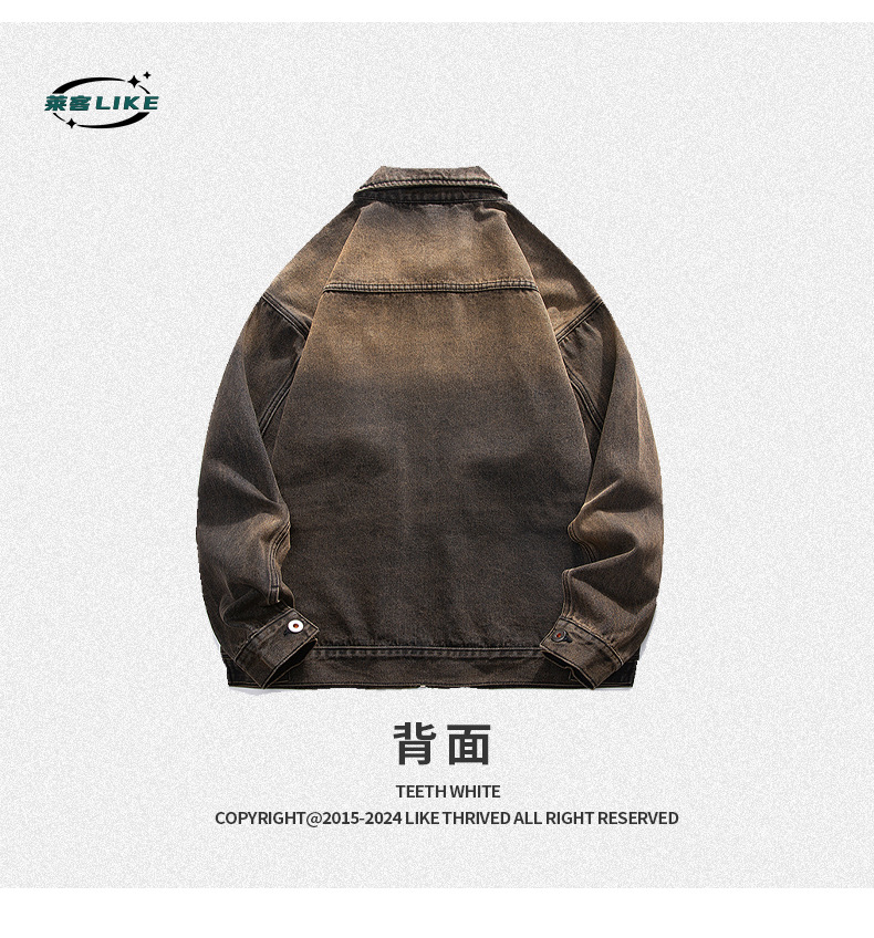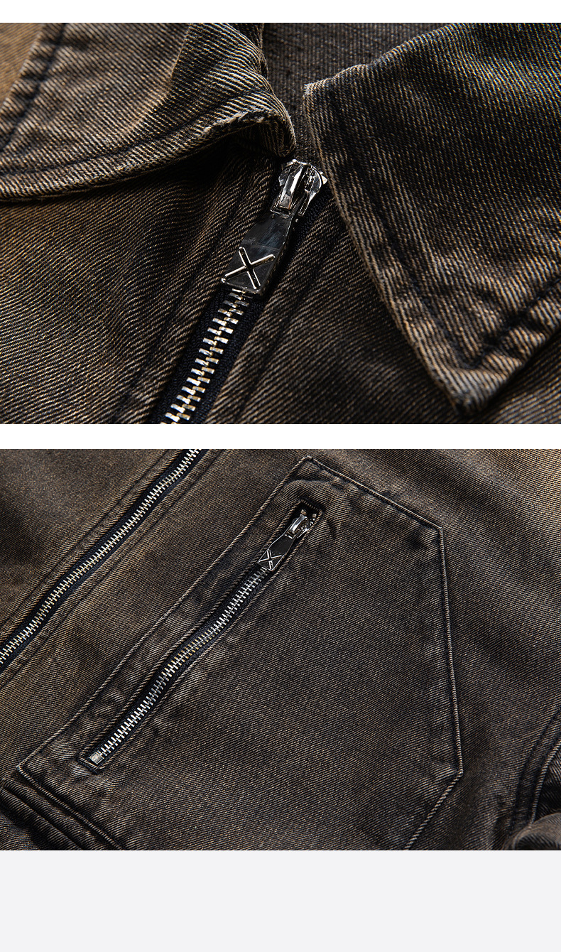 厂家直销男士宽松修身牛仔外套,春秋季美式复古风工装夹克,日常穿搭,免烫处理多口袋设计