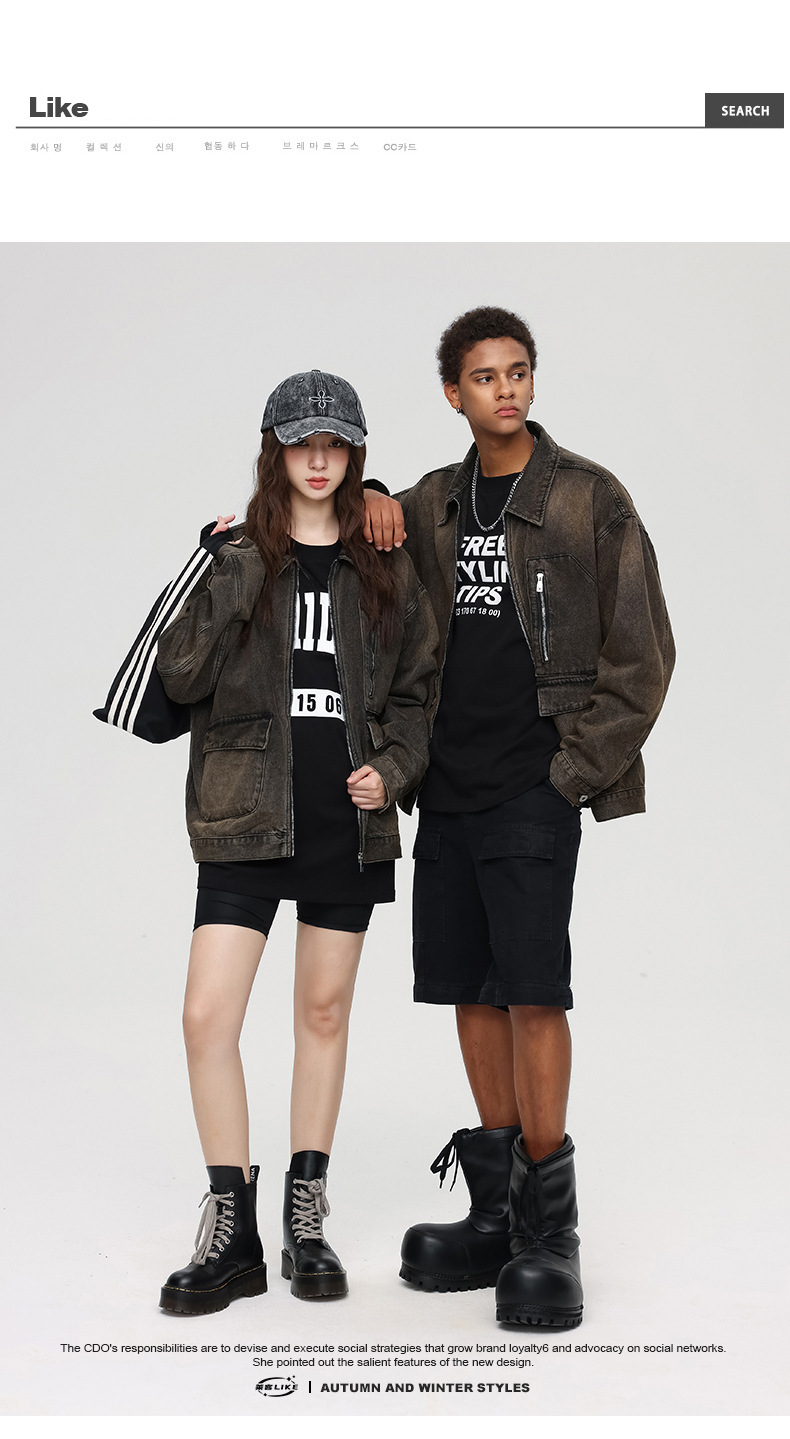 本款潮牌牛仔外套对比正常码数会宽松一些,挑选比自己原码数小一码来穿可能会更加合适哦。