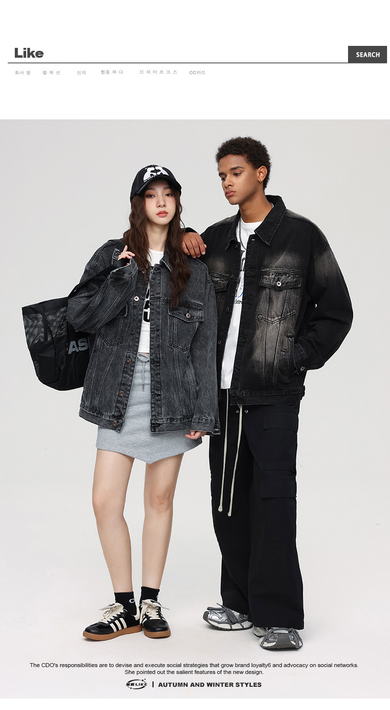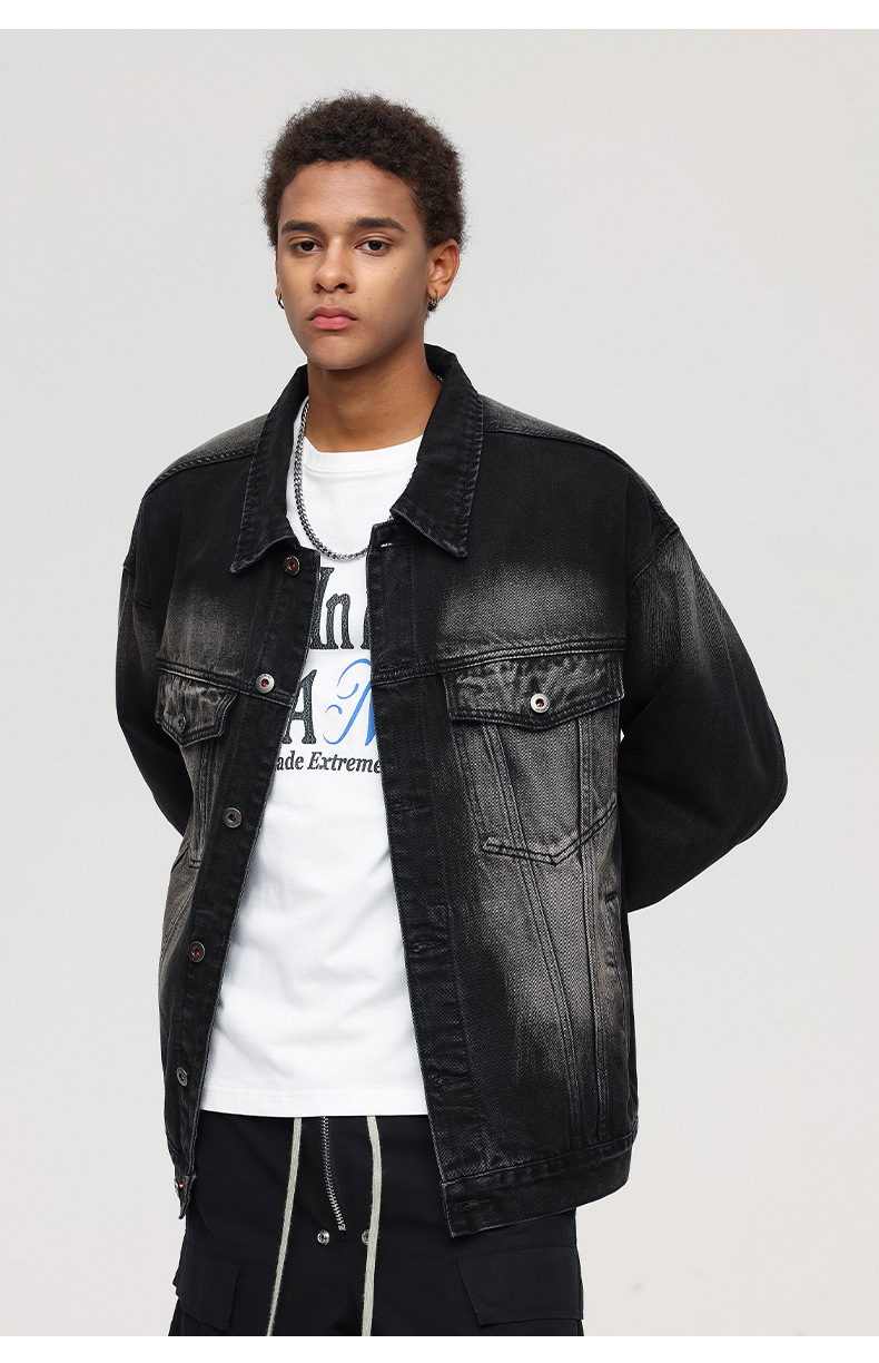 厂家直销青年宽松做旧牛仔外套,休闲风,时尚多口袋设计
