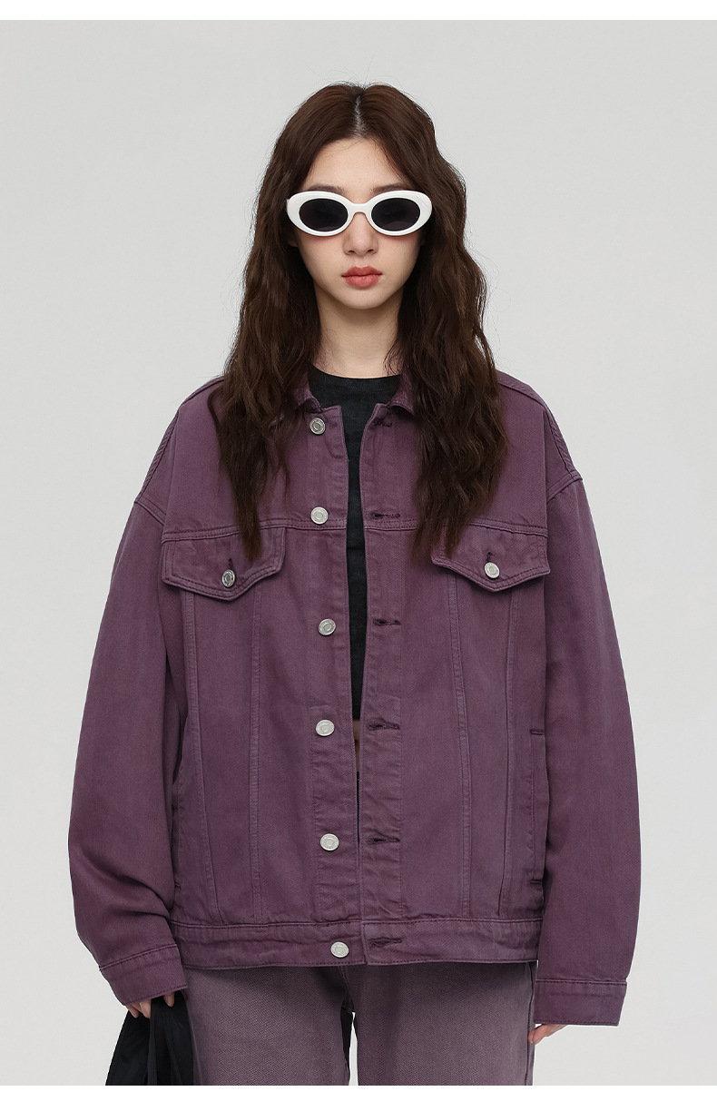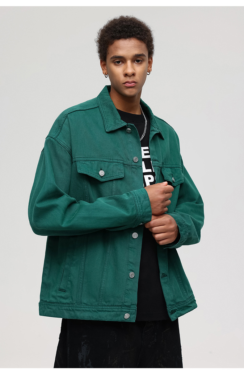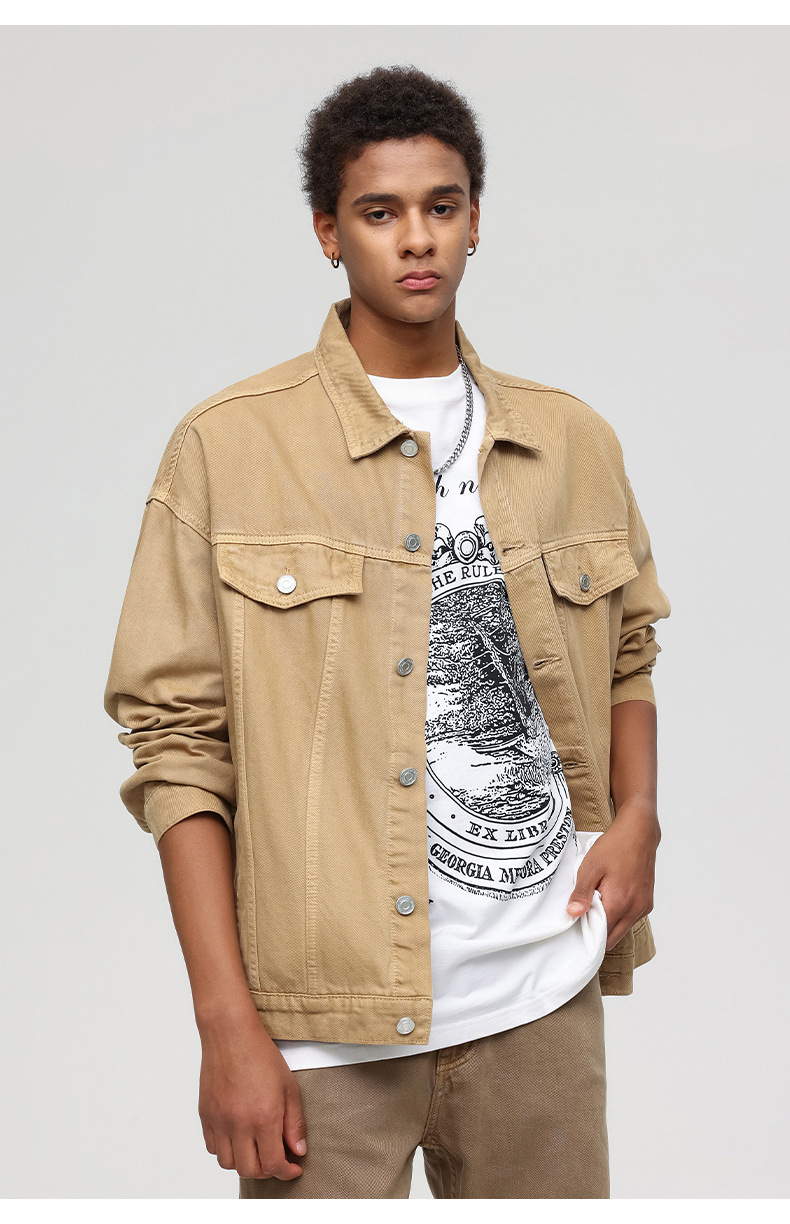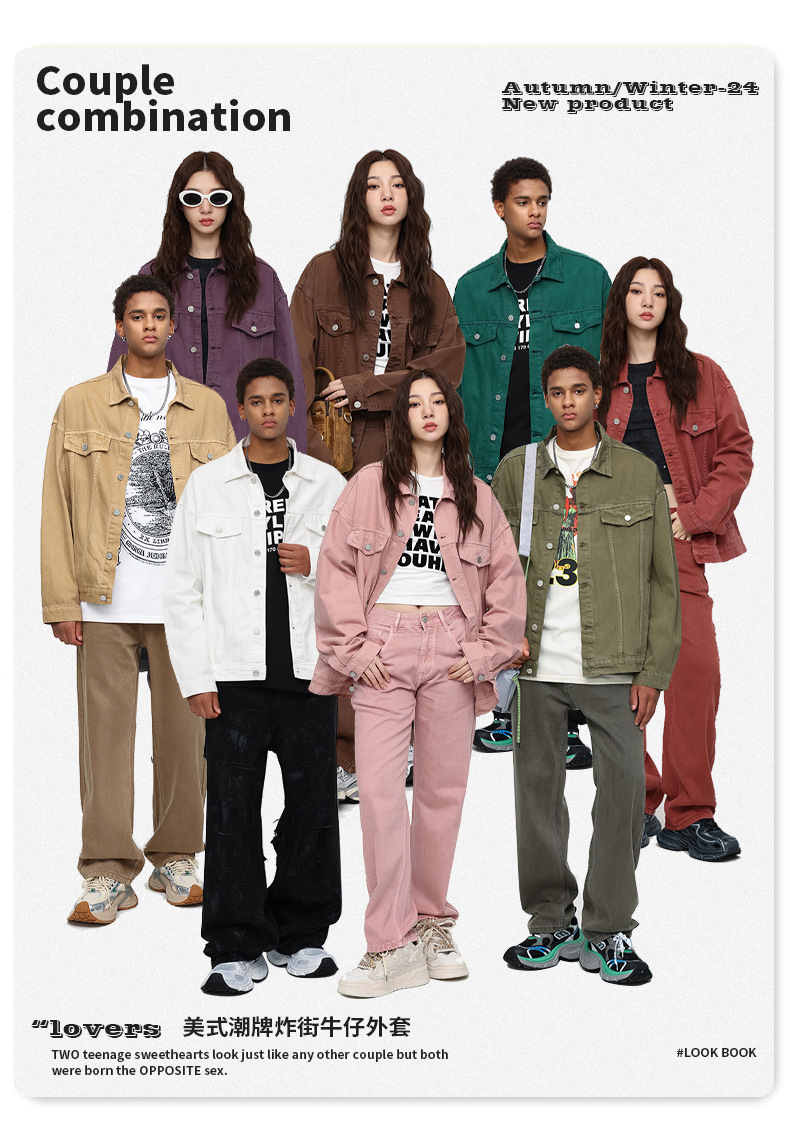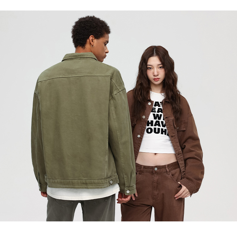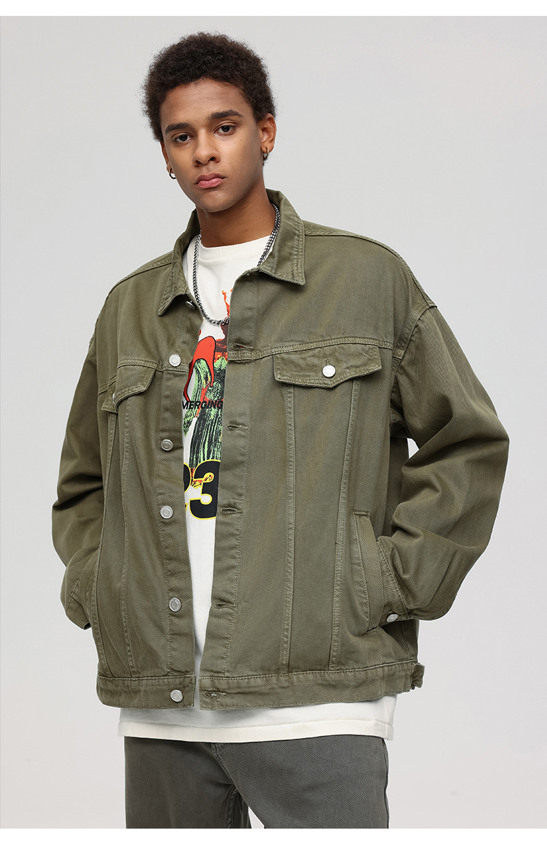厂家直销男士宽松加绒牛仔外套,四季休闲风,美式复古染色夹克