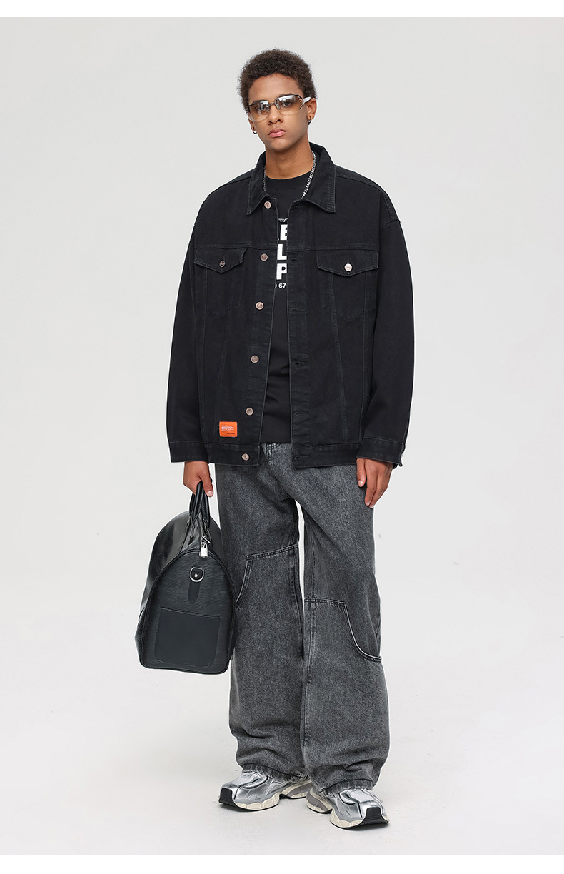 厂家直销男士宽松复古水洗牛仔外套,休闲风格,多口袋设计,日常百搭夹克
