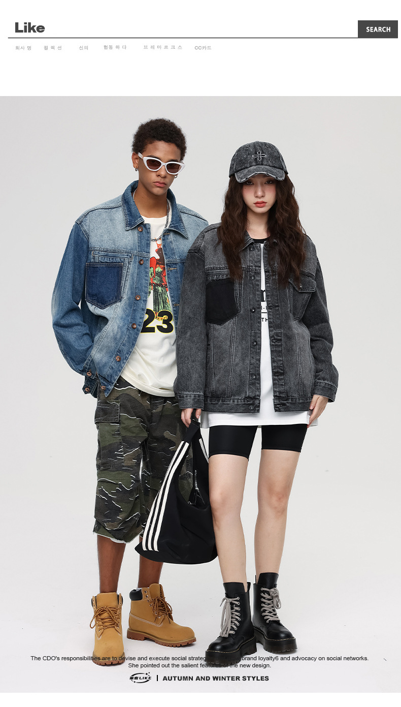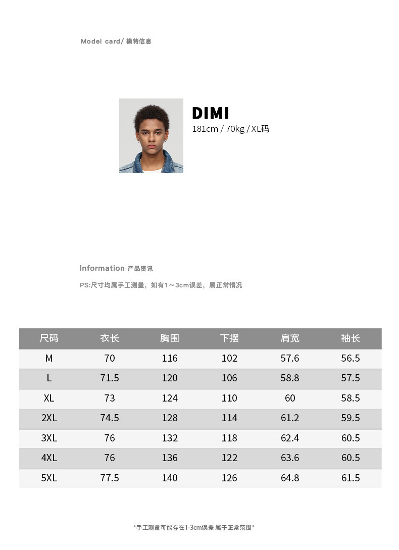 本款潮牌牛仔外套对比正常码数会宽松一些,挑选比自己原码数小一码来穿可能会更加合适哦。
