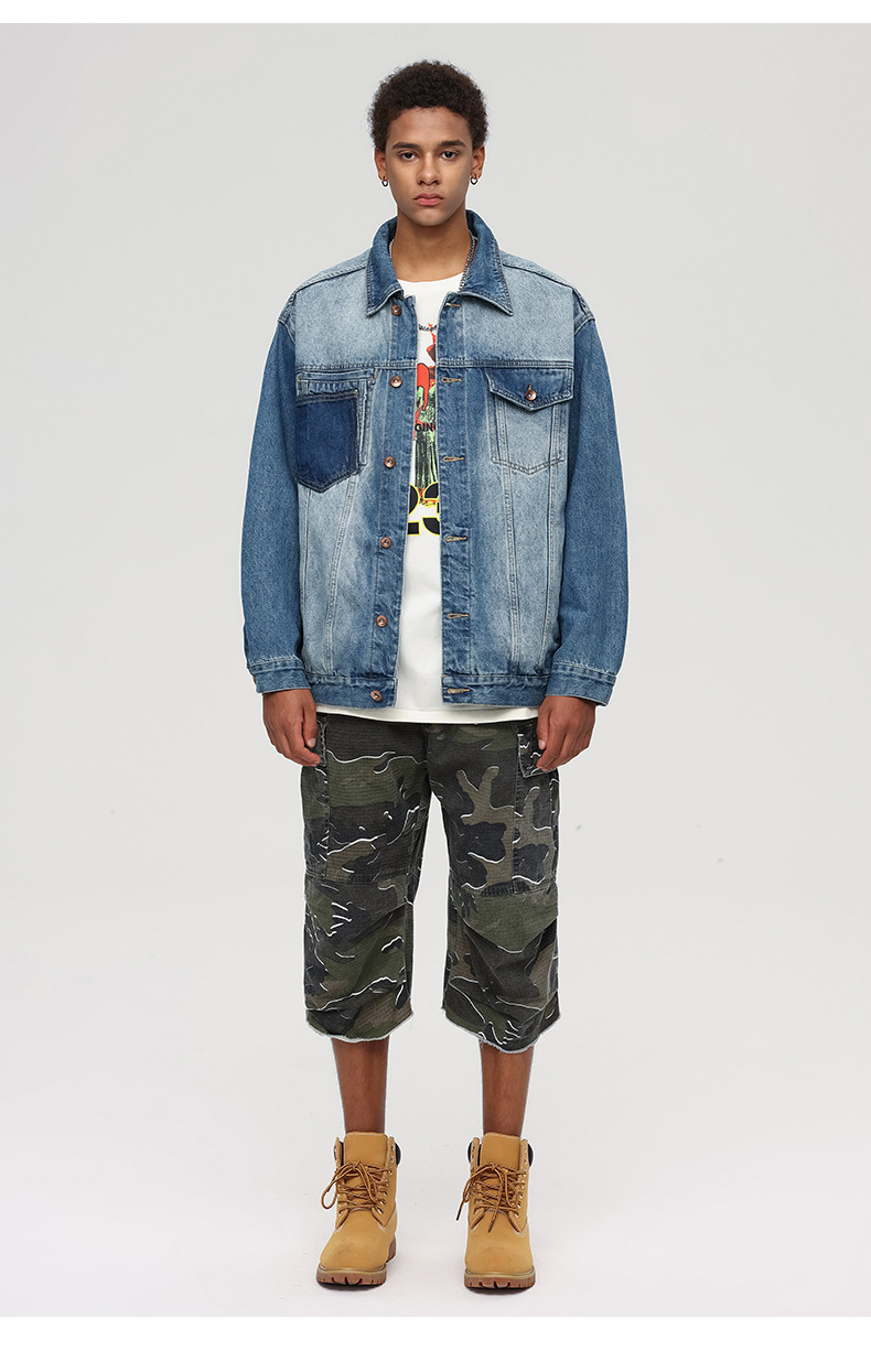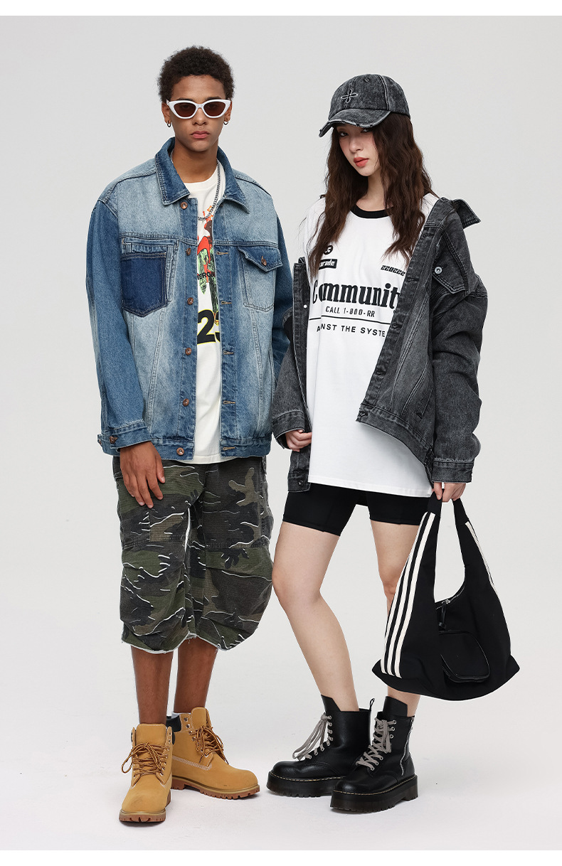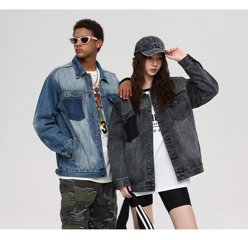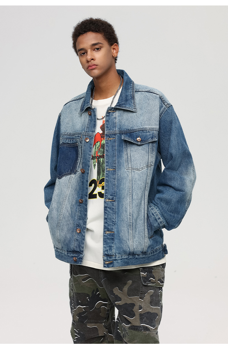 厂家直销男士宽松复古牛仔外套,简约时尚,适合春秋季,日常休闲穿搭,免烫处理设计