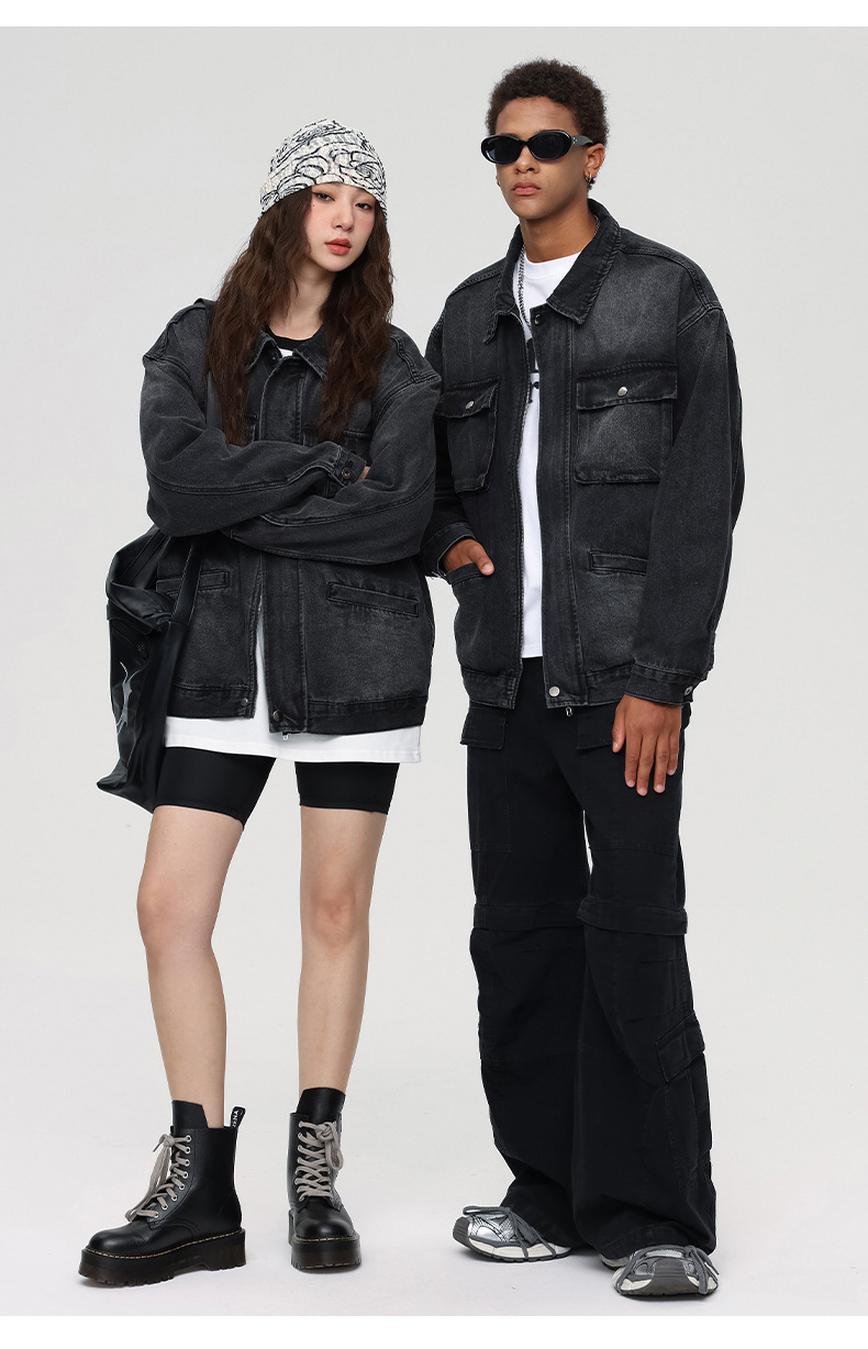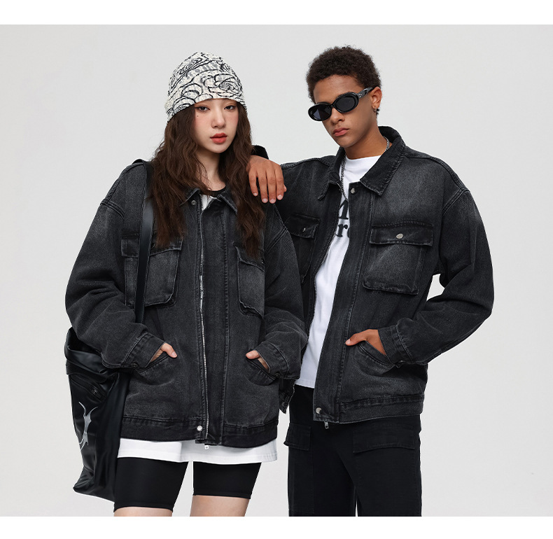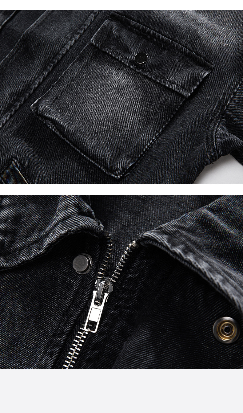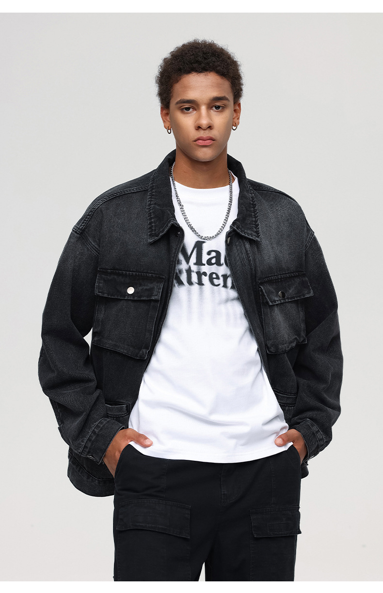 厂家直销男士宽松牛仔外套,多口袋设计,牛仔夹克,春秋季,免烫处理