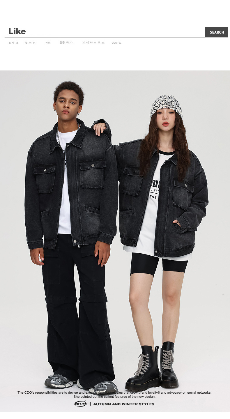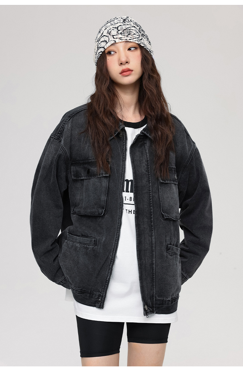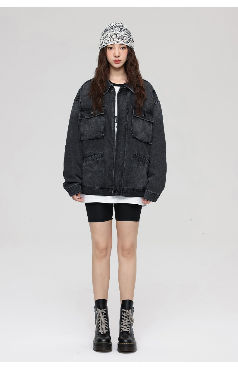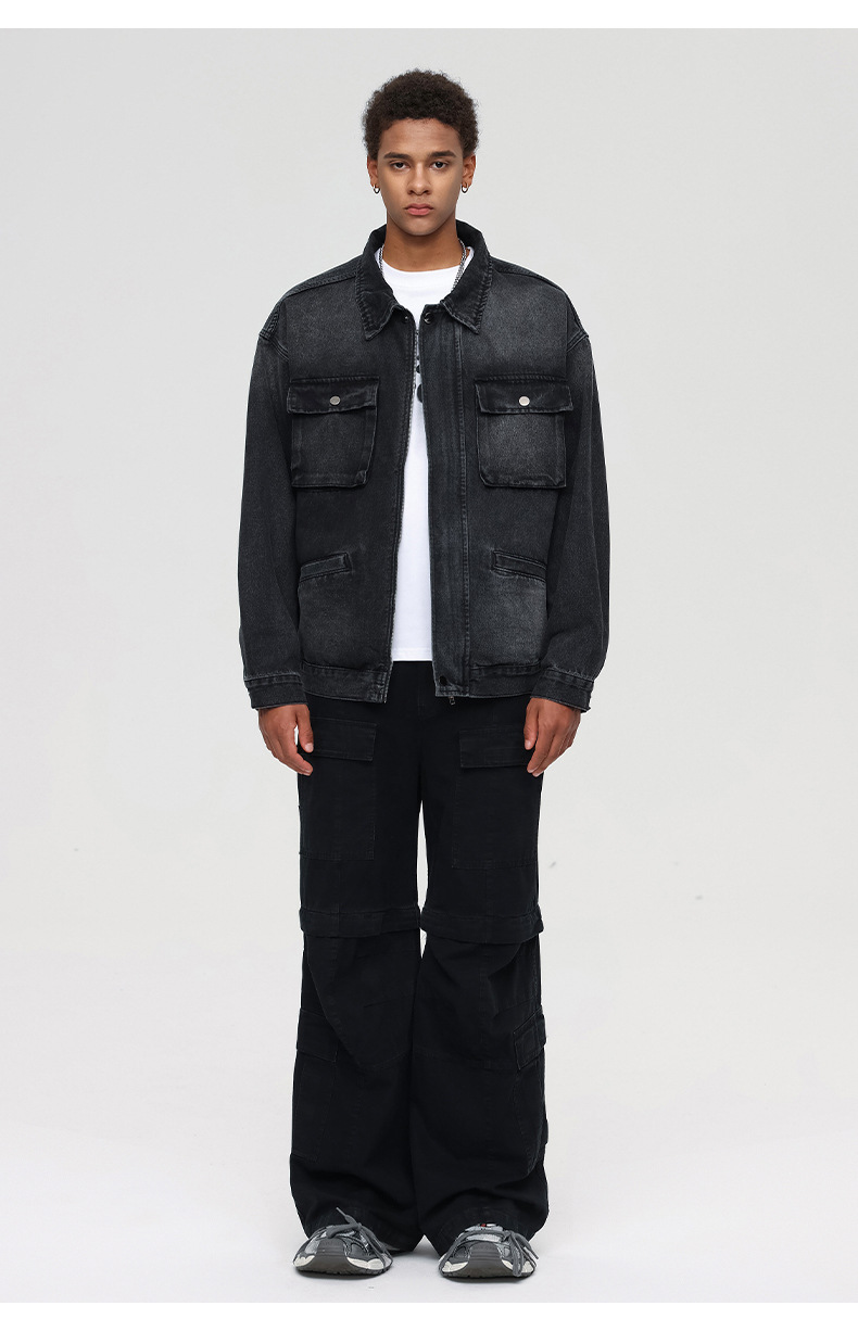 厂家直销男士宽松牛仔外套,多口袋设计,牛仔夹克,春秋季,免烫处理