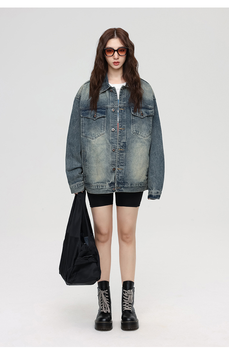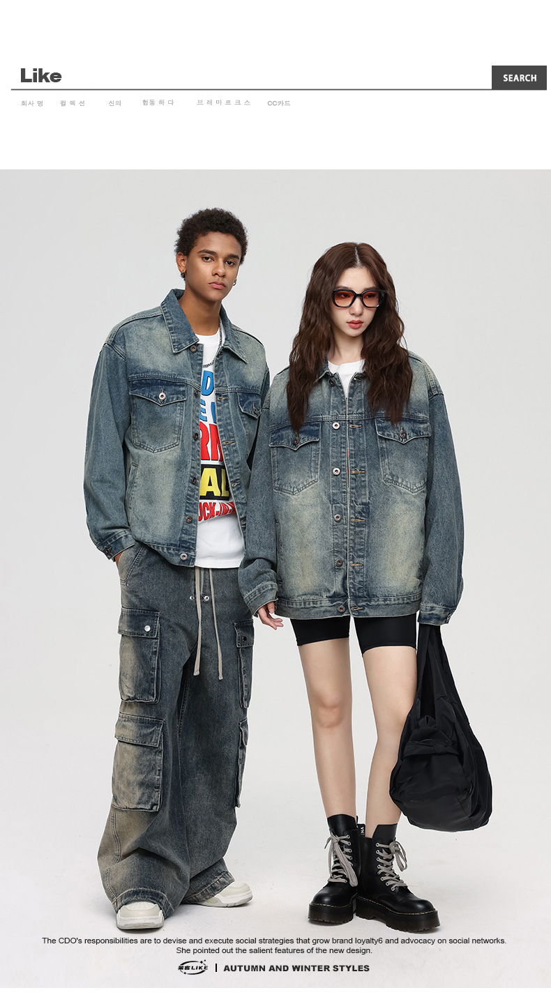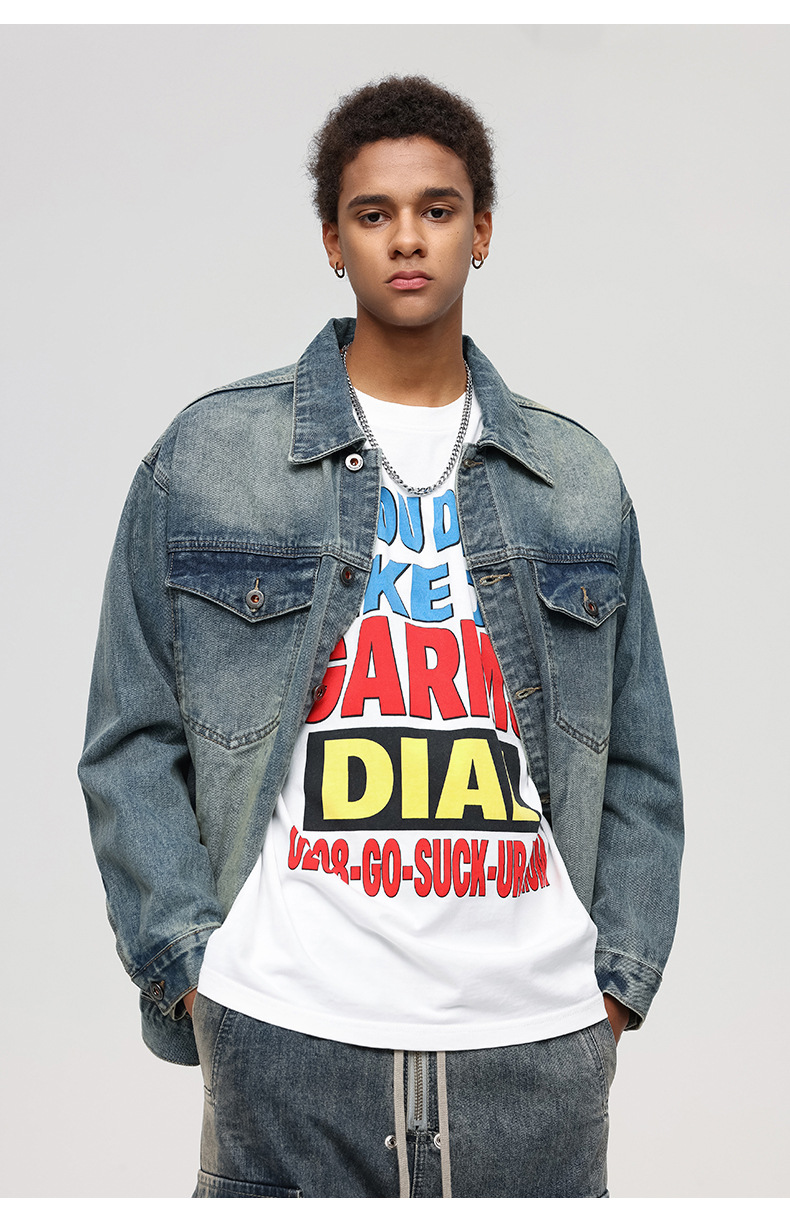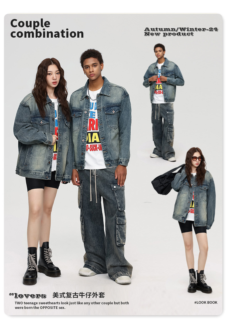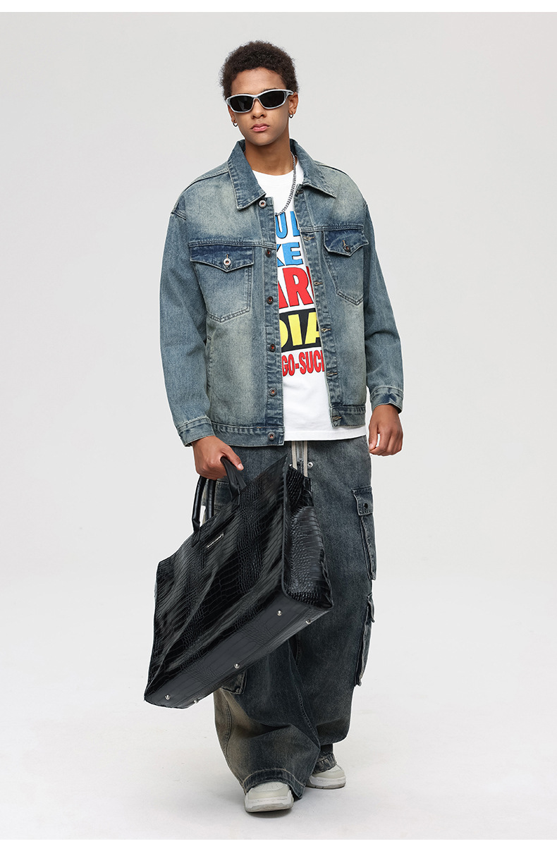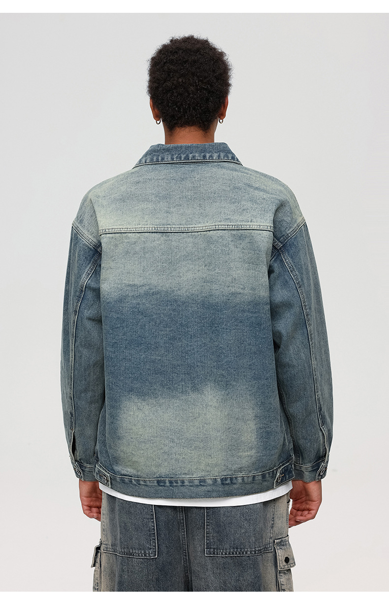 厂家直销男士宽松牛仔外套,复古美式风格,日常时尚夹克,春秋季,多口袋设计,免烫处理