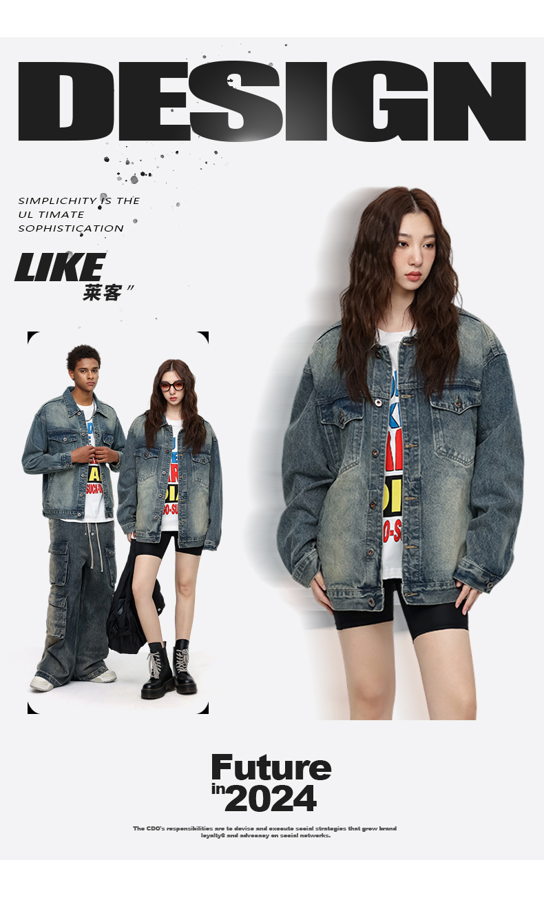 本款潮牌牛仔外套对比正常码数会宽松一些,挑选比自己原码数小一码来穿可能会更加合适哦。