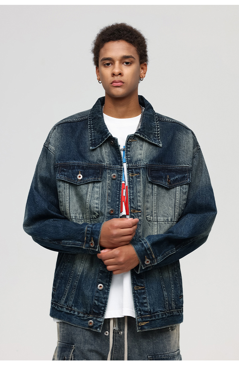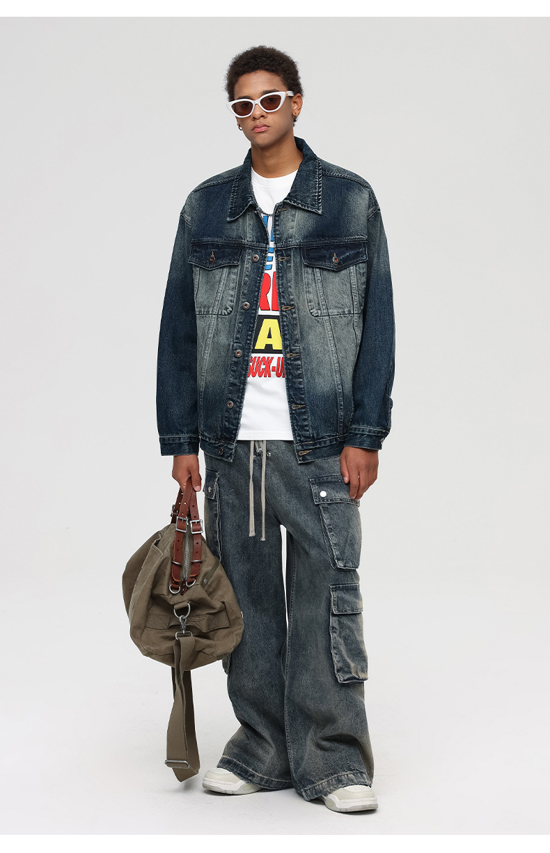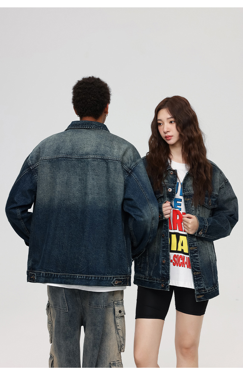 厂家直销男士宽松渐变牛仔外套,复古休闲风格,多口袋设计,春秋季必备,舒适棉质面料