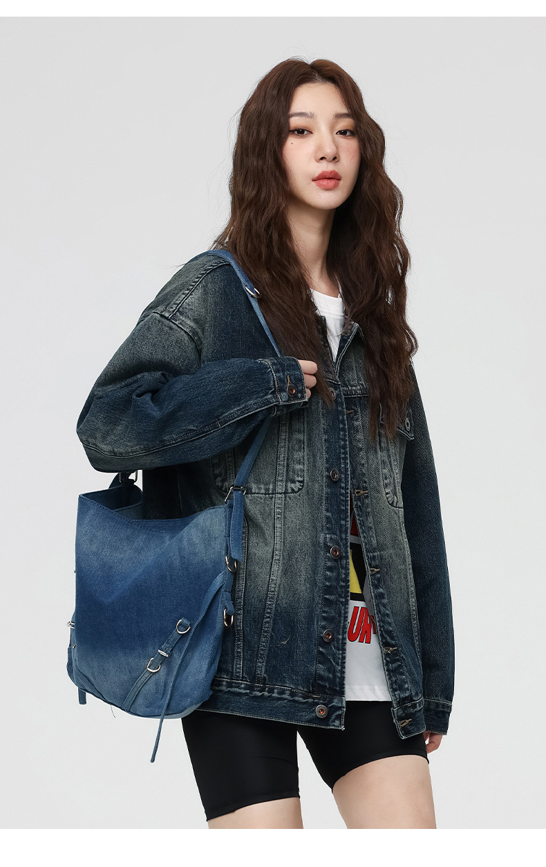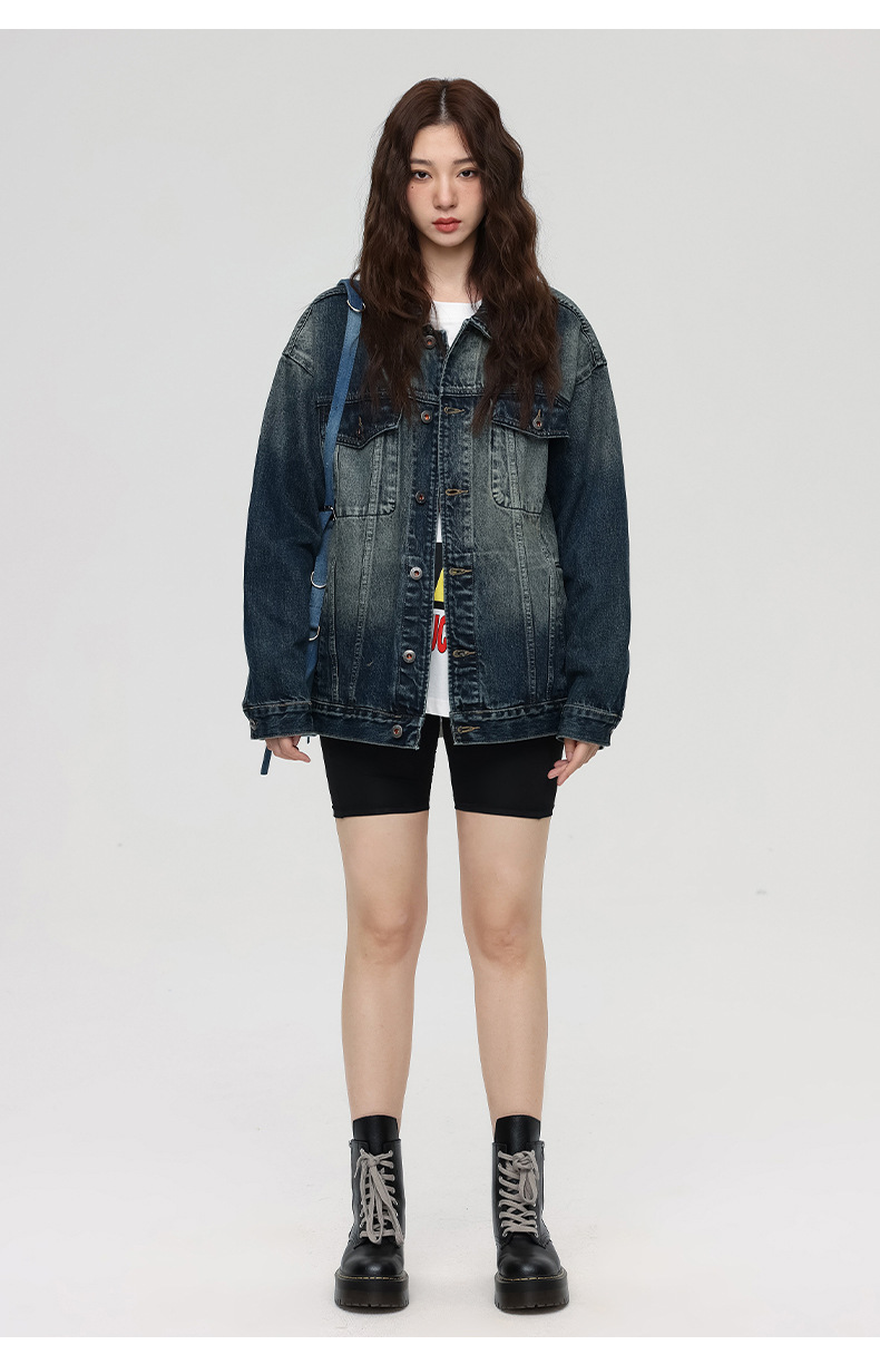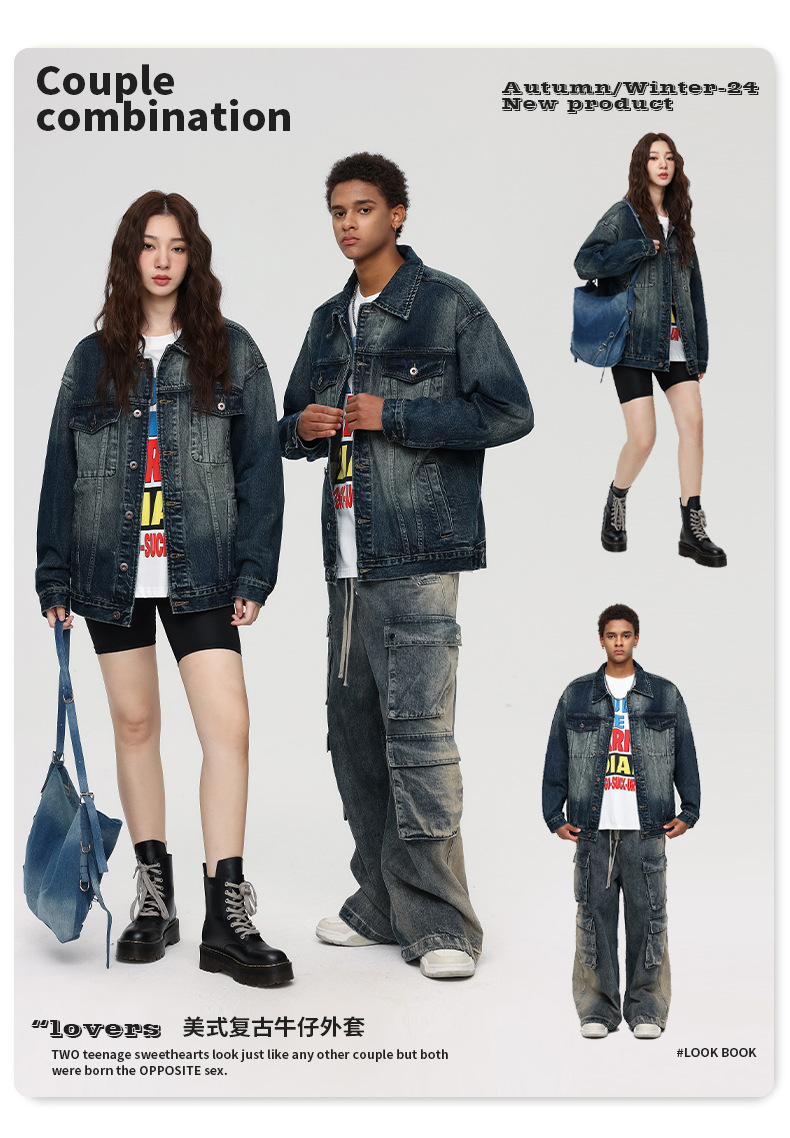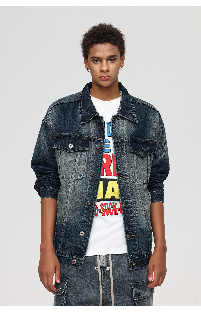 厂家直销男士宽松渐变牛仔外套,复古休闲风格,多口袋设计,春秋季必备,舒适棉质面料