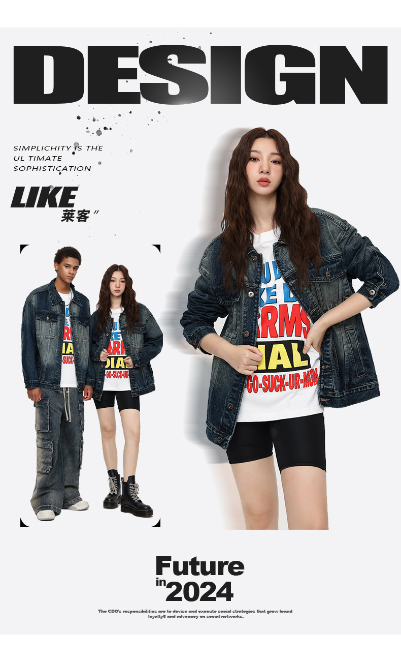 本款潮牌牛仔外套对比正常码数会宽松一些,挑选比自己原码数小一码来穿可能会更加合适哦。