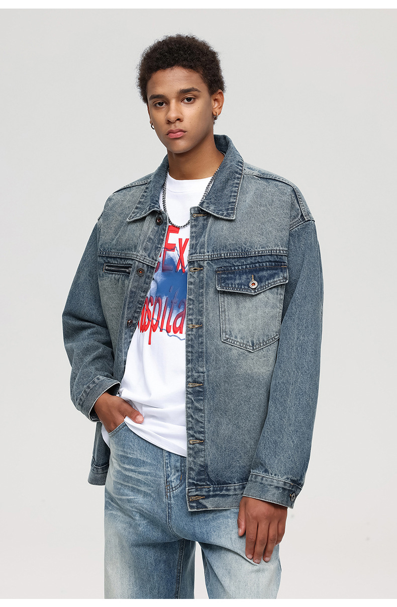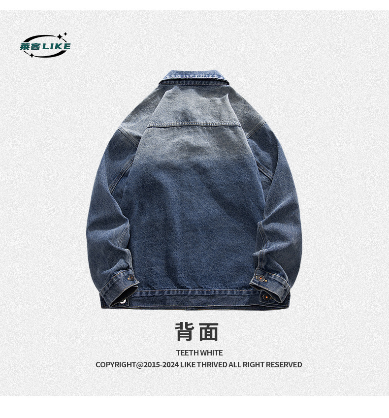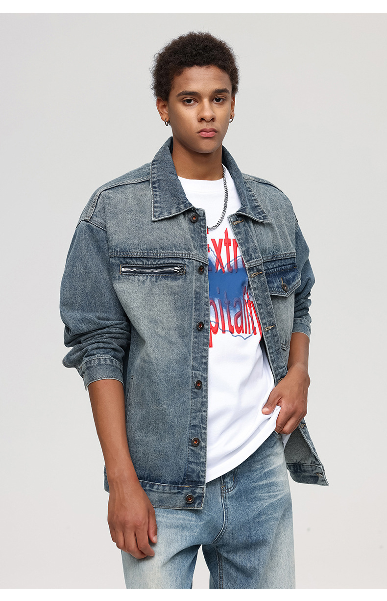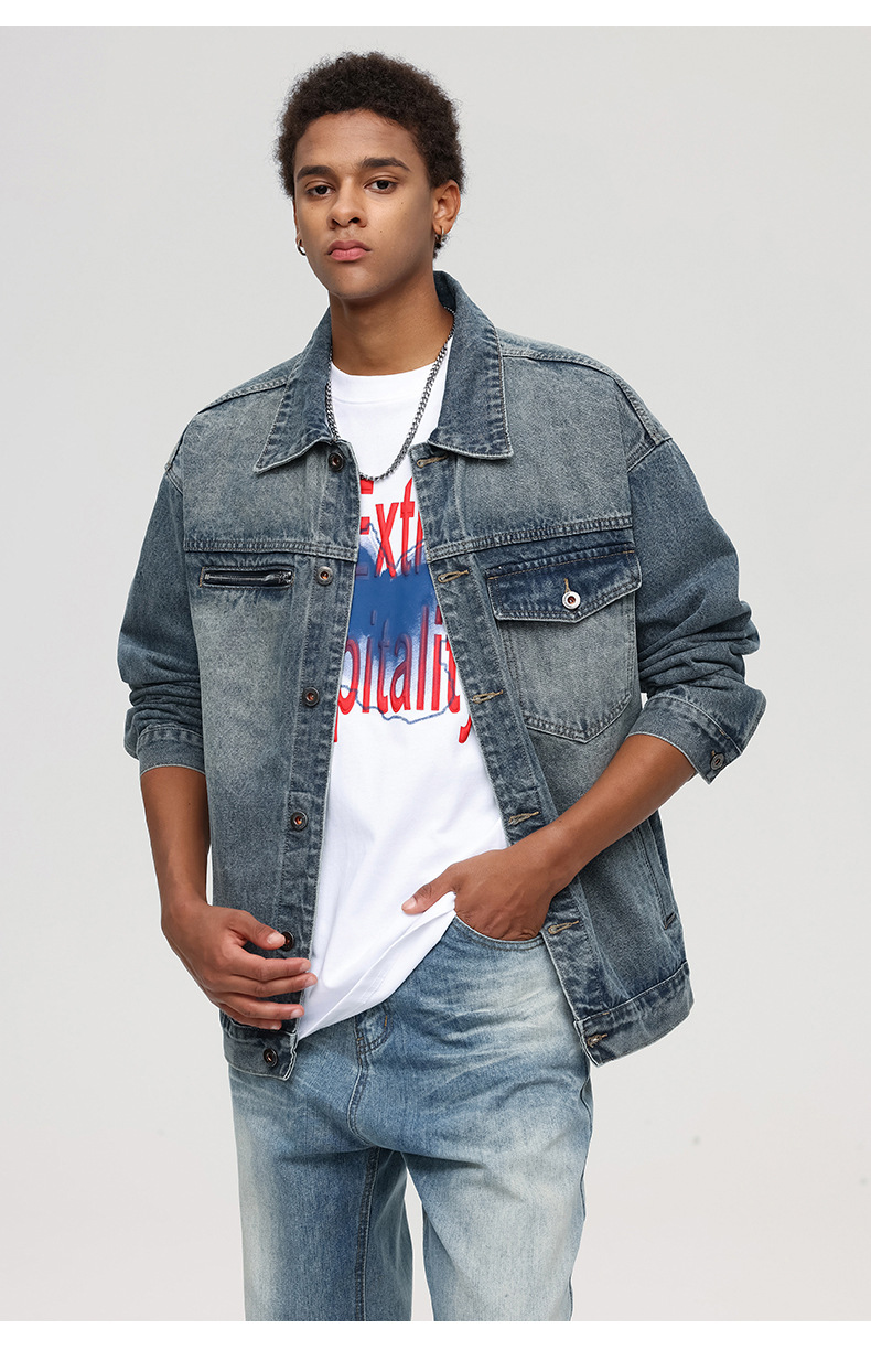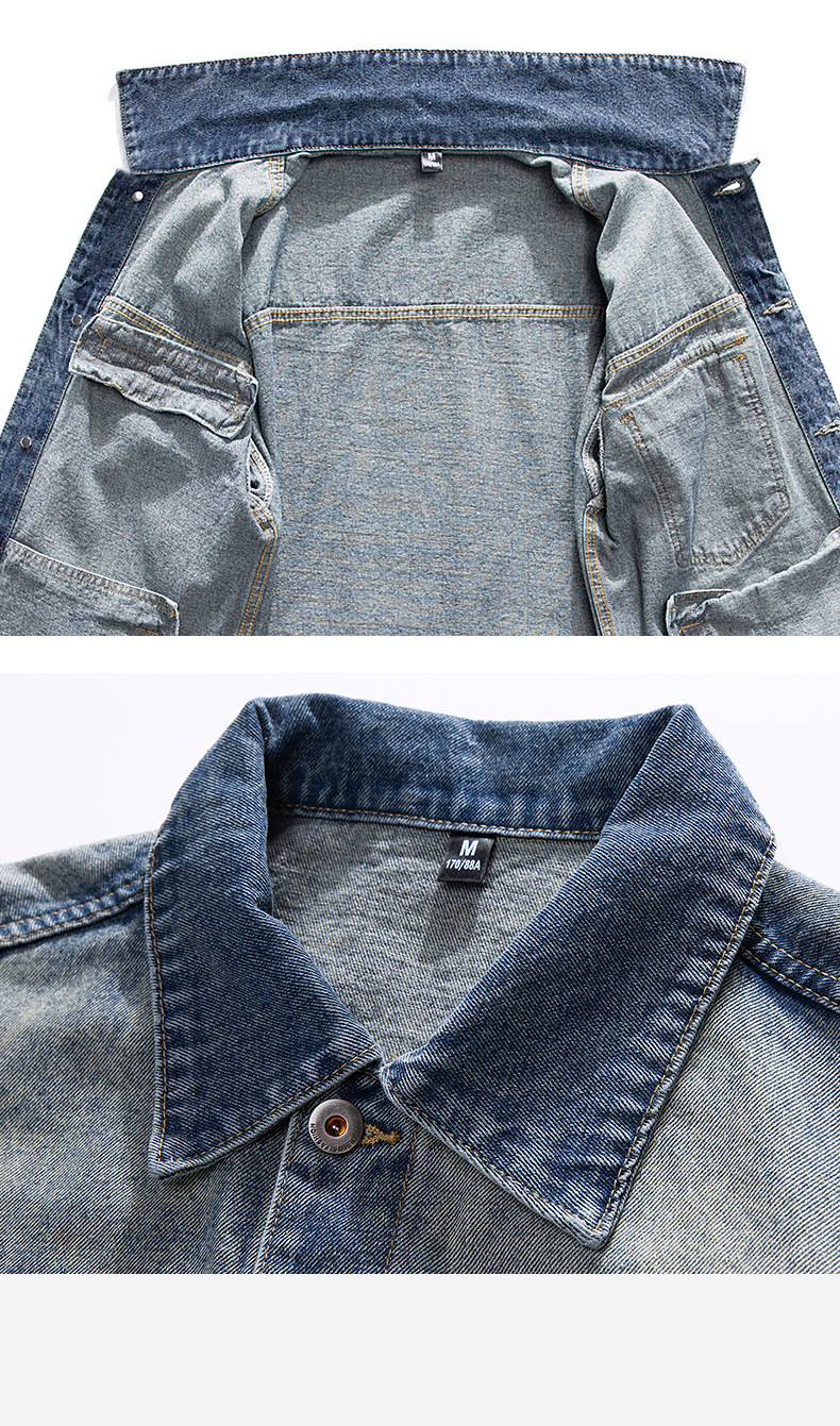 厂家直销青年男士修身复古水洗牛仔外套,宽松版型,春秋季,免烫多口袋设计