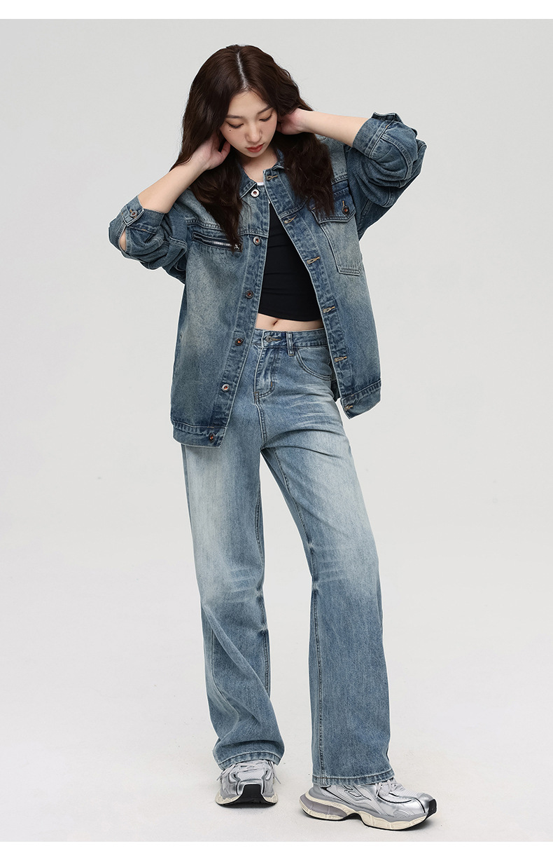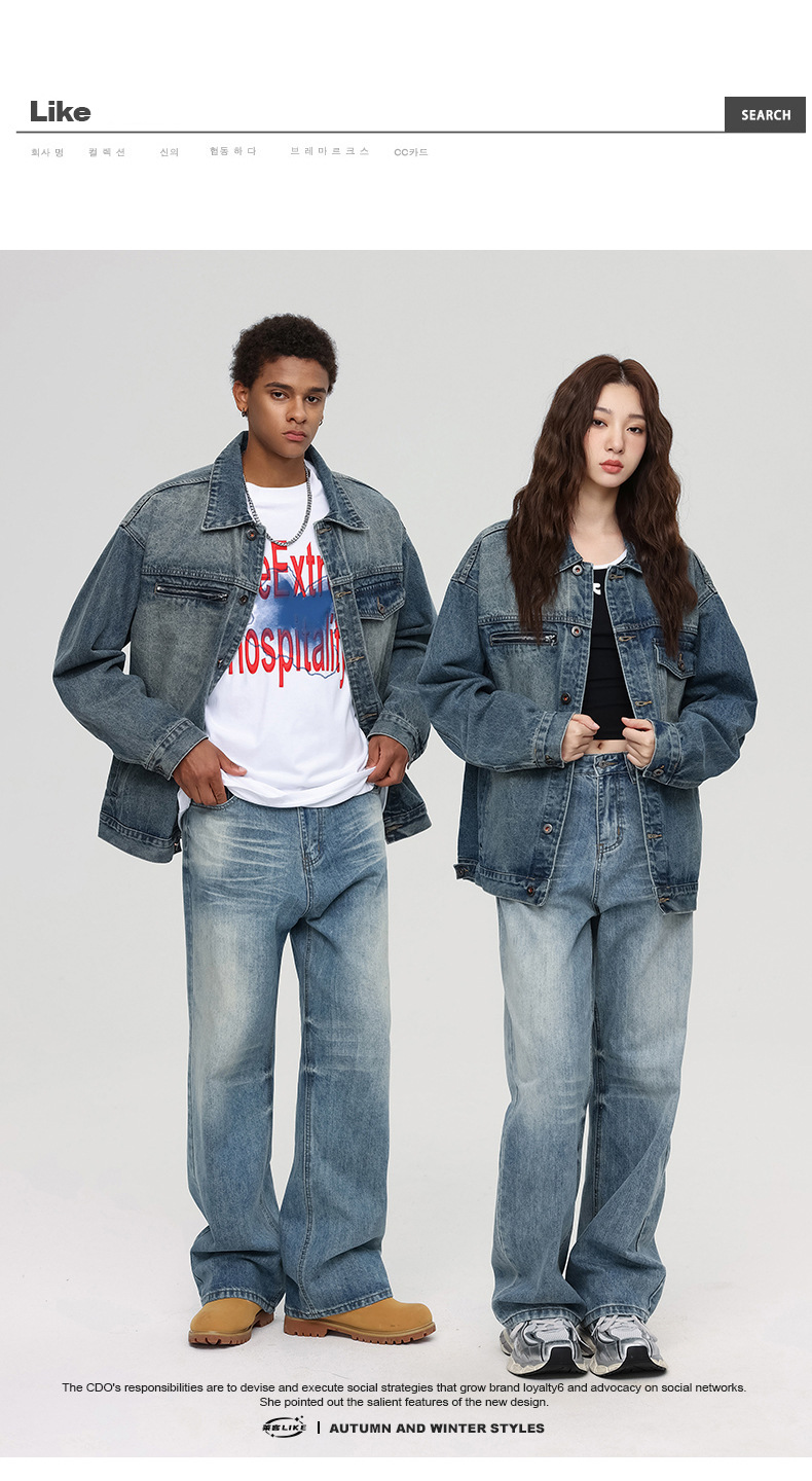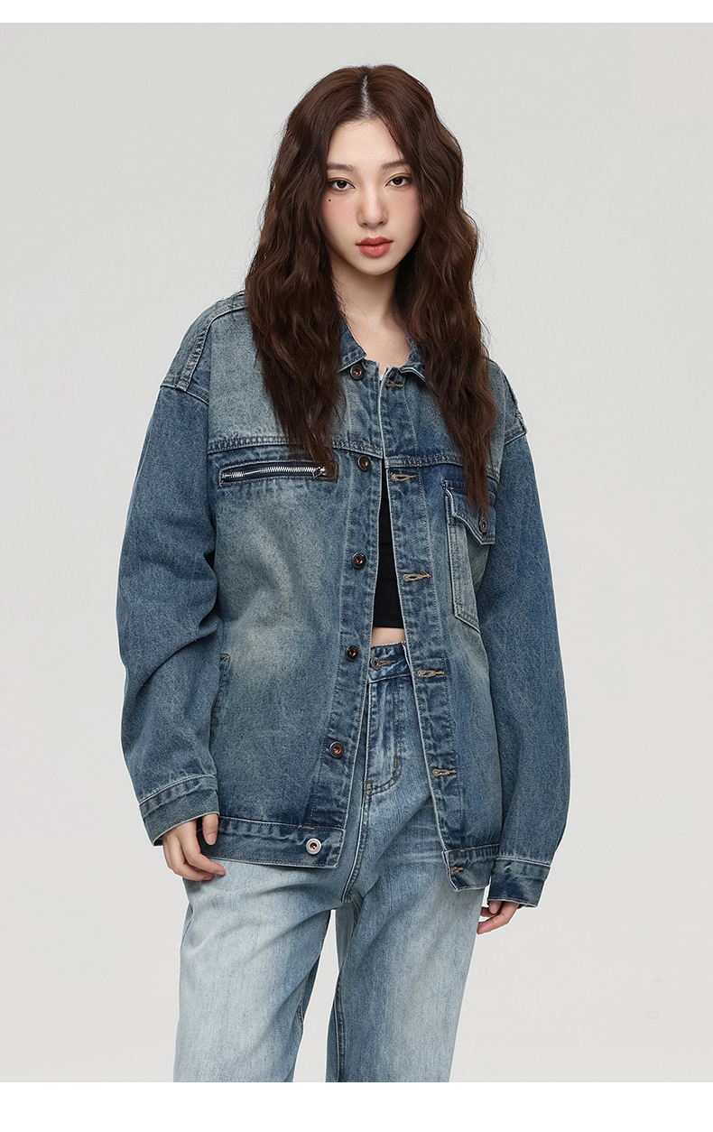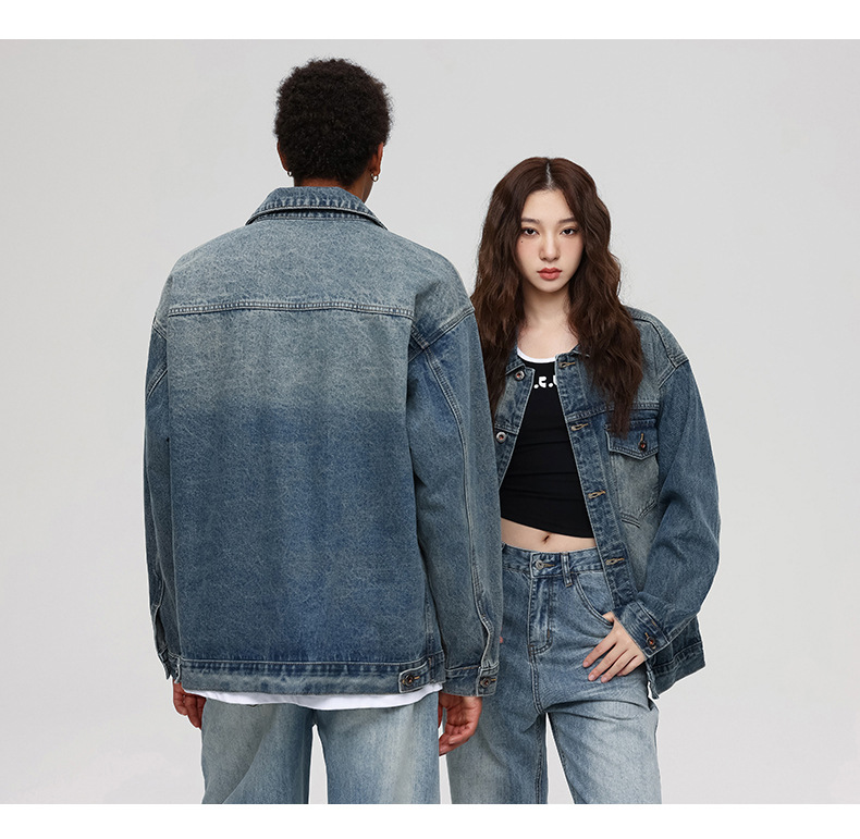 厂家直销青年男士修身复古水洗牛仔外套,宽松版型,春秋季,免烫多口袋设计