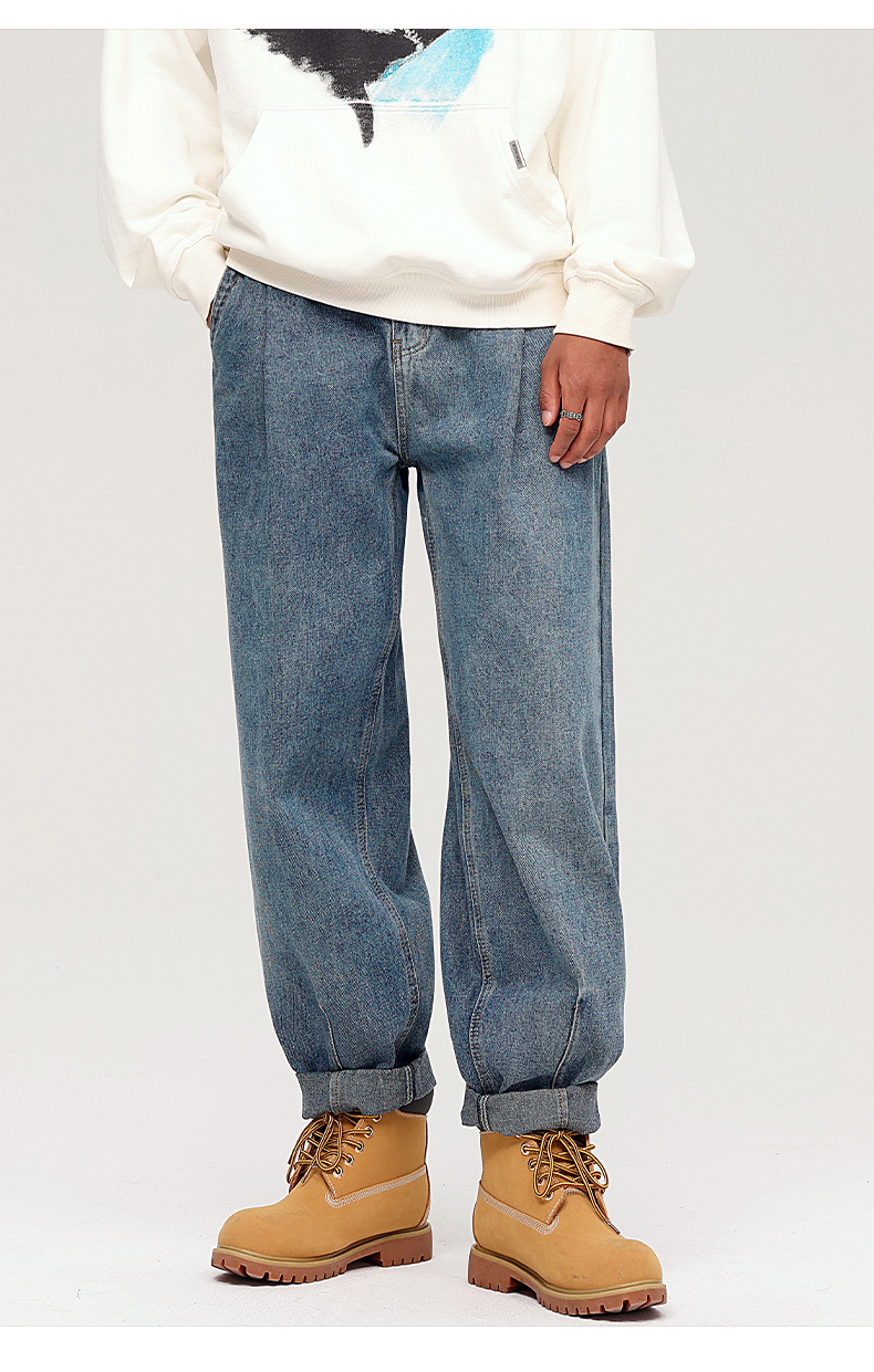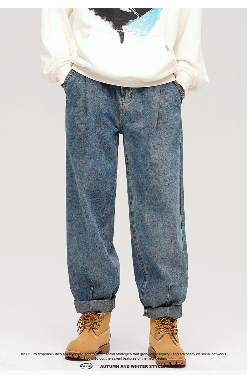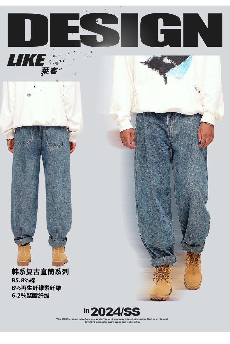 厂家直销男士修身水洗阔腿牛仔裤,春秋季街头时尚,适合日常穿着