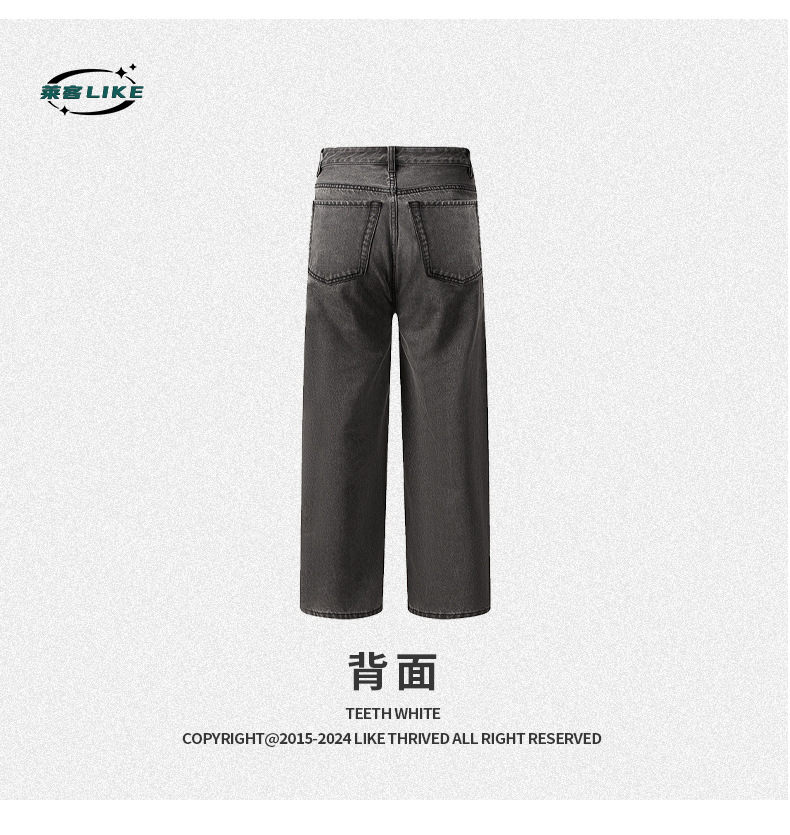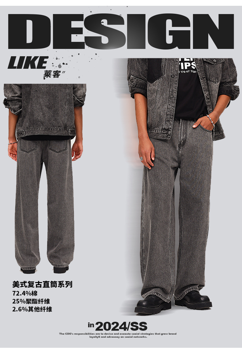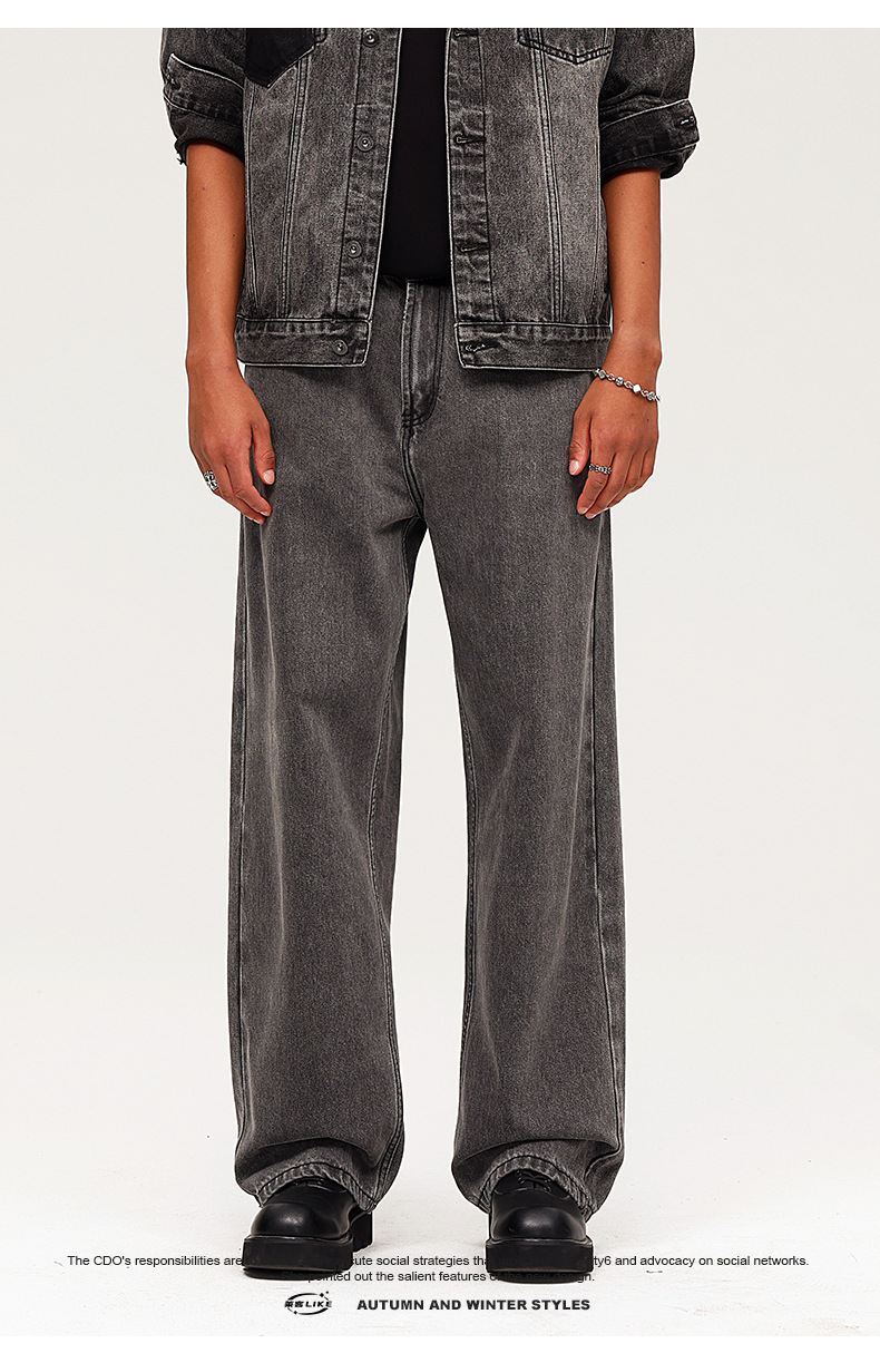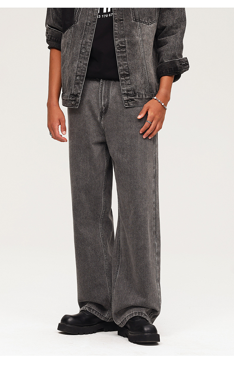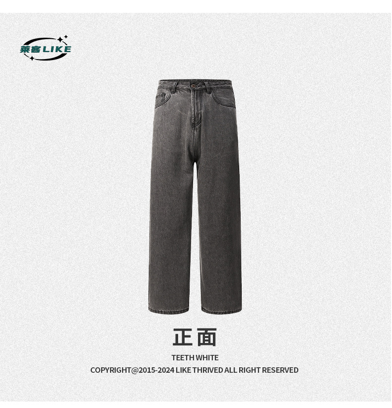 厂家直销男士宽松水洗牛仔裤,深灰色直筒长裤,休闲风格,适合四季日常穿着