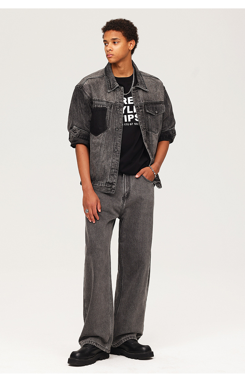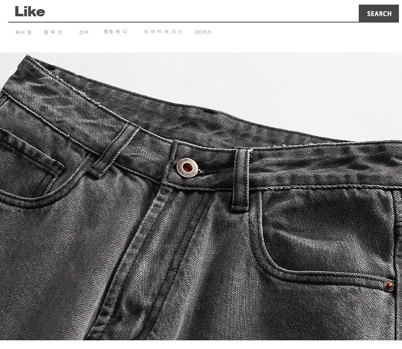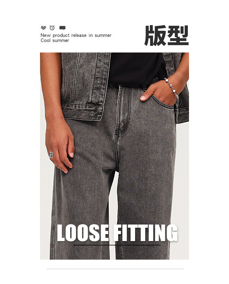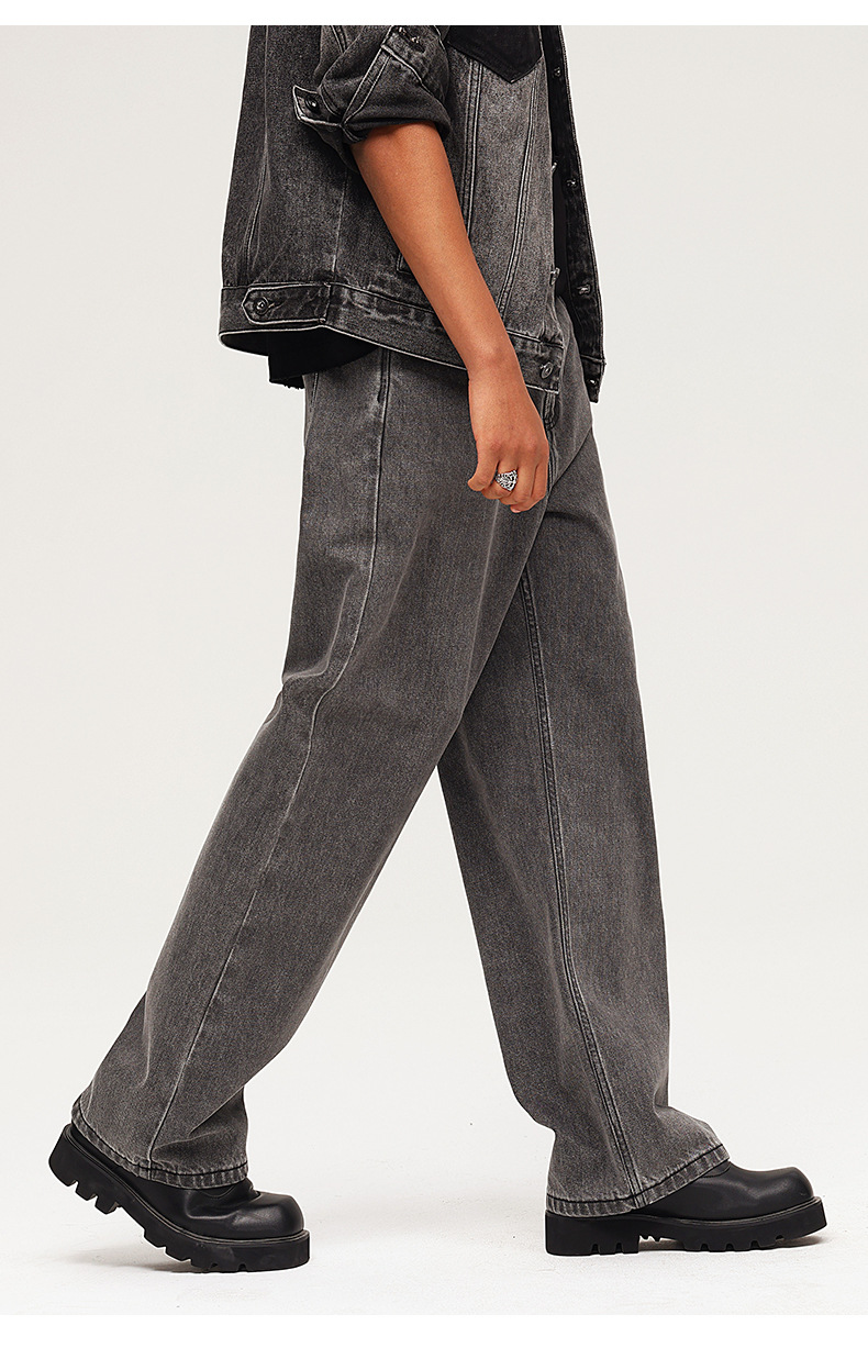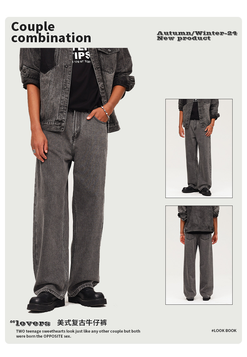 厂家直销男士宽松水洗牛仔裤,深灰色直筒长裤,休闲风格,适合四季日常穿着