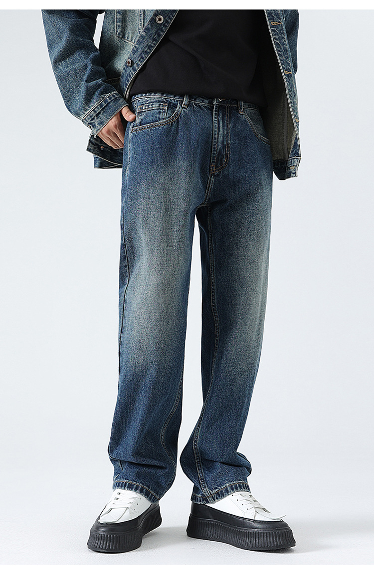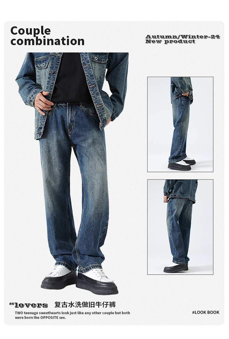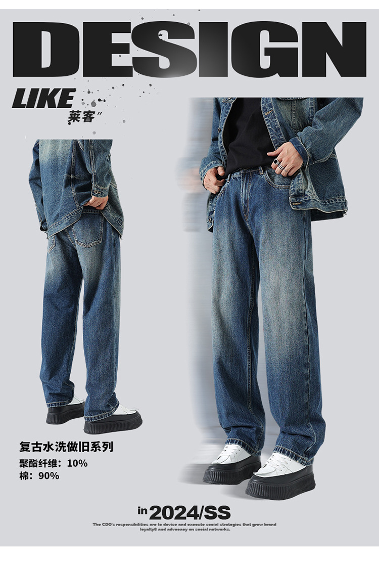 厂家直销男士宽松水洗牛仔裤,修身直筒设计,秋季休闲潮流长裤,打造高街时尚风格